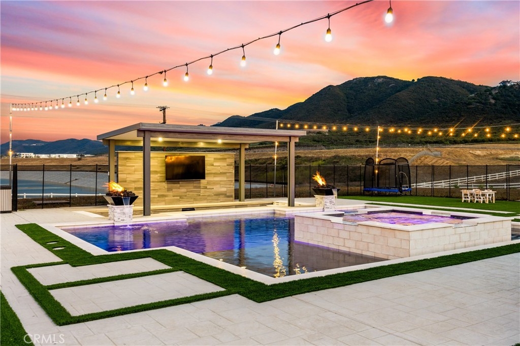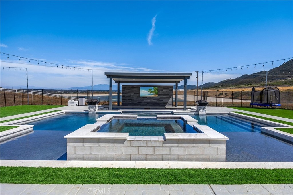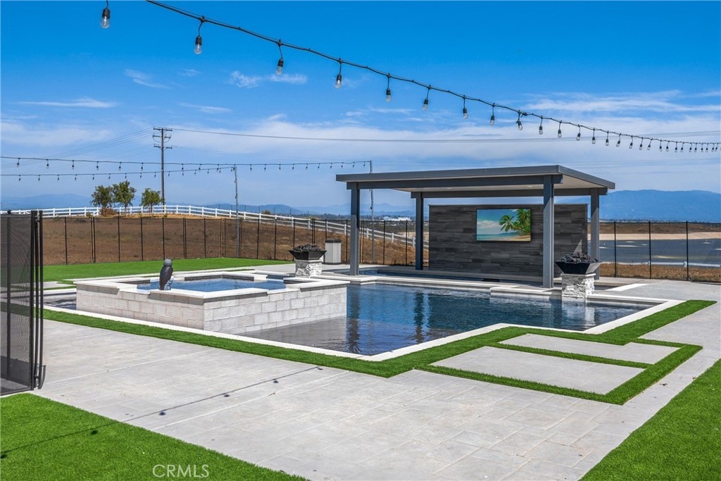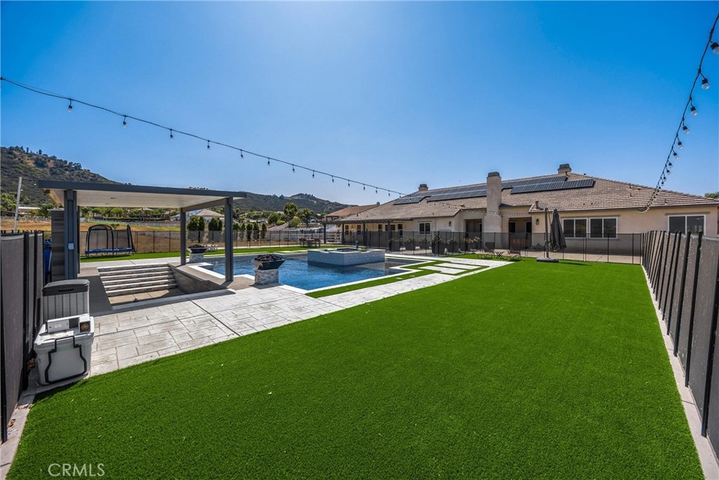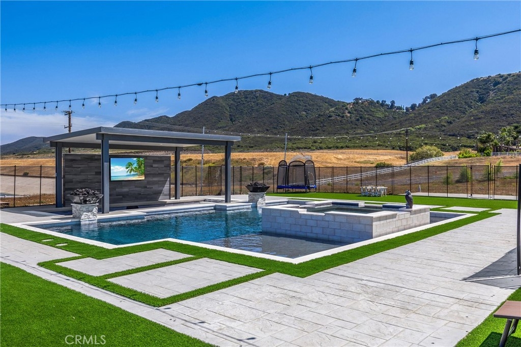 Welcome to luxury living in Wynfield Estates gated community, located in West Murrieta. This grand 4,086 sq ft home offers a comfortable lifestyle on 2.85 acre lot, ensuring privacy. Property offers four car garage with ample storage. For your peace of mind and entertainment the pool is gated for safety and includes a TV and sunken bar area. The home is equipped with solar panels, two back up batteries tankless water heater and water filtration system. Backyard is fully fenced and secured. Step inside to find elegant Travertine floors and 10 foot ceiling with crown molding. A bar and serving area right off the family room. Extra large kitchen island with granite countertops and abundant storage. There are four bedrooms, each with walk in closet and individual bathrooms. A convenient half bath is located near the laundry and mudroom. Luxurious primary suite offers two large closets with amply area to place all your items, large windows that overlook your gorgeous pool /spa and private fireplace. The formal living room also features a grand fireplace with large french doors leading to a comfortable patio area with fireplace. For those who work from home. A office space is located in front of home with access to the large front porch. Last but not least a play ground area for the children. MURRIETA A FAMILY ORIENTED CITY WITH EVERYTHING A FAMILY WILL NEED PARKS AND REC HIKING ,GREAT SCHOOLS ,3 HOSPITALS, AND IS RANKED ONE OF THE SAFEST CITYS IN CALIFORNIA . WYNFIELD ESTATES IS A COMMUNITY THAT EMPHASIZED EXCLUSIVITY... YET, ONLY 15 - 20 MIN FROM OLD TOWN TEMECULA, AND ITS FAMOUS WINERIES, PECHANGA CASINO, SHOPPING AND ENTERTAINMENT.