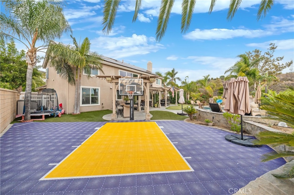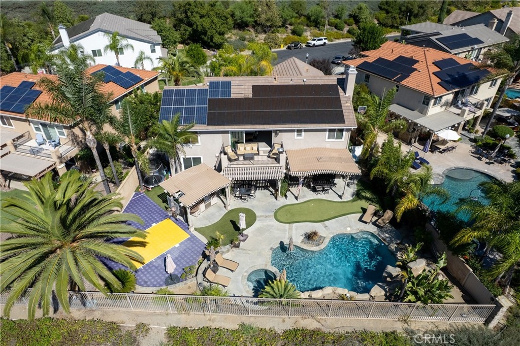Welcome to this stunning 6-bedroom, 4-bathroom home with SOLAR nestled in the prestigious, guard-gated community of Greer Ranch in Murrieta, CA. Perfectly situated on a quiet cul-de-sac, this residence offers breathtaking panoramic views, exceptional upgrades, and a true entertainer’s backyard oasis. Step inside and you’ll immediately notice the abundance of natural light and elegant finishes throughout. The open-concept floor plan features a spacious living area that seamlessly connects to the gourmet kitchen—complete with modern appliances, granite countertops, and ample cabinetry. Downstairs, you’ll find two bedrooms, one with its own private full bathroom, ideal for guests or multi-generational living. Upstairs, four additional bedrooms and a large loft provide space for relaxation, work, or play. The primary suite is a luxurious retreat, showcasing a custom-designed bathroom with a unique shower and sauna combo, creating a spa-like experience in the comfort of your own home. Step into the backyard and discover your private paradise — a sparkling pool and spa, a built-in putting green, and a basketball court, all surrounded by scenic hillside views and lush landscaping. Whether hosting gatherings or enjoying a quiet evening under the stars, this outdoor space has it all. Greer Ranch is known for its 24-hour security, scenic walking trails, parks, and community pool and clubhouse, offering the perfect blend of privacy and community living. Conveniently located near award-winning schools, shopping, and easy freeway access, this home truly has it all.