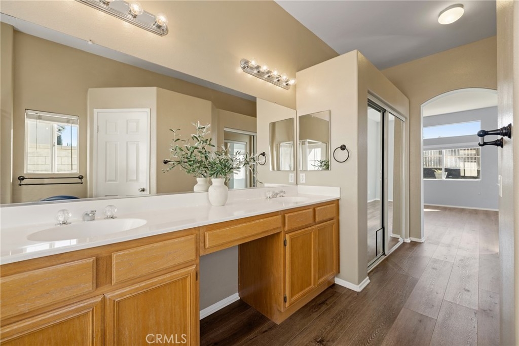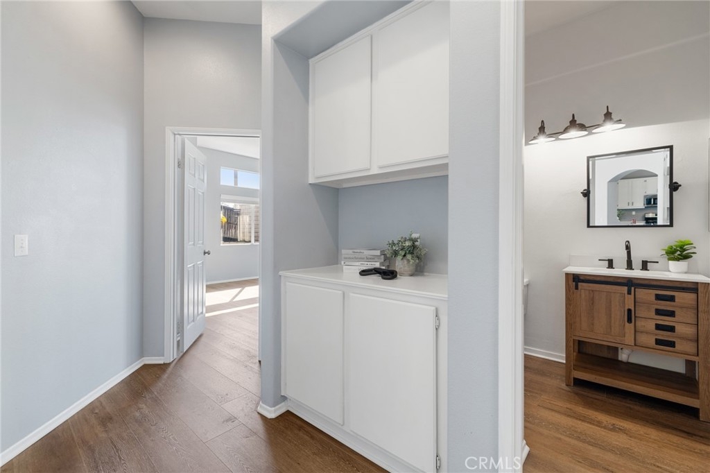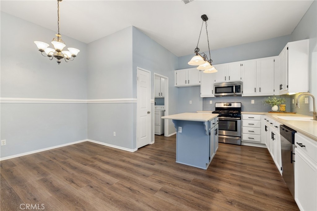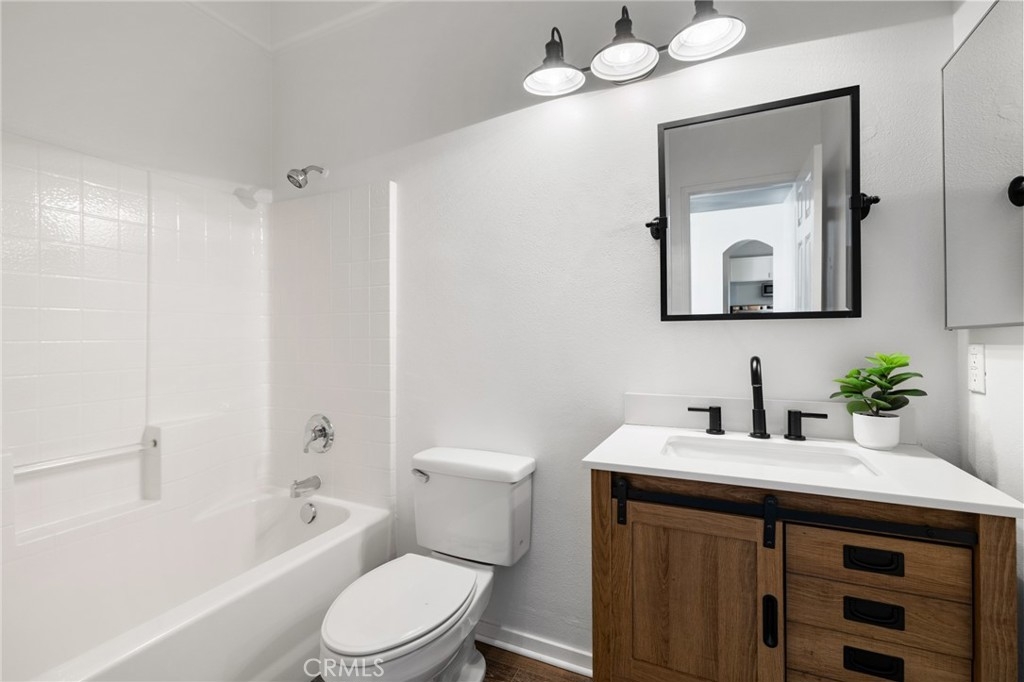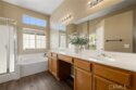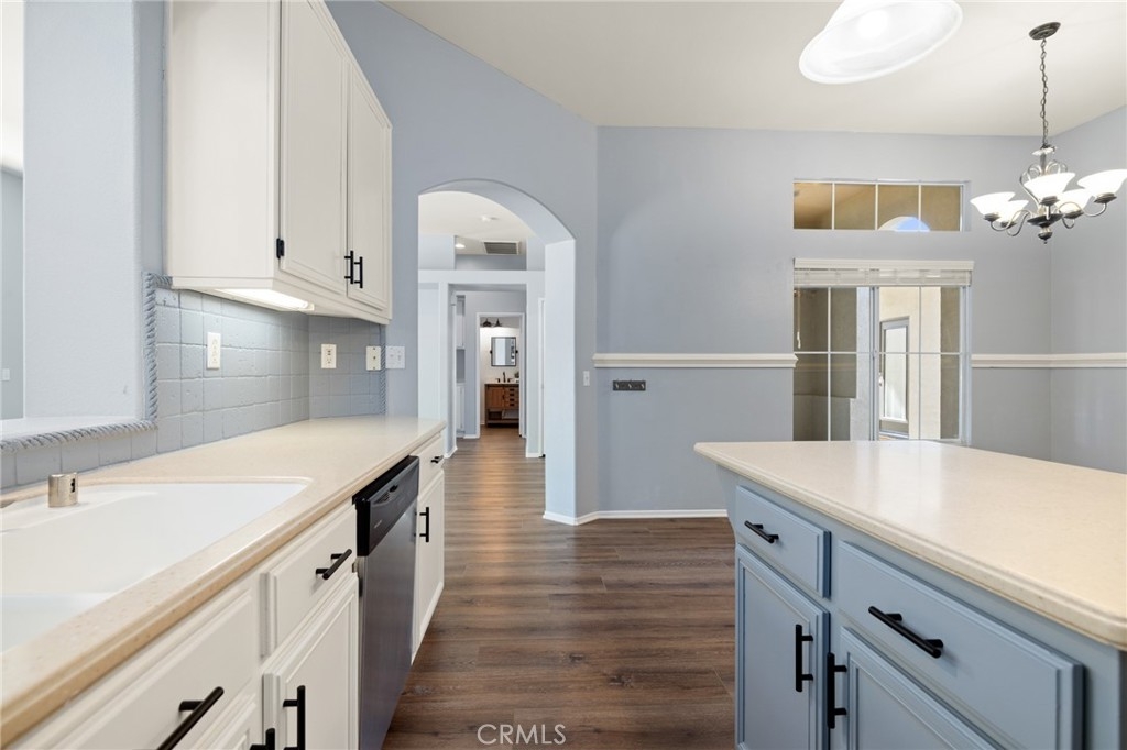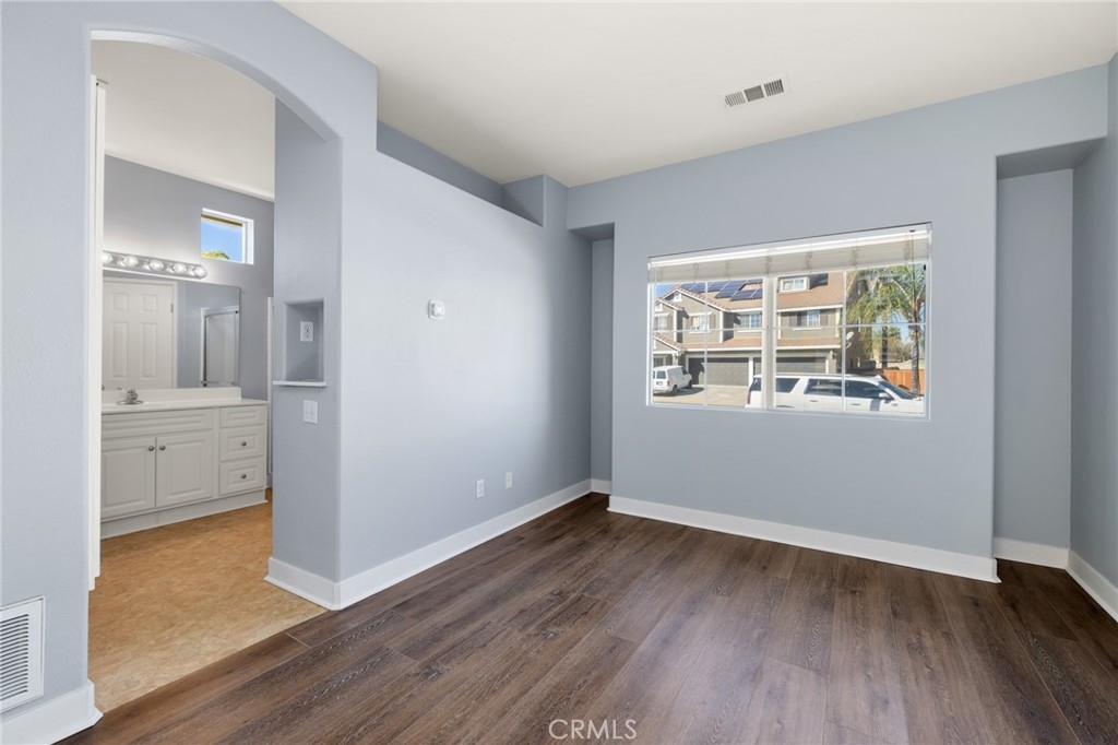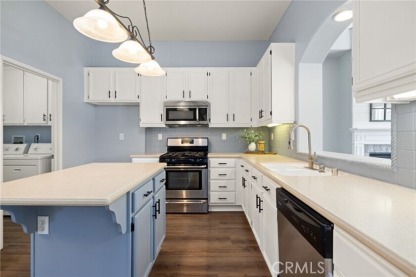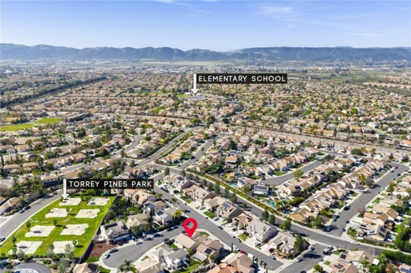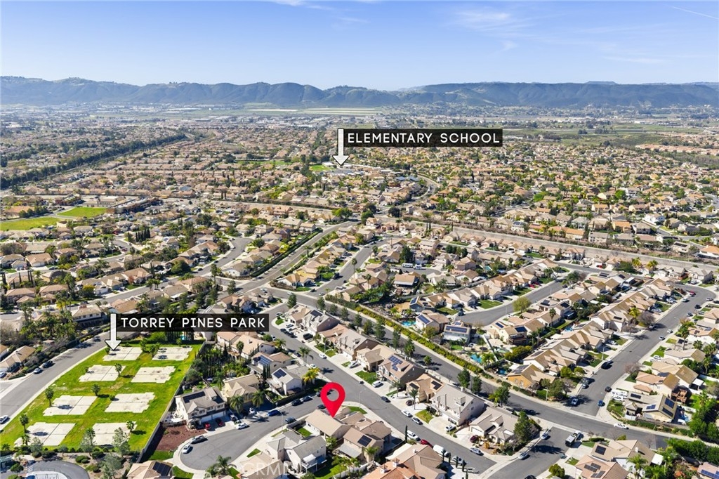 This beautifully updated 3-bedroom, 3-bath home in Murrieta’s desirable Vintage Reserve community offers nearly 1,900 sqft of flexible living space, including a detached casita with its own bedroom and bathroom, and is positioned on a corner lot at the end of a cul-de-sac. Featuring solar, low taxes, and no HOA, the home offers privacy and functionality rarely found at this price point. Upon entry, you are welcomed into an open-concept living area showcasing fresh interior paint, luxury vinyl plank flooring, abundant natural light, and backyard views. Recessed lighting and a fireplace with custom mantle create a warm focal point anchoring the main living space. Just off the living room, the den offers flexible use as a home office, media space, or optional 3rd bedroom within the main home. The kitchen is conveniently positioned directly off the main living area, enhancing flow for both daily living and entertaining. The kitchen is appointed with Corian countertops, stainless steel appliances, resurfaced and freshly painted cabinetry, custom tile backsplash, pantry storage, and an island overlooking the dining area with space for a full-size table. Laundry and direct access to the two-car garage are located just off the kitchen. A secondary bedroom and nearby full bathroom with single-sink vanity and shower-tub combo are situated off the main living space. Down the hall, the spacious primary suite serves as a private retreat featuring dual closets, dual-sink vanity, soaking tub, walk-in shower, and separate toilet room. The detached casita enhances the home’s versatility with its own private entrance, separate HVAC system, spacious bedroom, closet, and full bathroom complete with walk-in shower, single-sink vanity, and private toilet area—ideal for multigenerational living, guests, or independent workspace. The backyard creates a welcoming outdoor setting with a covered patio, expansive concrete hardscape, lush grass area, and individually potted rose planters connected to a dedicated watering system, offering both beauty and ease of maintenance while creating an inviting space for relaxing or entertaining. Situated on a 7,405 sqft lot within walking distance to Buchanan Elementary, Warm Springs Middle School, and Torrey Pines Park, the home enjoys close proximity to Murrieta Hot Springs Resort & Spa, shopping, dining, and convenient access to the 215, 15, and 79 highways, placing Temecula’s renowned wineries and everyday conveniences just moments away.