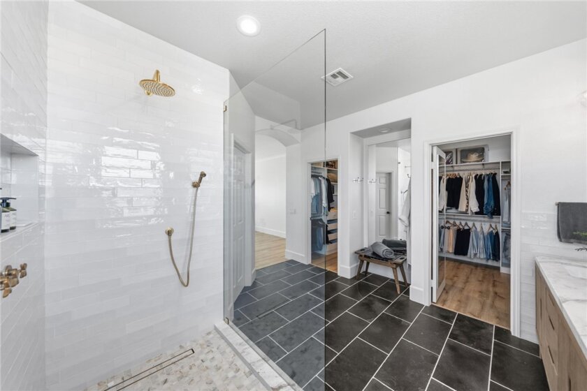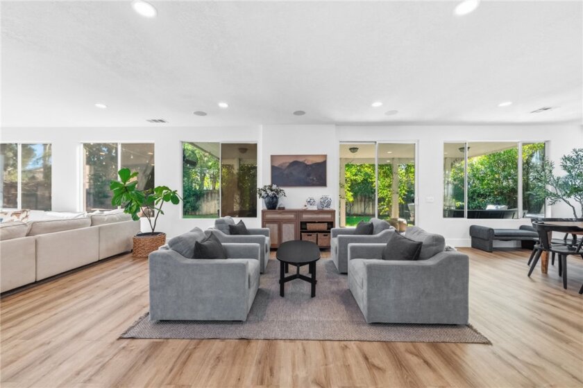 ONE OF A KIND, FULLY UPGRADED, 4 BEDROOM + LOFT + MAIN FLOOR FLEX SPACE (Could be 5th bedroom) + MAIN FLOOR OFFICE/DEN with PRIVATE ENTRY + OWNED SOLAR! This home looks like it is straight out of the pages of a magazine! From the moment you step inside, this fully remodeled home delivers designer-level style and thoughtful function in every space. A sensational gourmet kitchen designed to impress and perform features dual side-by-side KitchenAid ranges beneath a dramatic custom hood, a Viking Professional refrigerator, an enormous marble waterfall island with seating, a walk-in pantry with floating shelves, pull-out drawers offering tons of storage, appliance garages with built-in power, hidden trash, additional floating shelving, and even a cozy reading nook! The open layout flows effortlessly into a spacious dining and great room, complemented by an office/den with private access and a downstairs flex space offering the potential for a fifth bedroom! Upstairs, an oversized loft transforms into the ultimate hangout with a projector and automatic screen, a play swing, monkey bars, and custom-built-in seating. Creating a rare blend of luxury and fun! Unwind in the serene primary suite featuring a spa-inspired bathroom with a soaking tub, walk-in shower, and a dual-entry walk-in closet with custom built-ins. Three additional bedrooms and a full bath complete the upper level. Step outside to enjoy Southern California living at its best in your private backyard with a covered patio, lush grass, landscaped yard, and gated side yard. Located within the highly sought-after Vista Murrieta High School boundary and just minutes from shopping, dining, and easy freeway access, this home truly checks every box, and more!!