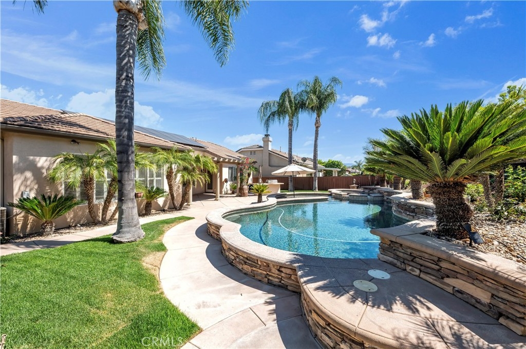 WELCOME HOME to this stunning Clarendon Hills single-story pool home with LOW LOW taxes! Nestled in a peaceful, all single story home neighborhood, this meticulously maintained property on a 16,988sf cul-de-sac flag lot offers the perfect blend of elegance and relaxation. Step inside to discover an open and spacious floor plan, bathed in natural light. The living area features a cozy fireplace and flows seamlessly into the kitchen, creating an inviting space for gatherings. The beautiful kitchen boasts granite countertops, stainless steel appliances, ample cabinet space, and a HUGE island for entertaining. The true highlight of this home is the backyard oasis, complete with a sparkling pool, spa, built in BBQ, beautiful hardscape and lush landscaping. It's the ideal setting for summer gatherings, sun-soaked afternoons, and evening dips in the pool and spa. The primary suite provides a serene retreat with an en-suite bathroom and direct access to the outdoor paradise. Three additional bedrooms (one en-suite), office, separate formal living and dining rooms, and 2.5 additional bathrooms complete the living spaces. Located near Buchanan Elementary School, Warm Springs Middle School, Vintage Reserve park, and Harveston lake & park. Plenty of shopping (Promenade Mall) and restaurants are just minutes away. Don't wait, this BEAUTY won't last!!!