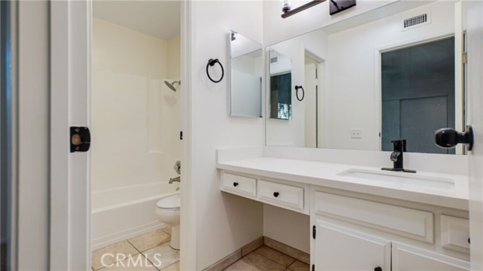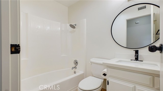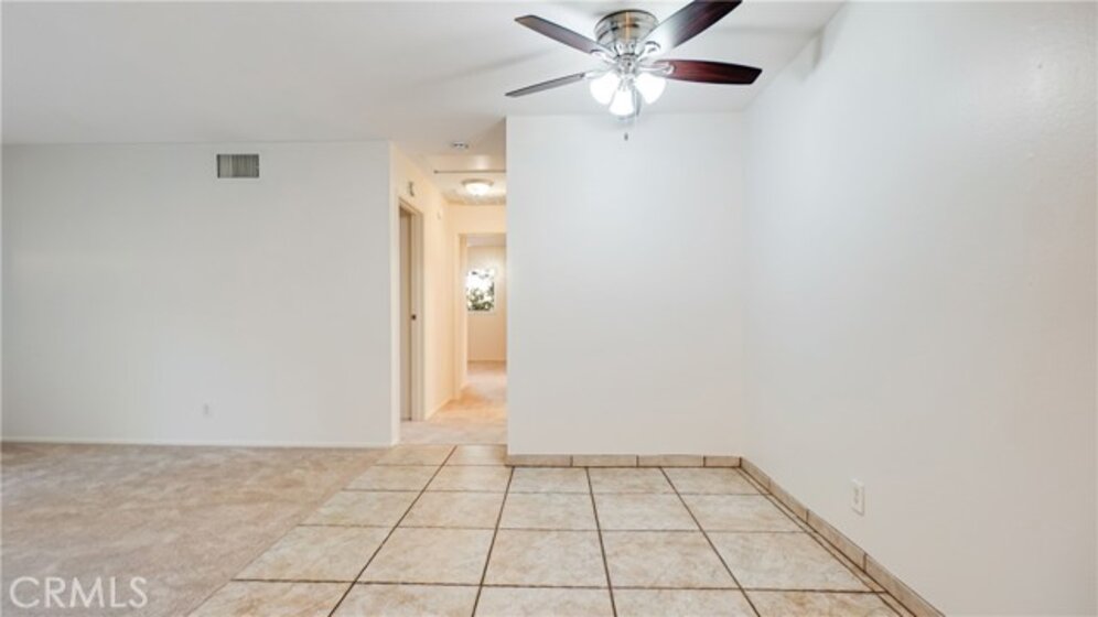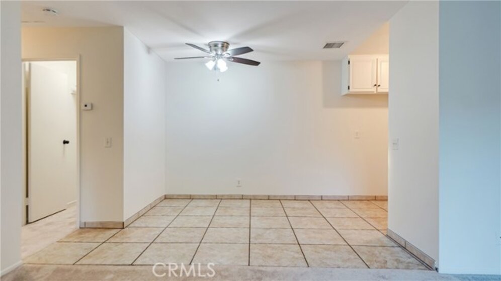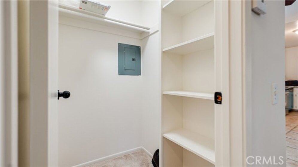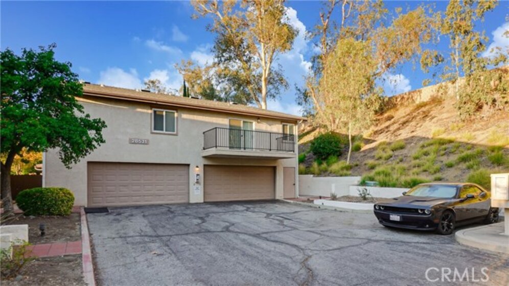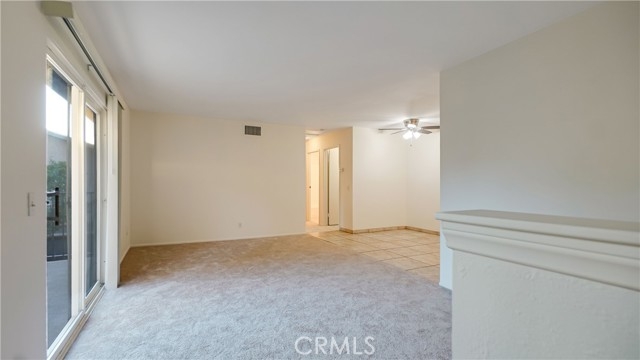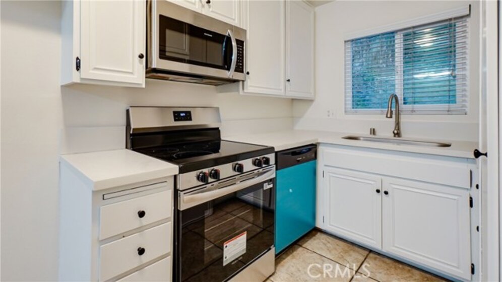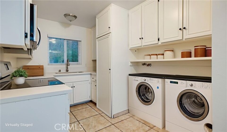 Welcome to this charming Murrieta Villas condominium! With two bedrooms and two bathrooms, this lovely upstairs unit boasts 993 square feet of living space, a private front-facing balcony and an attached garage. The entryway welcomes you at ground level, where a staircase leads to the main living area on the second floor. At the top of the stairs, natural light fills the living room from the sliding glass door to the private balcony, highlighting the combination of carpet and tile flooring and the light, neutral paint scheme throughout. Beyond the living area, the well-appointed kitchen, dining space, bedrooms and bathrooms await. The kitchen offers ample counter and cabinet space, along with a convenient in-kitchen laundry area. You will also find a 5 burner electric stove and oven, dishwasher, built-in microwave, and a window over the sink that fills the space with natural light. Down the hallway, you will find a spacious walk-in closet with built-in shelving for easy organization. The hallway bathroom features a shower/tub combination, tile flooring, and a single sink vanity. The master bedroom is complete with plush carpeting, a closet with three sliding doors, a ceiling fan for comfort, and a window that bathes the room in natural light. The attached master bathroom boasts tile flooring, single sink with a vanity sitting area, and a shower/tub combination. Equally welcoming, the additional bedroom has plush carpet flooring, a closet, a ceiling fan, and a window. Conveniently located, this home provides easy access to shopping centers, freeways, and highways, striking a harmonious balance between comfort and accessibility.