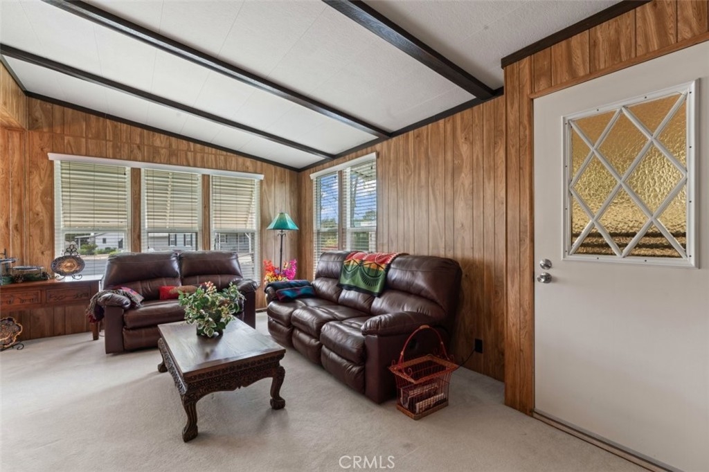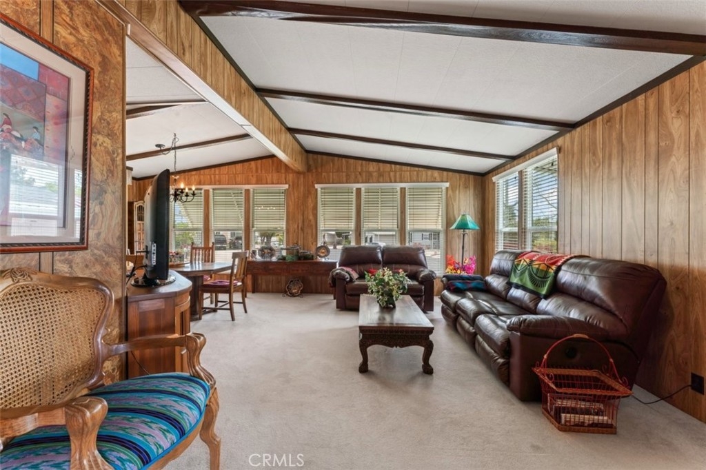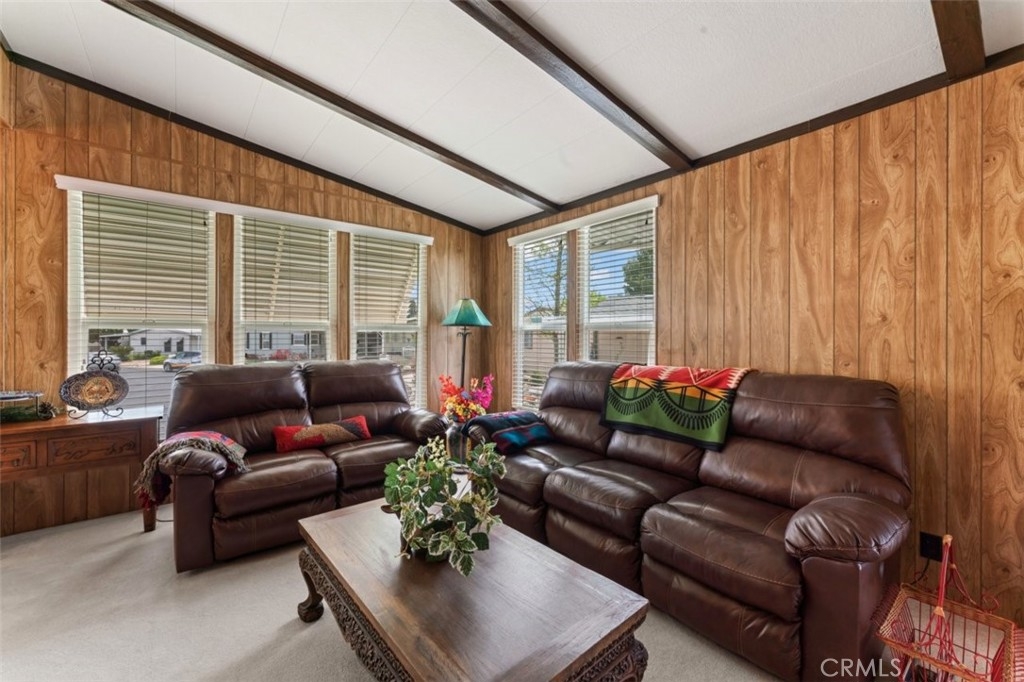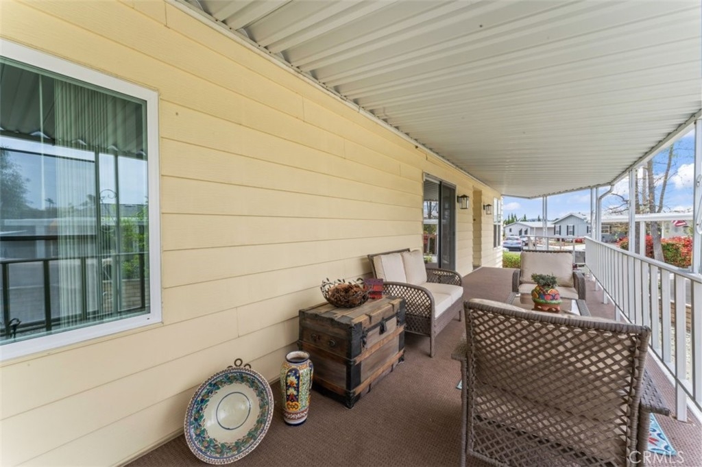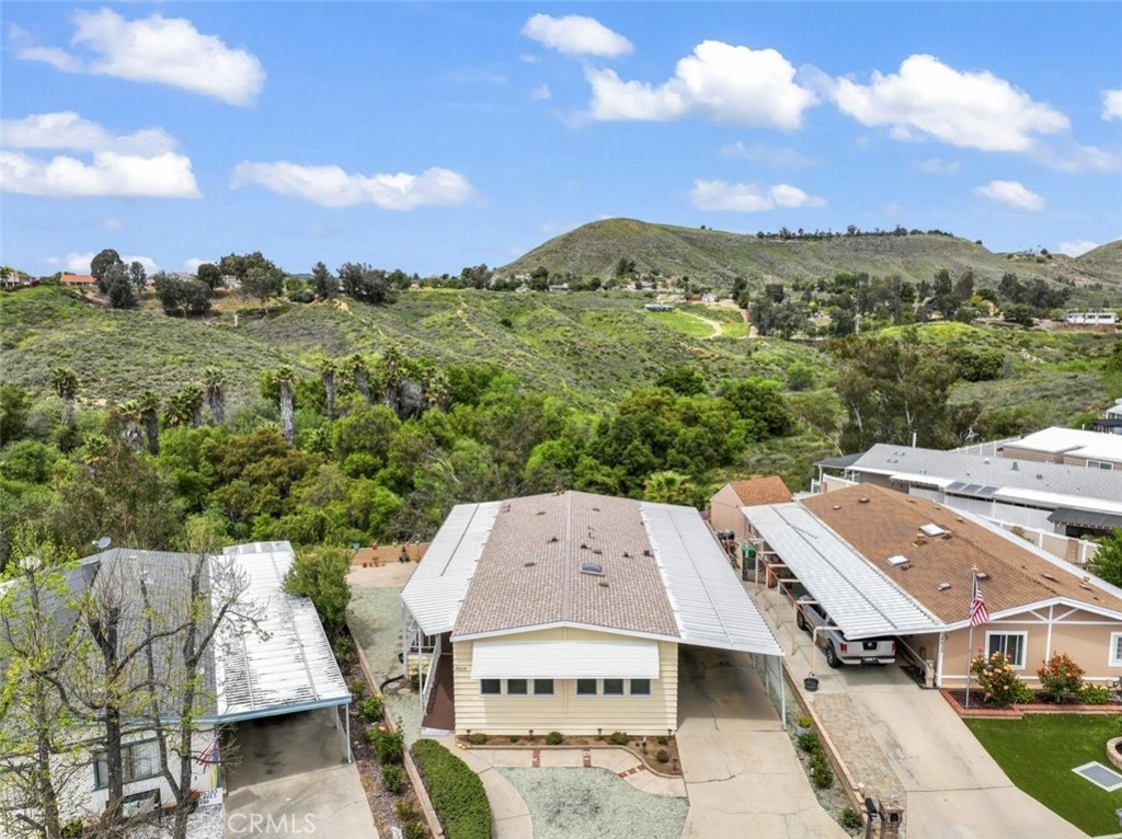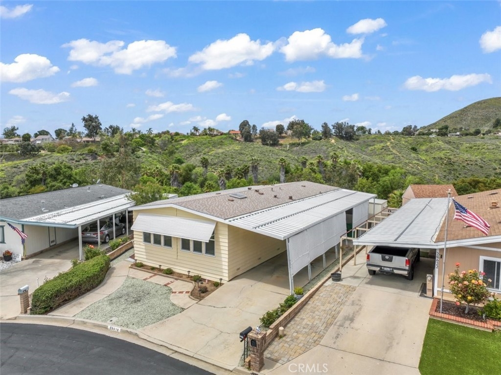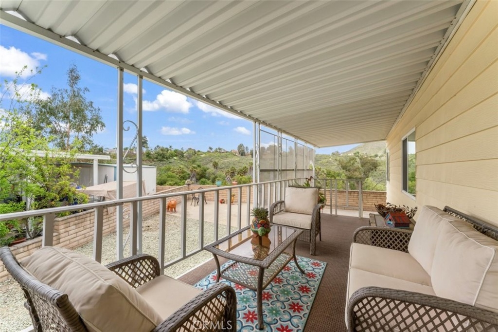 Lovely 2 bed, 2 bath, 1440 sq ft single story manufactured home in the highly desirable community of Warm Spring Knolls in Murrieta. This inviting home is clean and well maintained and offers spacious living areas. The living room with adjacent dining area both feature a vaulted ceiling and a bank of windows for natural lighting. The family room includes the classic wet bar setup w cabinet storage, is open to the kitchen and includes sliding doors to the covered patio deck w newer indoor-outdoor carpeting. The home is energy efficient w a new roof and all new vinyl windows w 2" vinyl blinds. The kitchen is open and bright with plenty of storage space in the ample white cabinetry. There is natural light from the skylight and newer stainless steel oven and built-in microwave. The primary bedroom is generously sized and served by the primary bathroom w dual sinks and separate tub and shower. The secondary bedroom is currently used as a craft room and has direct access to the hall bath. The indoor laundry room features LOTS of cabinet & storage space. The large patio deck is the perfect spot to relax and enjoy sunsets. There are 2 storage sheds at the rear of the carport, which easily accommodates 2 vehicles. This property is located on a ridge w wonderful views over the canyon and mountains to the west. The Warm Springs Knolls community offers a heated pool & spa, clubhouse and a busy menu of activities available to neighborhood residents. Schedule your viewing today.