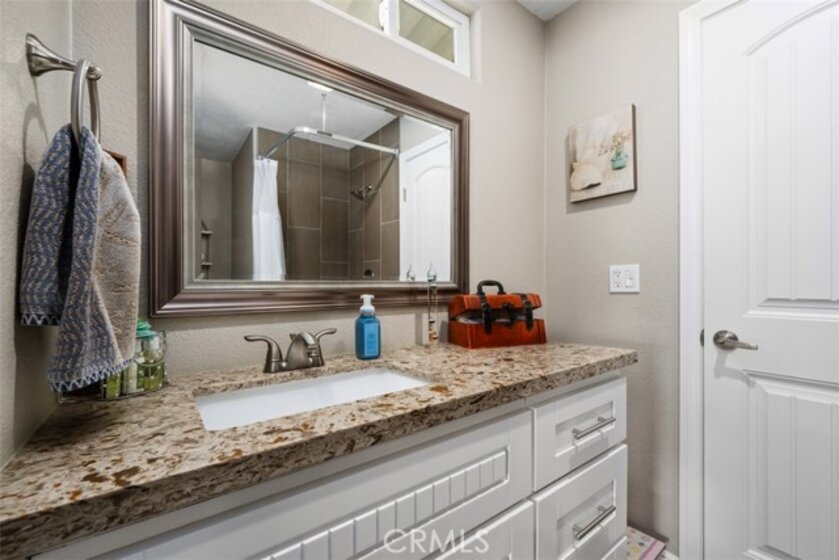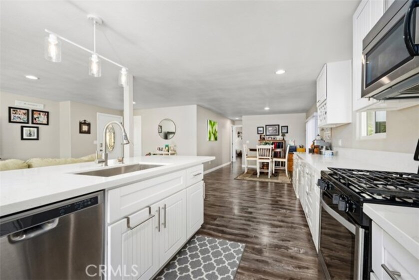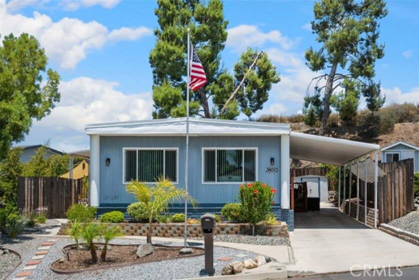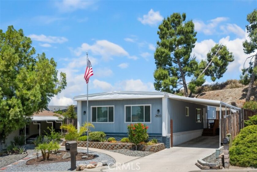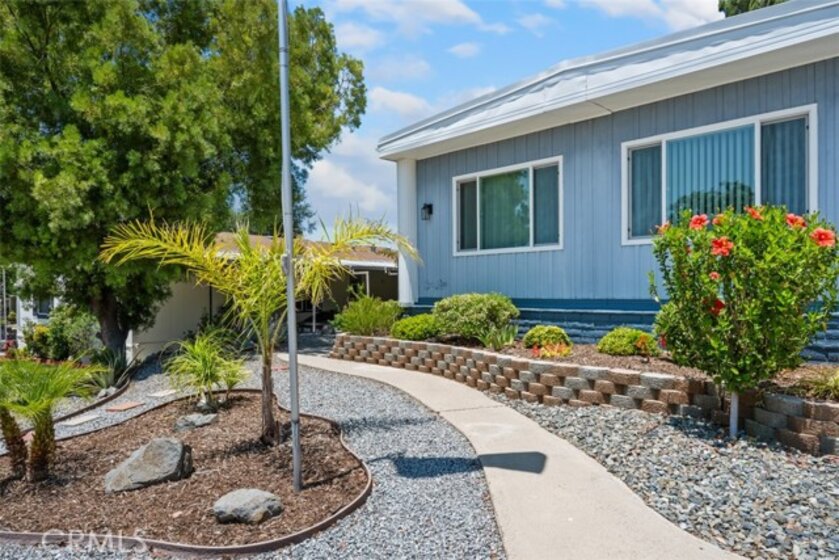 UPDATED & MOVE IN READY! Located in the Golf Knolls 55+ Active Senior Community, this manufactured home is ready for you to enjoy. The Open Floorplan gives this home a very spacious feel. Light & bright w/ neutral colors throughout. The all white, updated kitchen is the star of the show w/ the large center island, quartz countertops, stainless appliances & the abundance of cabinetry. The Lg living room space has plenty of areas to sit and spread out + areas for informal and formal dining. Warm tone wood laminate flooring all throughout the home. Ceiling fans in the bedrooms. Remodeled bathrooms adjoin both bedrooms. The primary bedroom suite is spacious w/ ensuite bathrm including a spacious walk-in shower, dual sinks & walk-in closet. The spacious, shaded, private patio offers the perfect area for outdoor enjoyment and is low maintenance + the added privacy of no direct neighbors behind. This property has not only been updated with the finish work inside, but sooooo many other parts of a home have been replaced, that are important to maintain; New Roof, New Electrical, New Windows, New HVAC, New Water Heater, New Ceiling, New Deck Entry, New Retaining Wall, New Foundation Work....all the big stuff has been done for you! All you need to do now is move in and enjoy. Golf Knolls offers so many activities if you are looking for social fun. Great location in Murrieta, close to everything! Come check out this home & Community you won't be disappointed.