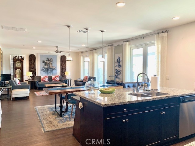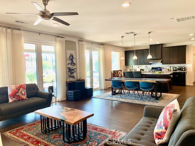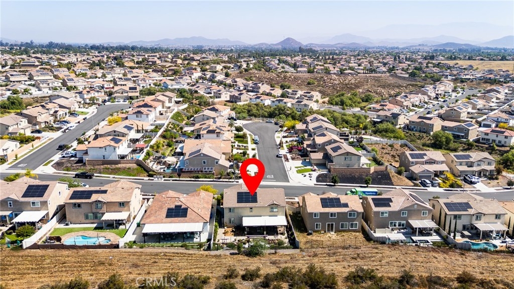 Gorgeous Murrieta 5 Bedroom Home with private yard backing to Open Space for Serene Views and PRIVACY, No neighbor behind home! Location, Location, Location! No HOA, Owned Solar, This Exceptional Home has lots of natural lighting and has been Professionally Landscaped and Features a Formal Entry, 5 Large Bedrooms, Main Floor Den/Office (possible 6th bedroom), Large Loft (possible 7th bedroom), plus Expansive Great Room with Spacious Living Room, Kitchen, Dining Area and Luxury Vinyl Plank Flooring Throughout the entire house! There is a Large Downstairs Bedroom and Full Bathroom. The Kitchen includes Upgraded Cabinets, Granite Counters, Custom Tile Back Splash, Stainless Steel Appliances, the Impressive Island includes a Stainless Steel Sink, Water Filtration System, Dishwasher, Custom Lighting and lots of Seating. The Walk in Pantry has Custom Built-ins for all your storage needs. The Luxurious Master Bedroom has a Large En-Suite Bathroom with Large Soaking Tub, Walk in Shower, Double vanity, Walk in Closet with Custom Built-in Organizers. All additional Guest Rooms are Very Large and have Custom Built-in Closet Organizers and All bathrooms have Upgraded Tile and Cabinets. The Cozy Loft is an added bonus and could be a 7th bedroom! The Great Room and Dining Room have 3 Sets of French Doors that lead out to the "Private " Back Yard that has been Professionally Landscaped with a Large Custom Patio, Insulated Aluminum Patio Cover, Remote Controlled Sun Shades, Custom Pavers, Custom Lighting, Fountains, Vibrant flowers, Plants, Trees. This Serene Yard is very Private, backs up to a Nature Preserve and is Perfect for Entertaining! The 3 Car Garage has a Utility Sink, Tankless Water Heater and Plenty of Room for Storage! The Owned Solar will provide Energy Cost Savings! This Amazing home is located near Alderwood Public Park with Playgrounds, Large Enclosed Dog Park, Pickle ball, Basketball Courts and Picnic Tables!! Its close to Schools, Shopping, Wineries, Costco, Loma Linda University Medical Center , Kaiser Permanent and the 215 & 15 freeways for an Easy Commute. Welcome Home!