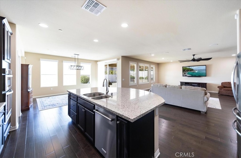 Highly sought after single story home, the "Carnaby" model in the Meadowlark Community of homes, nestled in a quiet cul-de-sac in the heart of Murrieta, CA — where space, comfort, and luxury appointments come together beautifully with No HOA! This expansive residence offers an exceptional sense of openness from the moment you step inside. Designed with both everyday living and entertaining in mind, the thoughtfully laid-out floor plan features generous living areas, high ceilings, and abundant natural light that creates an airy, inviting atmosphere throughout the home. The spacious kitchen is a dream to cook in and flows seamlessly into the great room and dining area, providing the perfect setting for gatherings large or small. The oversized master bedroom offers comfort and privacy, while the other two bedrooms on the opposite end of the home serves as a peaceful retreat for family and guests. The den/office can be easily turned into a "fourth" bedroom by adding a door. Situated on a large lot (11,700+ sq. ft), this property truly stands out. The low maintenance backyard allows you time to focus on entertaining or personal interests. With room to play, relax, and grow, this outdoor setting is a rare find. On top of that, there’s Solar that’s paid off with an EV charging station in the epoxy coated garage. Potential room for RV parking on the East side of home. Located in a desirable neighborhood close to top-rated schools, parks, wine country, shopping, regional French Valley airport, and convenient freeway access, this property offers the perfect balance of tranquility, livability and accessibility. If you’ve been searching for a home that combines generous interior living space with a substantial lot in one of Southern California’s most desirable communities, Murrieta, this is the one!!