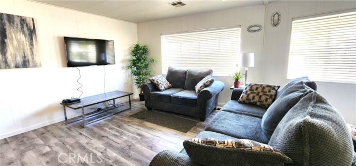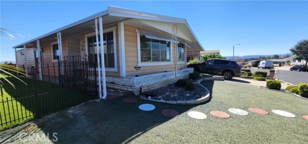 Welcome to your dream home in the highly sought-after Spring Knolls 55+ community! This beautifully updated 2-bedroom, 2-bath manufactured home is truly move-in ready and filled with upgrades that make it stand out. Step inside and fall in love with the bright, open layout featuring waterproof laminate flooring, fresh interior paint, and energy-efficient LED lighting throughout. The spacious kitchen offers plenty of cabinets and counter space—perfect for cooking, entertaining, and everyday living. Both bathrooms have been refreshed with new toilets, and recent plumbing upgrades provide added peace of mind. Enjoy your own private outdoor oasis with low-maintenance AstroTurf, a new gate for added security, and fruit trees that bring charm and fresh flavor right to your backyard. Take in the beautiful views and relax in a peaceful setting. The property also includes an 8’ x 16’ storage shed and a Ring camera system for added convenience and security. Living in Spring Knolls means more than just a home—it’s a lifestyle! Enjoy resort-style amenities including pools, spa, gym, library, and fun weekly activities like barbecues, bingo, and social events that keep the community vibrant and connected. Conveniently located near freeways with low HOA and taxes, this is an incredible opportunity you don’t want to miss. Come see it in person—you’re going to love it! Schedule your private showing today!