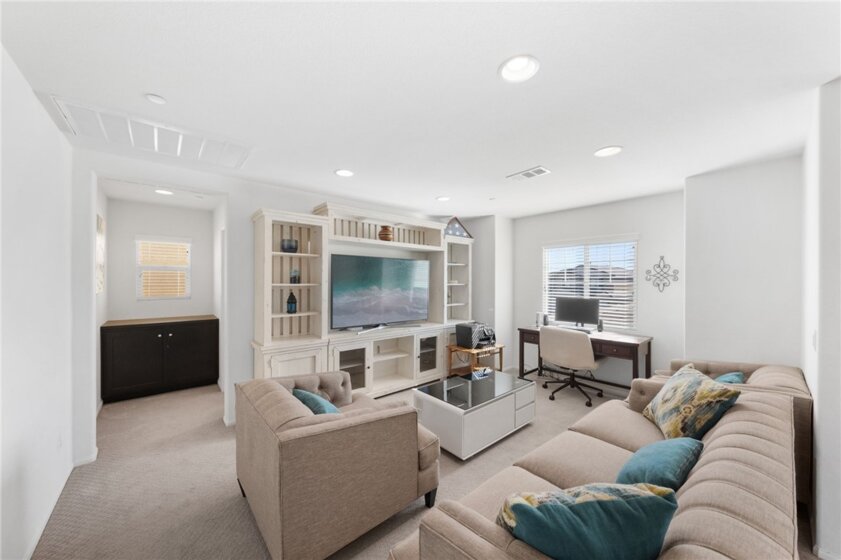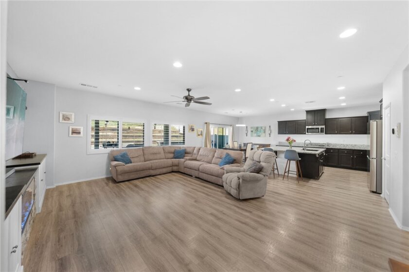 Welcome to 28812 Triple C Ranch Road in the highly sought-after Alderwood community of East Murrieta — where space, flexibility, and everyday living come together effortlessly. Just a short walk to Alderwood Park, you’ll enjoy access to pickleball courts, playgrounds, dog parks, basketball courts, and a vibrant community center, making this location as dynamic as the home itself. With approximately 3,100 square feet, 5 bedrooms, and 4 full bathrooms, this thoughtfully designed residence was built for real life — the kind that evolves over time. At the heart of its versatility is the private Next Gen suite, offering its own entrance, bedroom, full bath, kitchenette, separate living space, in-suite laundry, and direct backyard access. Whether you’re welcoming extended family, creating independence for a college student, setting up a home-based business, or exploring rental income potential, this space delivers privacy and possibility without compromise. The main living area invites connection and comfort. The kitchen features timeless shaker cabinetry, granite countertops, and an oversized island that anchors the space beautifully. With slider access to the backyard and an open flow into the living room, it’s designed for both everyday living and effortless entertaining. The living room is warm and inviting, complete with built-in cabinetry and an elevated gas fireplace that creates a natural focal point for gathering. Just off the main living area, a downstairs bedroom and full bath provide additional flexibility — ideal for guests, extended stays, or a quiet home office tucked away from the upstairs retreat. Upstairs, a spacious loft offers the perfect landing space for movie nights, study sessions, or a secondary lounge. The primary suite serves as a peaceful escape with its own en suite bath, while two additional bedrooms and a separate upstairs laundry room add thoughtful functionality to the layout. Step outside to enjoy the privacy of having no rear neighbor, creating a serene backdrop for entertaining or relaxing evenings. With solar for energy efficiency, a three-car tandem garage for added storage and flexibility, and the added benefit of no HOA, this home blends freedom with practicality. More than just square footage, this is a home designed to adapt with you — supporting multigenerational living, income potential, and the evolving seasons of life, all in one of East Murrieta’s most convenient locations.