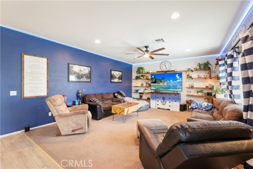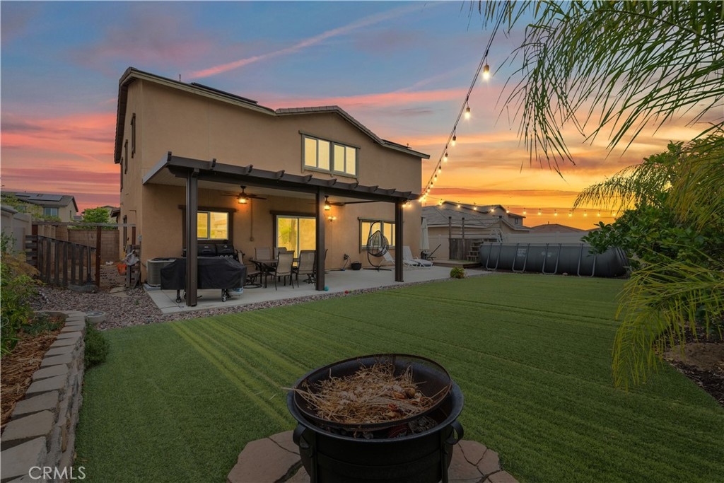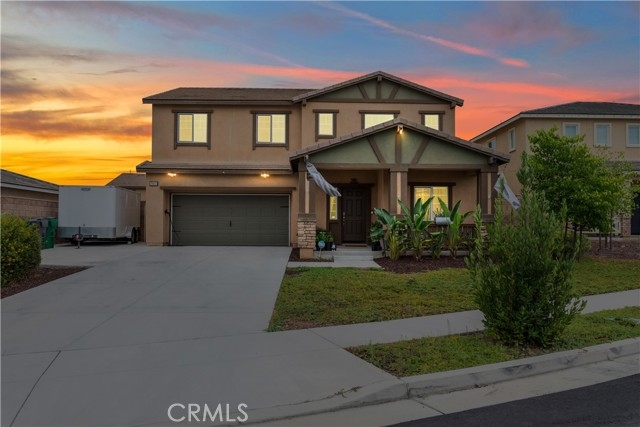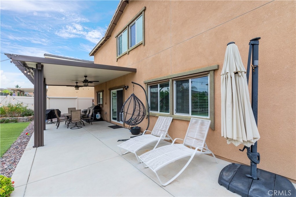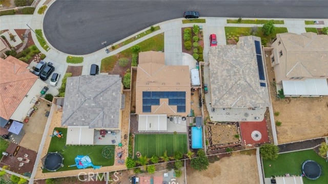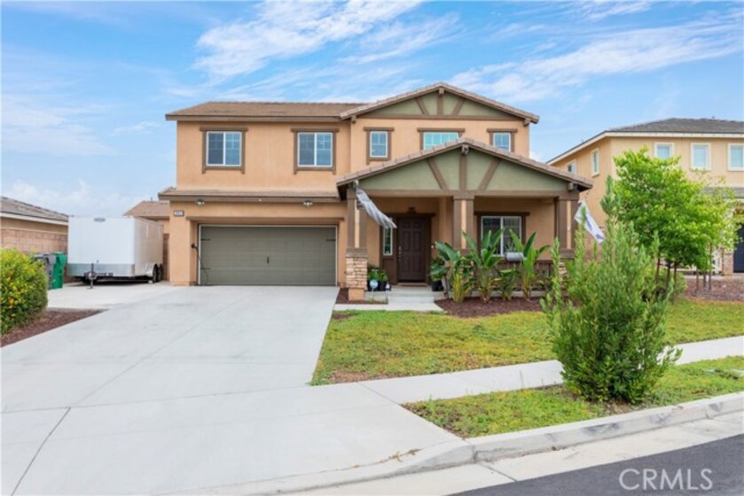 Location + premium cul-de-sac lot with easy access to freeway. Freedom of NO HOA!!! Welcome home to where your monthly expenses will be reduced with the drought tolerant landscaping and a solar system + electric car charger! This home is situated at the end of the cul-de-sac creating extra privacy. The front porch is where you will gather with neighbors and enjoy a private street. As you enter the home you will instantly appreciate the natural lighting and bright finishes. The floor plan offers an open concept great for entertaining. The kitchen is bright with white cabinetry + durable granite countertops..... ready to host your next gathering! Downstairs offers a bedroom + full bathroom (perfect for extended family.....if you want them to stay awhile). Upstairs offers 4 spacious bedrooms + loft. Two car garage is extra deep + there is side parking with a concrete pad ready to store your toys, boat , or RV. We can't forget to mention the water softener with alkaline system. The backyard is designed with artificial turf, vinyl fencing, garden area, producing fruit trees (lemon, orange "cutie", fruit cocktail - peach, plum, nectarine), low maintenance Alumawood patio cover with ceiling fans, extended concrete patio + above ground pool to cool off! The community offers two playgrounds, a basketball court, pickle ball coutes and a rec room for events, & remember.......NO HOA!!! :) Don't miss out on this home, schedule your private tour TODAY! ***ASSUMABLE VA LOAN (for veterans only) with a rate @ 2.25%, balance at $415K***
