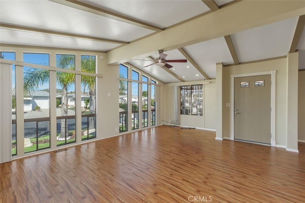 Welcome to Golf Knolls in beautiful Murrieta, CA! You own the land in this park 55+ park. That's right - no space rent! Gorgeous private corner lot with 2 driveways, enclosed 2 car drive through carport plus a single car garage! Recently landscaped front and side yard with low maintenance turf and rock. Added solar panels save thousands on electric bill, payment is $107 per month. VA Loan can be assumed, balance is $205,000 and interest rate is 2.75%!!! You don't have to be a Veteran to assume. Entire home was completely remodeled in 2012 and has been very lightly used since then as a writing studio by the Author/Owner. 2 bedrooms plus a den or office. TONS of storage as the side yard area opposite the carport was also enclosed. Several skylights have been added creating abundant natural light. And there is a storage shed/workshop behind the single car garage as well. Enjoy fantastic amenities and the HOA is only $95 per month.