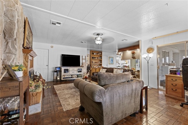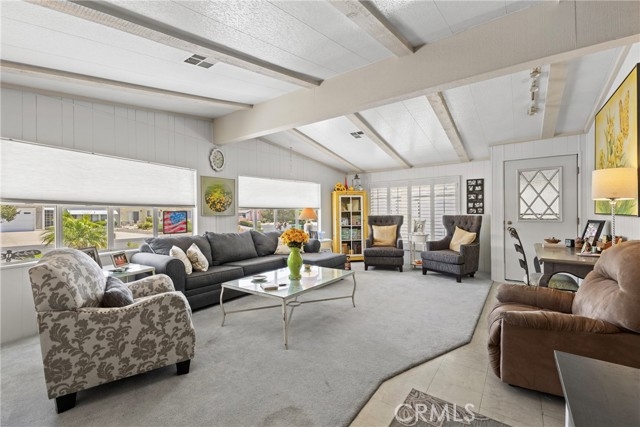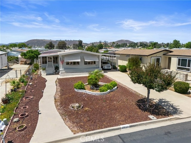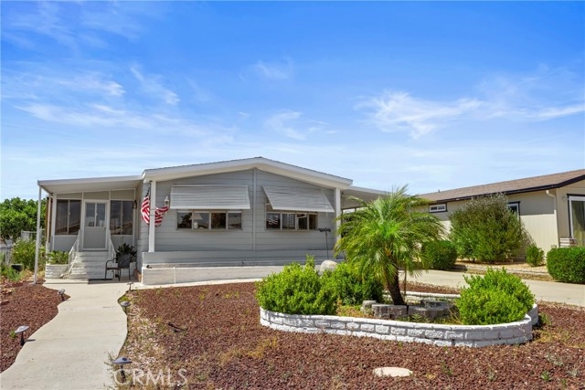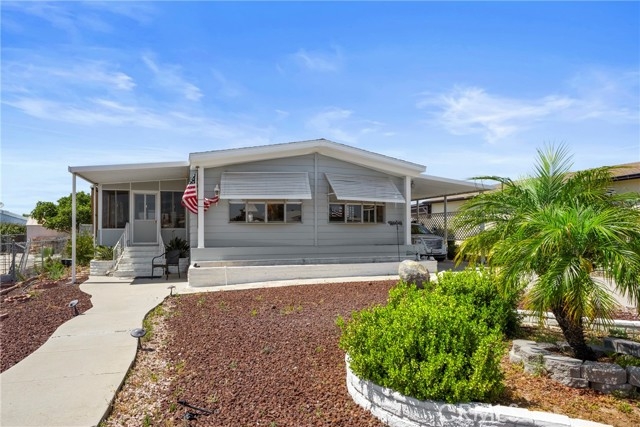 Welcome to this charming home in the desirable Golf Knolls 55+ community! This manufactured home sits on a permanent foundation on its own land and financing is available! Step inside to a light, bright, and open floor plan with plenty of space to relax and entertain. Enjoy peace of mind with a NEW roof installed in March 2023. The updated kitchen features stainless steel appliances, a tile countertop, and a modern, clean look. The home offers a spacious family room and living room, and the family room even includes a wet bar, perfect for hosting guests. The primary bedroom boasts three closets, offering plenty of storage space. Outside, you’ll find a fenced backyard ideal for pets, a dog run or a future garden. The outbuilding could easily be converted into a one-car garage or workshop to suit your needs. Additional features include a laundry room with convenient access to the covered carport, which also includes a chair lift for easy access into the home. Living in Golf Knolls means enjoying a low HOA fee with access to great amenities including a pool, spa, clubhouse, and more! Don’t miss this opportunity to own a move-in-ready home with modern updates and room to customize!