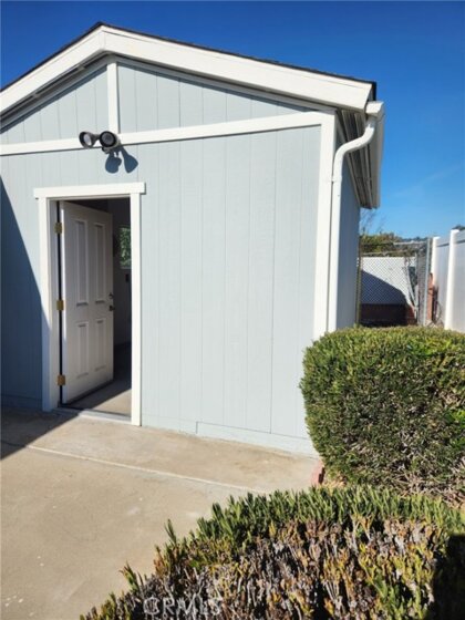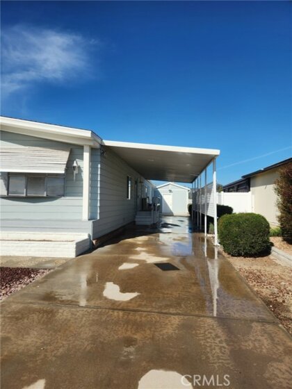 Charming Golf Knolls manufactured home on permanent foundation with land ownership. Financing available! Open floor plan with abundant natural light. Updated kitchen features stainless steel oven, range, and tiled counters. Spacious living and family rooms. Master bedroom boasts 3 generous closets. Outbuilding storage can be converted into a 1-car garage or workshop. Entertain with ease using the wet bar in the family room. Convenient laundry room connected to covered carport with chair lift access. Fenced backyard with dog run or garden area. Golf Knolls is a 55+ community with low HOA, complete with pool, spa, clubhouse, and more! New roof installed in March 2023. Furnishings included!