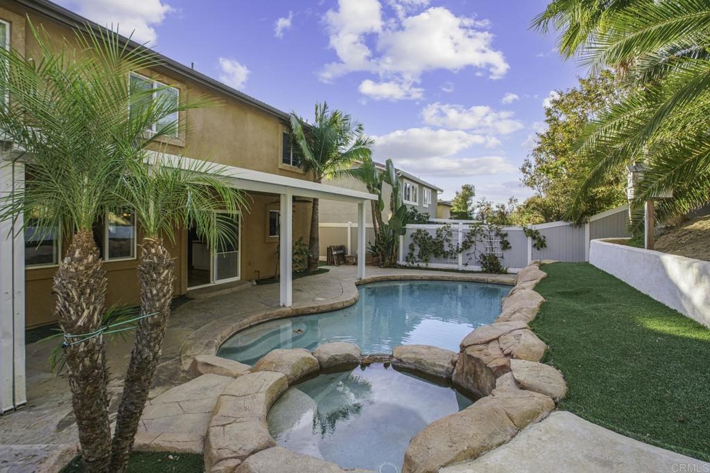Price Improvement! Nestled in the middle of the beautiful greens of The Golf Club of Rancho California, this marvelous 2 story, 4 BDR - 3 Bath, 2600+ SQF Murrieta home with gorgeous resort style pool & spa is the home you've been looking for. Some of our favorite features of this single family home are the lush palm trees, vibrant artificial turf and landscaping. The bright & open kitchen with a center island, butler's pantry, double ovens & 2 wine fridges. The oversized upstairs loft is perfect for a second TV room, office or rec area. Lastly, the resort-like backyard with lush landscaping, red stone stamped concrete & refreshing pool & spa combo with overhanging palm trees for extra shade makes this the Cali dream! All of this can be enjoyed with your fully paid off solar panels! Located just 3 miles from the I-15 and a blocks from so many restaurants, grocery stores, cafes and shopping malls!