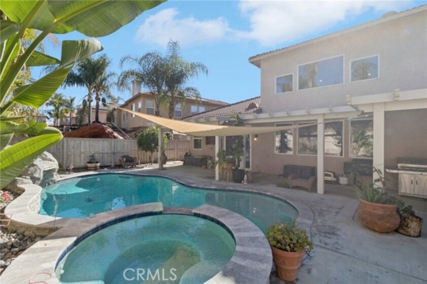 Welcome to this beautiful pool home located in the highly sought-after Greens subdivision, offering approximately 3,069 square feet, 4 bedrooms, 3 bathrooms, an oversized loft, and PAID OFF SOLAR. With LOW TAXES and NO HOA, this move-in-ready home delivers exceptional value, space, and comfort in a well-established Murrieta neighborhood close to shopping, dining, wineries, and award-winning schools. The home features a highly desirable primary suite on the main floor with direct access to the backyard and pool, creating a seamless connection between indoor and outdoor living. The primary bedroom offers generous space and a peaceful retreat, while the additional bedrooms and loft provide flexible options for guests, home office space, or additional living areas. At the heart of the home is the remodeled gourmet kitchen, designed for both everyday living and entertaining. It showcases white cabinetry, quartz countertops, subway tile backsplash, a large center island with eating bar, and a butler’s pantry for added storage and functionality. The kitchen opens to the spacious family room, which features a cozy fireplace and dramatic two-story ceilings, creating an inviting gathering space. The floor plan also includes formal living and dining rooms, offering additional flexibility for entertaining or more traditional living arrangements. Throughout the home, upgrades include laminate wood flooring, custom paint, textured accent walls with wood and faux brick details, plantation shutters, and ceiling fans. Modern conveniences are thoughtfully integrated with smart home features, including a smart thermostat, smart smoke detectors, and a Ring doorbell, adding comfort, efficiency, and peace of mind. Step outside and enjoy a true resort-style backyard designed for relaxation and entertaining. The outdoor space features a vinyl patio cover spanning the length of the home, ideal for outdoor dining and lounging. The PebbleTec pool and spa include a reef shelf with umbrella feature, removable safety fence, and gas fire pit. Garden boxes and mature fruit trees complete the backyard. Located in a prime Murrieta location near local wineries, shopping, dining, and everyday conveniences, this home is within the award-winning Murrieta Unified School District. With paid-off solar, low taxes, and no HOA, this property offers long-term affordability and is truly move-in ready. Schedule your private showing today!