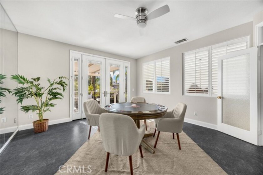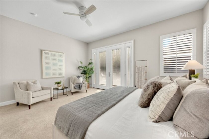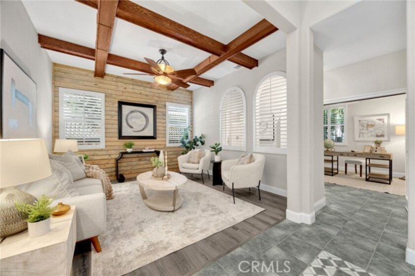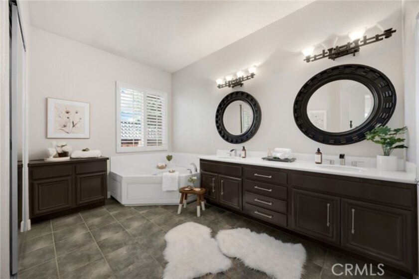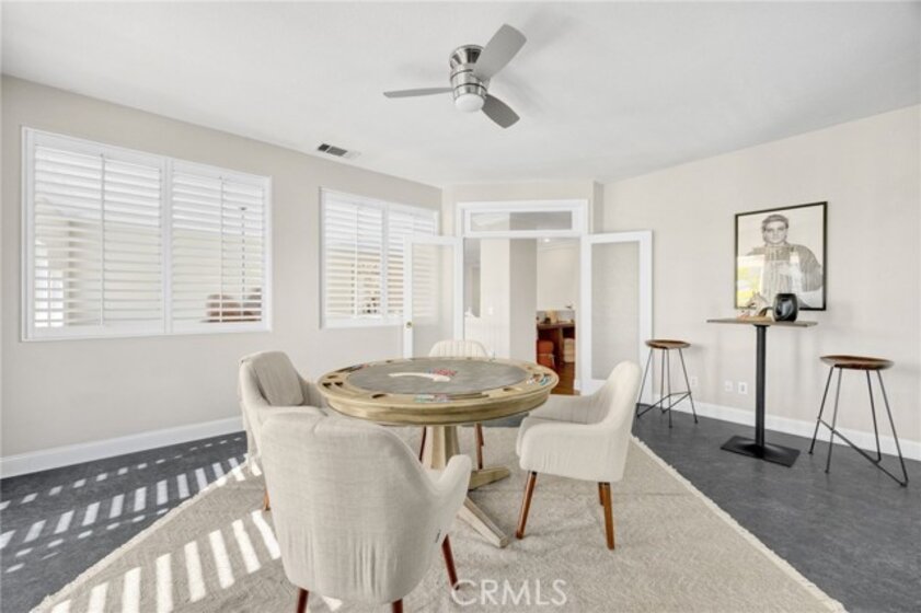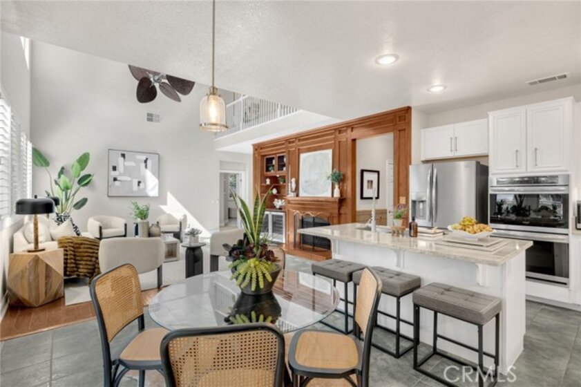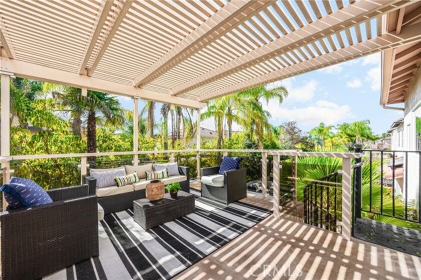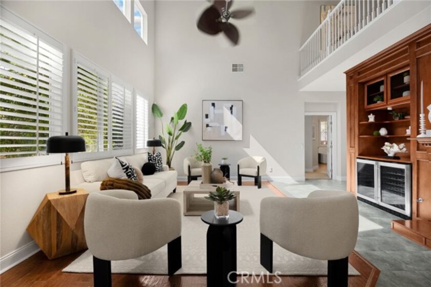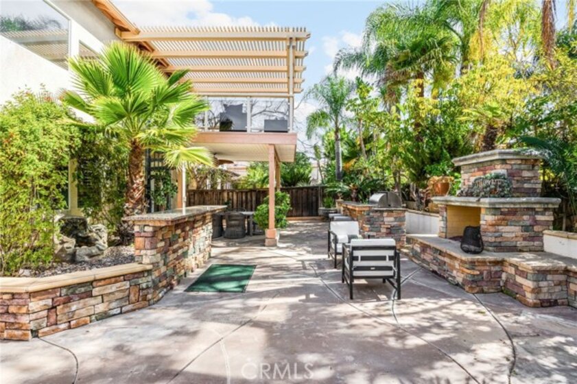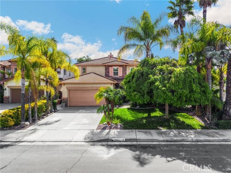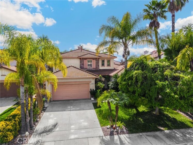 A MUST SEE PROPERTY! Located in The Greens, this exceptional home blends timeless elegance with modern comfort and a spectacular backyard in one of the area’s most sought after communities. From the moment you enter, you are welcomed by a formal living room and dining room that set the tone for refined gatherings and everyday luxury. The heart of the home is the dramatic family room featuring soaring ceilings with abundant natural light pouring in from the gorgeous windows, custom built-ins, a wine chiller, beverage fridge and a cozy fireplace that creates a warm and inviting atmosphere. The beautifully renovated kitchen is designed to impress with a generous center island, stone counters, stainless steel appliances, breakfast bar, pantry and a sunlit eating area that seamlessly opens to the covered patio, making indoor outdoor living effortless. Next to the kitchen is a large laundry room connecting with direct garage access. The main level primary suite offers a private retreat complete with French doors leading to the back terrace, a spacious walk-in closet and a luxurious bath featuring dual vanities, a walk-in shower and a relaxing soaking tub. A fourth bedroom has been thoughtfully converted into an office and can easily be returned to a bedroom to suit your needs. Upstairs you will find two additional bedrooms, a full bath and a versatile bonus room with endless possibilities that opens to an upper level deck with a spiral staircase providing direct access to the backyard oasis. Step outside to a stunning tropical inspired backyard designed for both entertaining and relaxation. Multiple outdoor living areas, a built-in BBQ, bar area and outdoor fireplace create the perfect setting for memorable evenings under the stars. Additional highlights include central air and heat, solar panels and a three car garage. This is more than a home, it is a lifestyle opportunity in one of Murrieta’s premier neighborhoods.