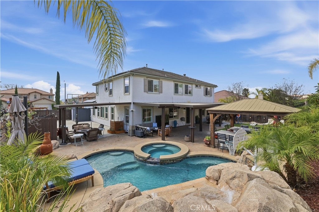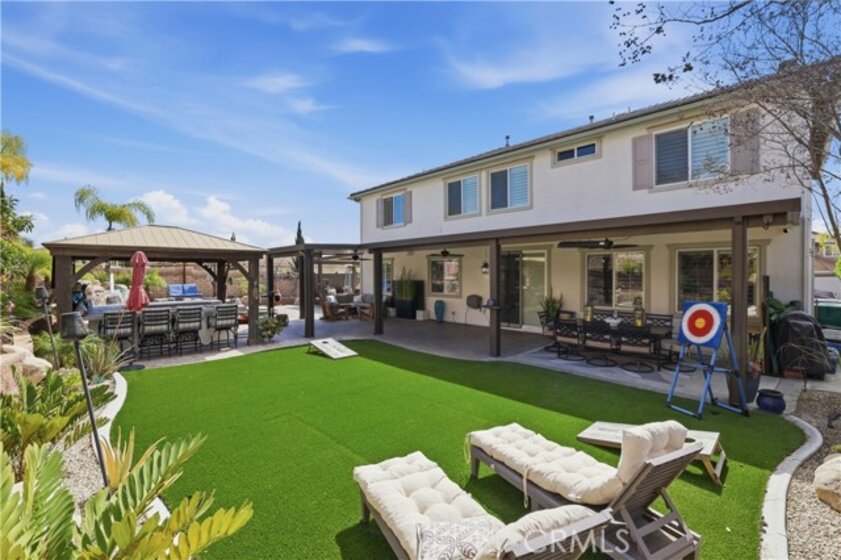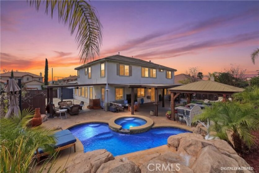 Welcome to this exceptional pool home ideally located within the Rancho California Golf Course community, with NO HOA and low taxes. Truly one of a kind among current inventory, this beautifully updated residence offers 5 bedrooms and 4 full bathrooms, including a full bedroom and bathroom on the main floor AND an attached CASITA with separate entry! The thoughtfully designed floor plan spans 3,343 square feet (3,155sf main home and 188sf casita) and features a separate living room, formal dining room, spacious family room, upstairs bonus room / office, and an updated gourmet kitchen. The elegant entry has double glass doors making the foyer light and bright upon entry. Gourmet kitchen has quartz counters, breakfast bar seating, SS appliances and pull out drawers in the cabinets. Crown molding & shutters throughout. Upstairs the expansive primary bedroom feels like a private sanctuary, complete with a fully remodeled primary bathroom with frameless glass shower and dual shower heads. Additional office nook and bonus rooms upstairs. Bonus room has barn doors and provides even more flexibility, with ample opportunity to create an extra bedroom or office space as needed. Recently painted exterior giving the home a modern, turnkey feel. The backyard is an entertainers paradise complete with pebble-tec Pool / Spa / Waterfall / Grotto, BBQ Island, alumawood patio cover, fruit trees and turf. Home has an oversized corner lot side yard used as a basketball court and has RV potential. Hook-ups are present. Casita has it's own separate entrance & HVAC unit, great for multi-gen living or income potential. Upstairs has breathtaking views of city lights and mountains. Conveniently located just minutes from Temecula and within walking distance to Rancho California Golf Club, this home perfectly blends space, location, and lifestyle. A rare opportunity you won’t want to miss.