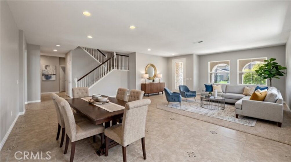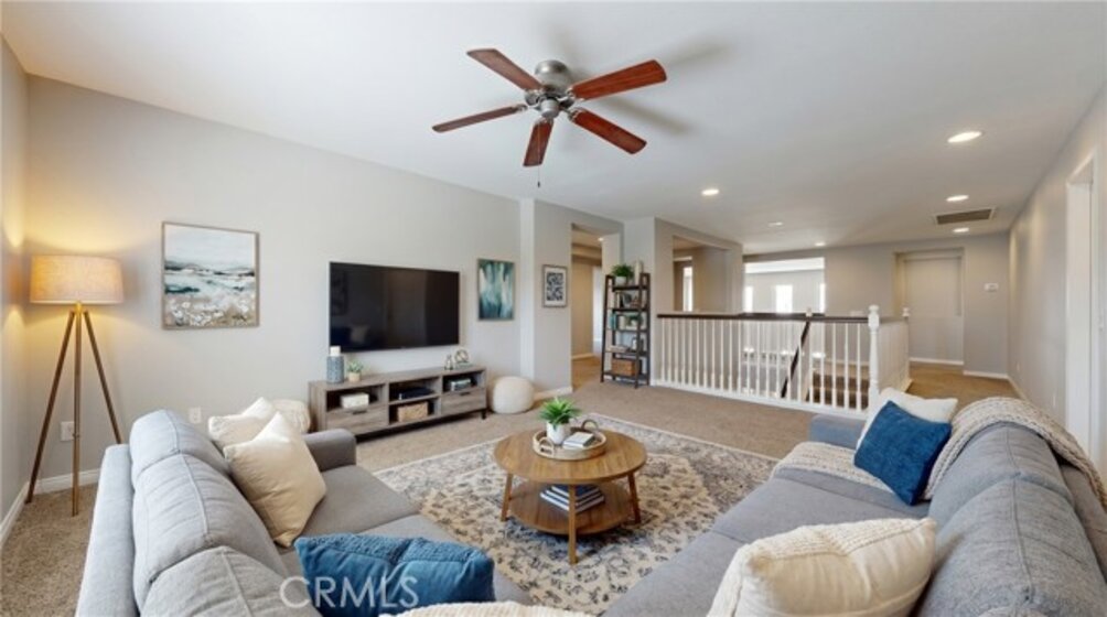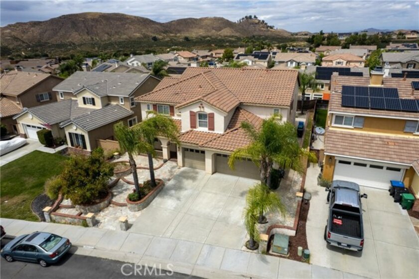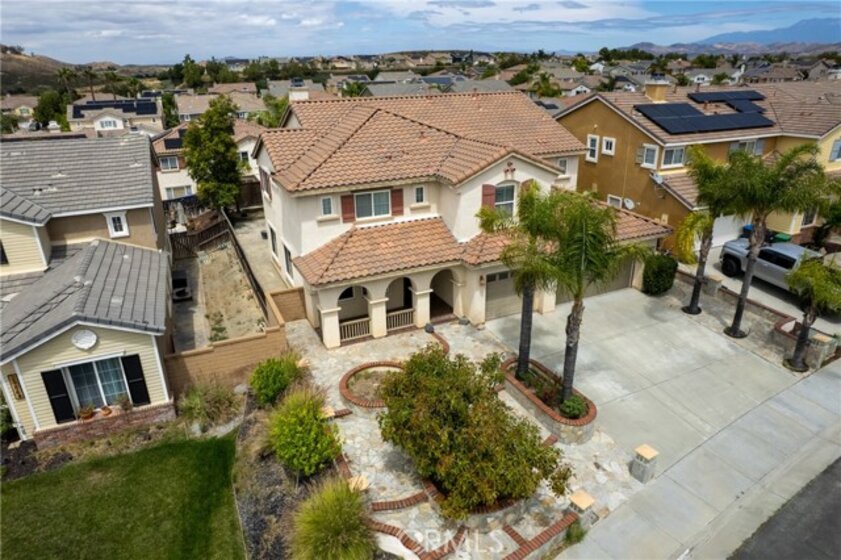 Welcome To This Spacious And Well-Appointed Home Offering A Functional Layout, Thoughtful Upgrades, And Indoor-Outdoor Living. From The Moment You Arrive, You’ll Appreciate The Covered Front Porch And Extensive Hardscape Featuring Brick And Slate Accents, Multiple Planters With Irrigation, And Mature Landscaping Including Queen Palms And Additional Trees That Enhance The Curb Appeal. Conveniently Located Just Four Doors Down, You’ll Also Enjoy Easy Access To A Neighborhood Park Complete With A Playground And Slide—Perfect For Outdoor Fun. Inside, The Home Showcases A Blend Of Tile Flooring In High-Traffic Areas And Newer Carpet Throughout, Creating A Comfortable And Inviting Atmosphere. The Formal Living And Dining Rooms Offer Large Picture Windows And Recessed Lighting, While The Expansive Great Room Features Soaring Vaulted Ceilings, A Cozy Gas Fireplace, And Abundant Natural Light. The Kitchen Is Designed For Both Functionality And Style With Granite Countertops, Custom Tile Details, Under-Cabinet Lighting, A Five-Burner Range With Hood, Dual GE Profile Ovens, Stainless Steel Sink And Dishwasher, And A Walk-In Pantry. A Highly Desirable Downstairs Bedroom With Its Own Private Full Bathroom Provides Flexibility For Guests Or Multi-Generational Living, Along With An Additional Guest Half Bath Conveniently Located On The Main Floor. Upstairs, You’ll Find A Large Loft, Walk-In Linen Closet, And A Spacious Primary Suite Offering Scenic Views, Dual Walk-In Closets, And A Well-Appointed Bathroom With Dual Sinks, A Separate Tub And Shower, And A Private Toilet Area. Secondary Bedrooms Are Generously Sized And Share A Bathroom With Dual Sinks And A Separate Tub/Shower Space. Additional Highlights Include An Upstairs Laundry Room With Gas Hookup, Dual Zone HVAC With Separate Thermostats For Upstairs And Downstairs, Ceiling Fans Throughout, And A Three-Car Garage With Interior Water Shut-Off Access. The Backyard Is Designed For Low Maintenance And Outdoor Enjoyment Featuring Stamped Concrete Patio Areas, Artificial Turf, Brick Curbing, Mature Trees, A Retaining Wall, And A Movable Patio Cover, All Enclosed By Wood Fencing. This Home Offers A Versatile Floor Plan, Solid Features, And Great Potential—Ready For Its Next Owner To Make It Their Own.