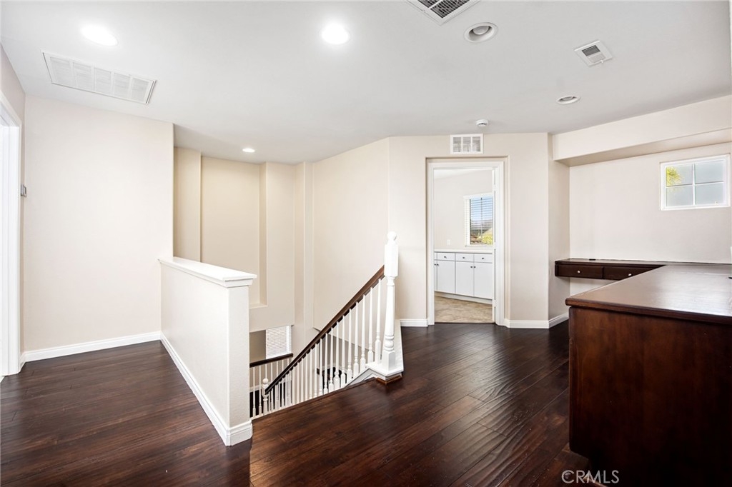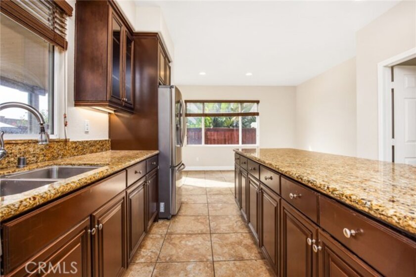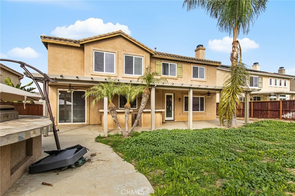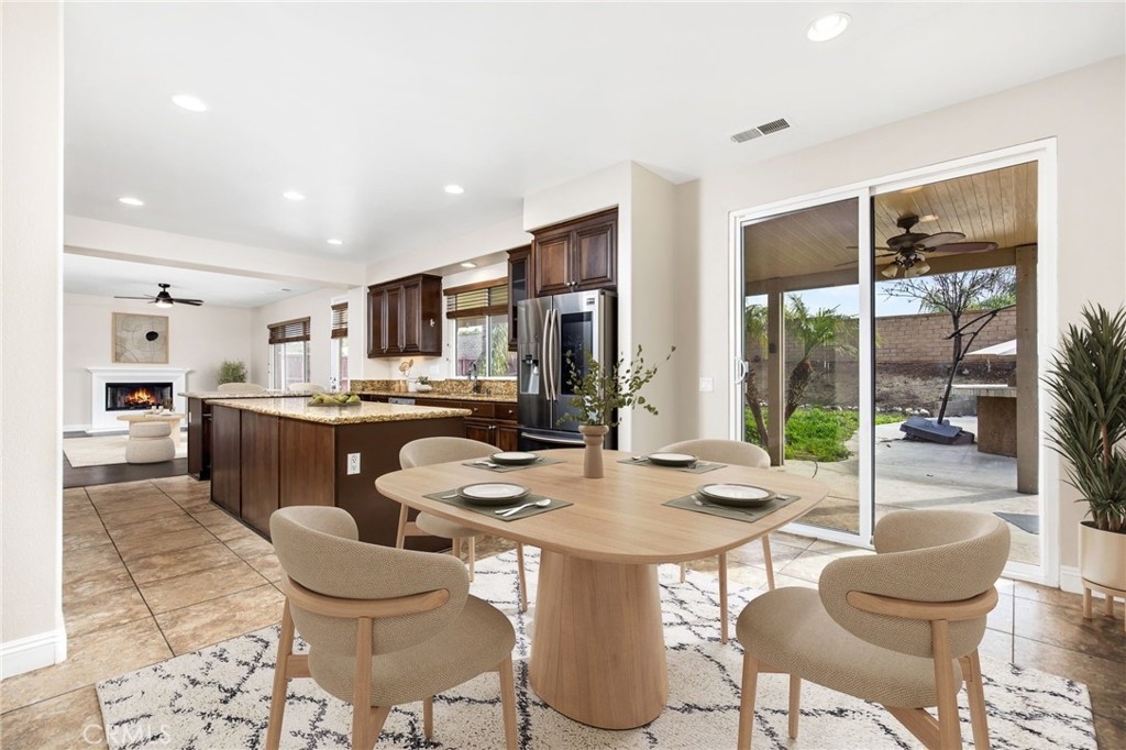 Spacious and thoughtfully designed, this 5-bedroom, 3.5-bath home offers approximately 3,233 square feet of living space with a flexible floor plan and extensive upgrades throughout. The main level features a bedroom and full bath, ideal for guests or multi-gen use needs, along with expansive living and dining areas accented by large windows and recessed lighting. The open-concept kitchen includes granite countertops, an oversized center island with bar seating, espresso cabinetry, a walk-in pantry, stainless steel appliances, and double ovens. The kitchen flows seamlessly into the family room with a fireplace, creating a functional and inviting gathering space. Additional main-level features include a powder room, smart thermostat, and smart-enabled lighting and fans. Upstairs, you’ll find four additional bedrooms, an open landing with built-in desk workspace, and a dedicated laundry room. The primary suite offers generous proportions, a large walk-in closet, and a spa-inspired bathroom featuring a custom walk-in shower with multiple shower heads and designer finishes. The backyard is designed for entertaining with multiple outdoor islands, built-in BBQ, sinks, and electrical and speaker pre-wiring. A covered patio with ceiling fans provides shaded outdoor living space, and the yard offers ample room for future customization. Additional highlights include laminate wood flooring in common areas and stairs. Conveniently located near parks, shopping, dining, and commuter routes, this home combines space, functionality, and modern upgrades in a well-established Murrieta neighborhood with award winning Murrieta schools.