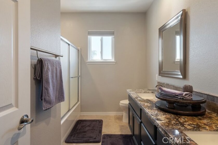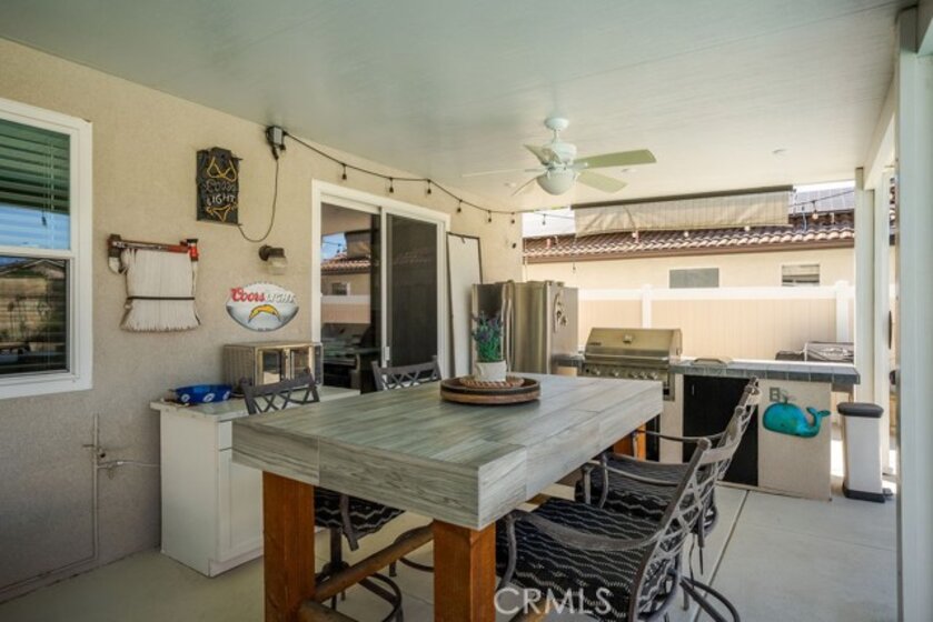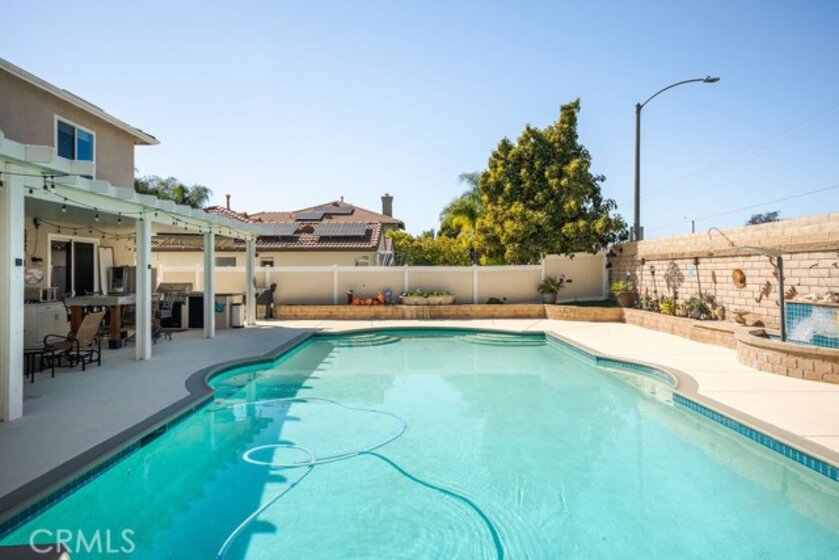 Absolutely stunning property in highly sought after community of The Greens in Murrieta. This 5 bedroom pool home is a MUST SEE! From the moment you enter the home, you are welcomed by a formal living room space that is currently used as an office and a formal dining room. The heart of the home is where the kitchen and family room meet with soaring ceilings with loads of windows allowing all the natural sunlight to shine in. Gorgeous custom tile floors throughout the main floor. The gourmet kitchen has bright white cabinetry with underlighting, custom counters and backsplash, and stainless appliances. The first floor of this wonderful home boasts the Primary Suite with a fully remodeled custom primary bath and an additional secondary bedroom with private bath. There are three additional spacious bedrooms on the second floor, all with ceiling fans and wood flooring. The backyard is an entertainers paradise with a huge covered patio overlooking a sparkling in-ground pool and above ground spa. BBQ island is there for all of your culinary delights. All of this along with a list of upgrades: PAID solar with 3 batteries, upgraded windows, freshly painted deck, remodeled front landscaping, new water heater, new HVAC system, whole house fan, new vinyl fencing, fruit trees, new pool pump, new garage door opener with camera. Truly a dream come true.