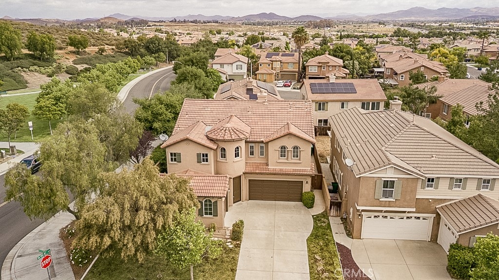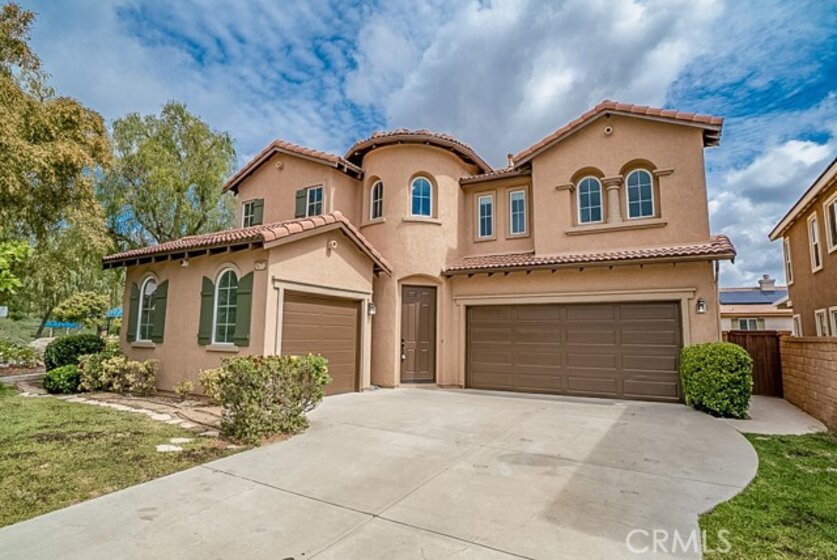Set on an impressive 5,663 sq ft corner lot in Murrieta’s coveted Northstar Ranch enclave, this 2-story Spanish-inspired residence pairs inviting style with everyday ease! Arched windows overlooking a shaded lawn draw you in, while the foyer opens to a well-sized living area with tall ceilings, neutral tones, and a mix of gleaming wood-style and tile flooring that reflects the natural light from expansive windows. The dining alcove flows seamlessly into a striking kitchen where a sleek fireplace adds ambiance. Here, abundant cabinetry, a prep island with seating, and dual ovens make hosting feel effortless and enjoyable. Upstairs, the generous primary suite becomes a personal escape with its vaulted ceilings, oversized walk-in closet, and rejuvenating ensuite with a soaking tub ready for slow evenings. Your remaining retreats offer soft carpeting and ample storage, with a main-level bedroom that adapts easily for overnight visitors or as a productive remote office. Outside, your fenced backyard creates a sense of seclusion, while the wide patio sets the stage for relaxed weekend BBQs. A laundry nook and an attached 3-car garage with an extended drive and EV charger add convenience. Near top-rated Murrieta schools, parks, trails, and Lake Skinner Recreation Area, and with quick access to the 15 and 215 Fwys and nearby Temecula Wine Country, life here feels connected yet comfortably removed. Come experience where your next chapter could begin!