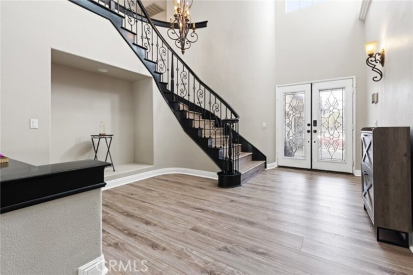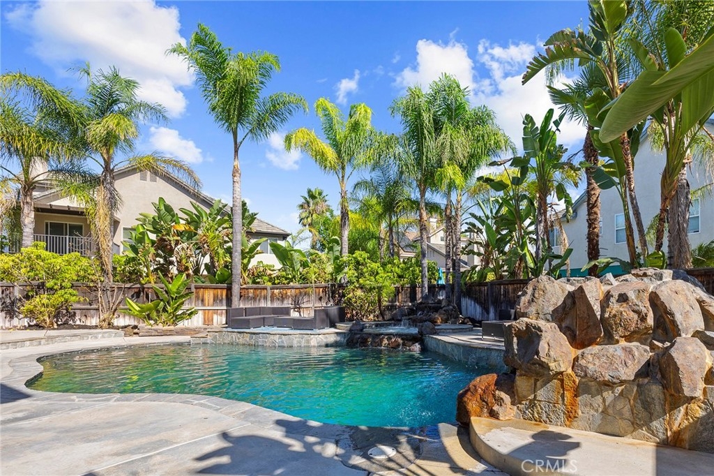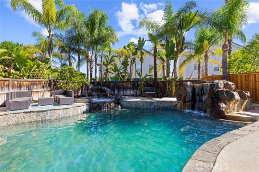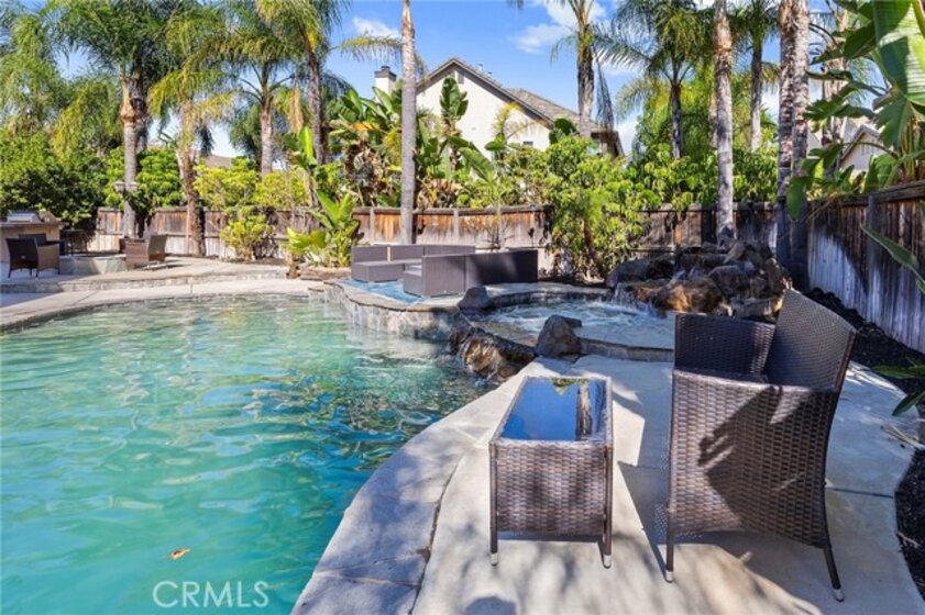 Newly Remodeled and painted Pool Home with Paid Solar and No HOA !! Enter into your own private oasis with this stunning 3-story, 4,150 sq. ft. home, where the highlight is the resort-style backyard. The outdoor space is a true retreat, featuring a tiered patio that overlooks a sparkling Pebbletech pool and spa, surrounded by real rock formations and a cascading waterfall. Perfect for year-round enjoyment, the backyard also boasts a glass fire pit, a built-in barbecue for outdoor dining, and lush tropical landscaping with palm trees and stacked stone planters. Whether you're entertaining or simply relaxing, this serene oasis offers everything you need to unwind in luxury. Inside, the home continues to impress with 5 spacious bedrooms, 4 ¾ baths with an additional downstairs office that could be easily used as a bedroom totaling 6 Bedroom, and a private casita perfect for an in-law or generate additional income by using it as rental. This versatile space creates the perfect opportunity to boost your investment while enjoying the luxurious comforts of this expansive home. The entry greets you with charm through leaded glass doors, while slate floors, wrought iron lighting, and granite countertops provide a touch of elegance throughout. Surround sound in the dining, family rooms, and outdoors ensures that the entertainment doesn’t stop at the door. The second floor features a luxurious master suite, complete with its own sitting area, fireplace, and spa-like ensuite. The master bath includes granite countertops, double sinks, a deep soaking tub, and a large walk-in closet with natural light. Every bedroom is equipped with ceiling fans for comfort. The versatile third floor boasts a bonus room with a closet, perfect for a game room or extra guest space. Upgrades abound, including a whole-house fan, slate flooring, granite countertops, custom wine racks, and wrought iron stair rails. This home is designed for both comfort and entertainment, but the true gem is the backyard—a private oasis where relaxation and luxury await.