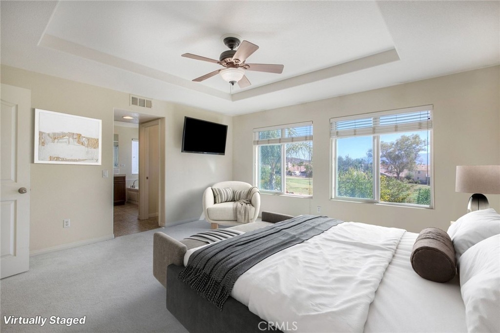 Rare Opportunity to own this turnkey home with a covered patio and absolutely gorgeous views of the Rancho California Golf Course (formerly the SCGA) from the kitchen, family room and back yard! This highly sought after turnkey home backs up to the 11th fairway and is located in "The Greens" golf course community. It is a 2720 sq ft, 5-bedroom, 3-bathroom home with a 3-car tandem garage on a private cul-de-sac. You will find a laundry room with a utility sink, and a bedroom with an adjacent bathroom on the main floor! The kitchen has stainless steel appliances, granite countertops, a 5-burner gas cooktop, double oven, a built-in microwave, plenty of cabinet space and a "kitchen island" which has counter seating that has a double sink. The kitchen is open to the family room where you can relax in front of the fireplace on those cold nights. The living room is open to the formal dining room area with tall ceilings. There are ceiling fans throughout this home; the yard includes lemon, lime, peach and pomegranate trees! Within minutes of Old Town Temecula, walking/hiking trails, lakes, wineries, shopping, breweries, dining and the annual Balloon and Wine Festival. This home is located in a distinguished school district and has easy freeway access, no HOA and a low tax rate! Attention Veterans: VA assumable loan at 4.49%!!