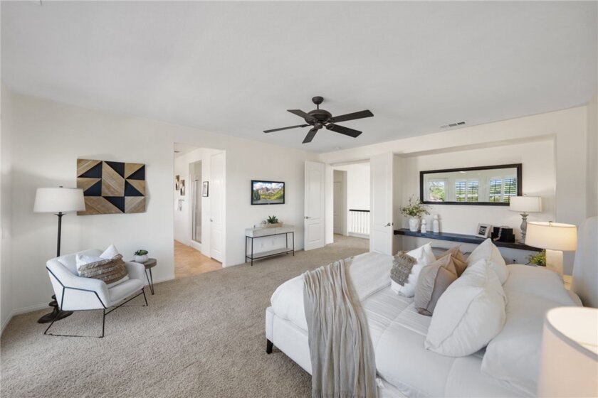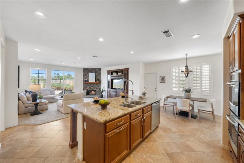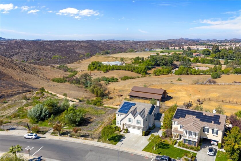 *VIEWS *HUGE CORNER LOT * OWNED SOLAR *MAIN FLOOR BEDROOM *VERY LOW HOA DUES *Welcome to Country Roads-one of Murrieta’s most charming communities! This beautiful 5-bed, 3-bath home offers 3,404 sq ft of living space on a large, private corner lot backing to open space w/ hill views. It feels like rural living yet is minutes from Spencer’s Crossing, new shopping, restaurants, & top-rated Murrieta schools. With its picture-perfect curb appeal & charming “dollhouse” exterior, this home is sure to impress from the moment you arrive. Enjoy a 3-car garage (2-car + separate 1-car) w/ plenty of driveway parking. Inside, you’re greeted by soaring 2-story ceilings, a bright living room w/ plantation shutters, & a formal dining room featuring custom molding & a stunning chandelier-perfect for hosting your upcoming Thanksgiving feast. The main floor includes a full bedroom & bath w/ updated lighting & tub/shower combo, ideal for guests. The family room offers a cozy floor-to-ceiling stone fireplace & custom built-ins, open to the kitchen w/ granite counters, subway tile backsplash, stainless appliances, island, & a huge walk-in pantry. A casual dining space nearby is perfect for family meals or entertaining friends. Upstairs, the primary suite features a double-door entry, private balcony to relax under the stars, dual sinks, large soaking tub, separate shower, & large walk-in closet. You’ll also find 3 spacious secondary bedrooms all with walk-in closets (2 w/ ceiling fans, 1 w/ dainty chandelier), a hall bath w/ dual sinks, & laundry room w/ sink, cabinets, & large linen closet. Step outside to your private retreat - enjoy serene views, a stamped concrete patio, freestanding firepit, & a generous side yard w/ fruit trees. Extra perks: OWNED SOLAR to save you $$ on your SCE bill, newer water heater, SMART thermostats, recessed LED lighting, & workbench in the 1-car garage. Conveniently located near Target, Costco, Home Depot & a lot more shops & restuarants, including the Promenade Mall in Temecula, & entertainment such as Murrieta Market Nights, the renowned Temecula wineries & Pechanga Casino. This home perfectly blends charm, comfort & convenience-make it your own in time for the holidays!