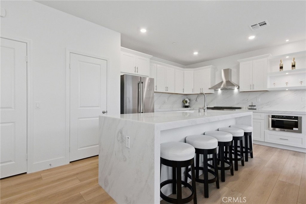 Welcome to this beautiful Priced to Sell, upgraded home featuring a long driveway with a custom brand new kitchen with white shaker cabinets and a new kitchen sink. The new kitchen island was extended, allowing space for five barstools, it features marble countertops with a waterfall design. The kitchen also features a dry bar with shelves and lighting to display your favorite tequila or wine bottles. It comes with a built-in microwave and a wine refrigerator with an extra pantry for extra food or pots and pans storage. All brand new Zline kitchen appliances are included . The whole house was upgraded to Luxury vinyl plank and it also features designer ceiling fans in some rooms. This lot is a premium lot and the back yard is a nice size. The house also features brand new wood shutters and upgraded 5.5 inches baseboard throughout the entire house. The garage floor was painted with epoxy paint and this home is never lived in. Make this beautiful home your own! Murrieta residents enjoy great local amenities and attractions, including the Golf Club at Rancho California, endless local wineries, stunning natural landscapes and shopping at Promenade Temecula. Come and see it, It will not last!!