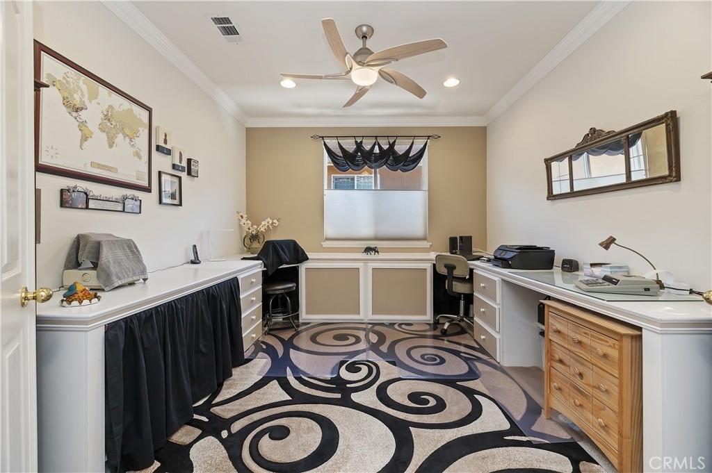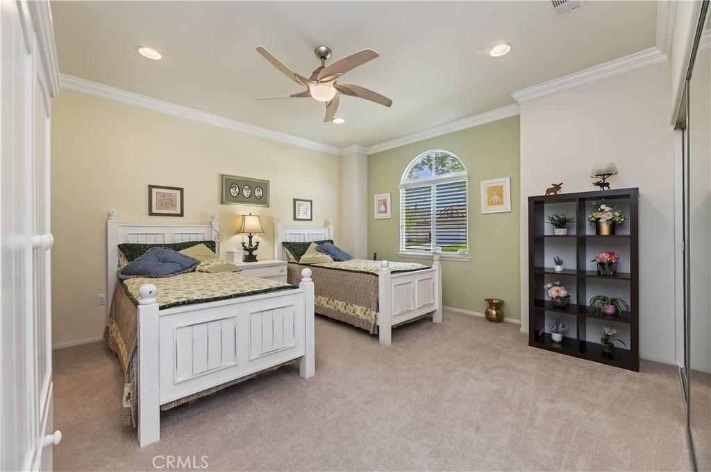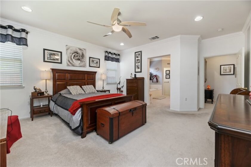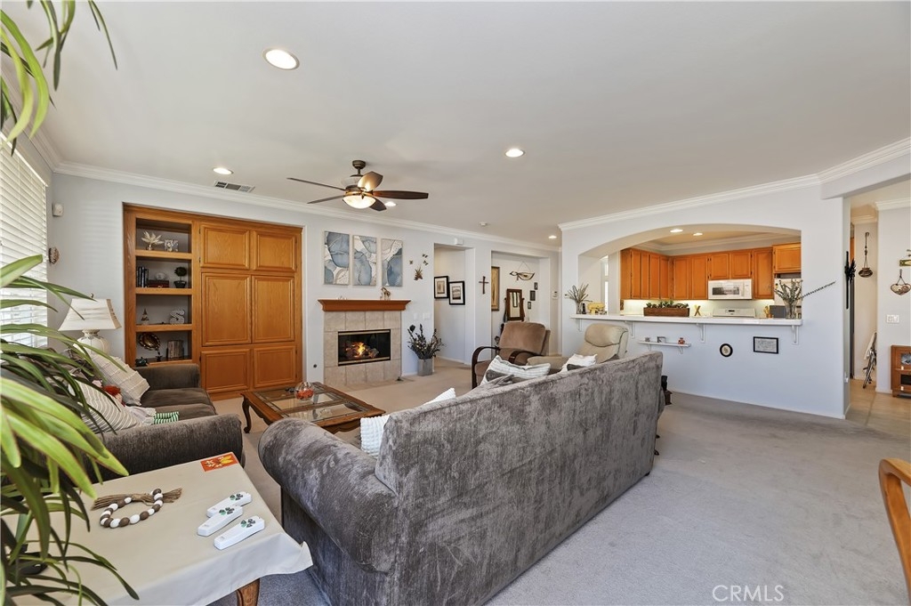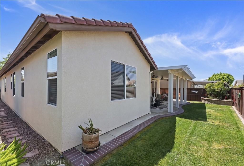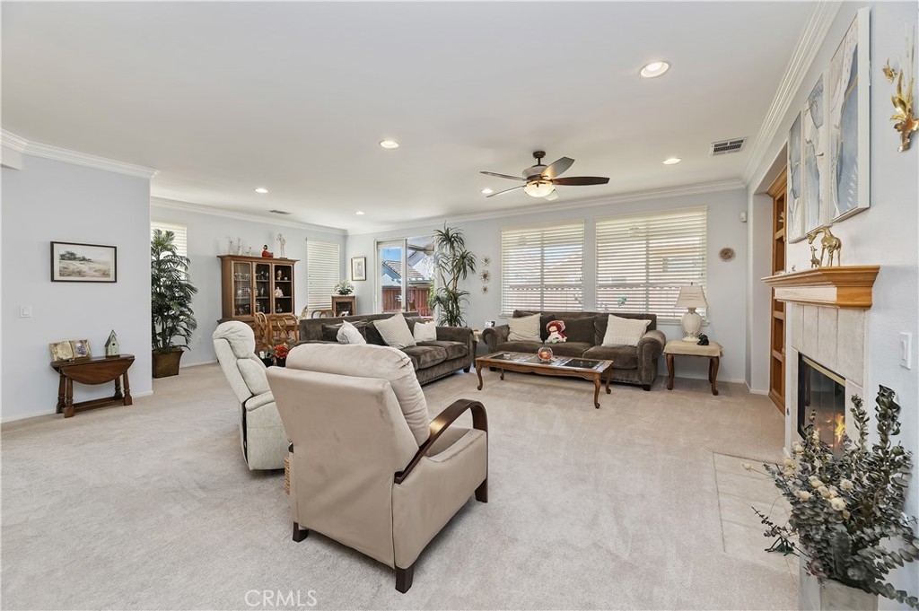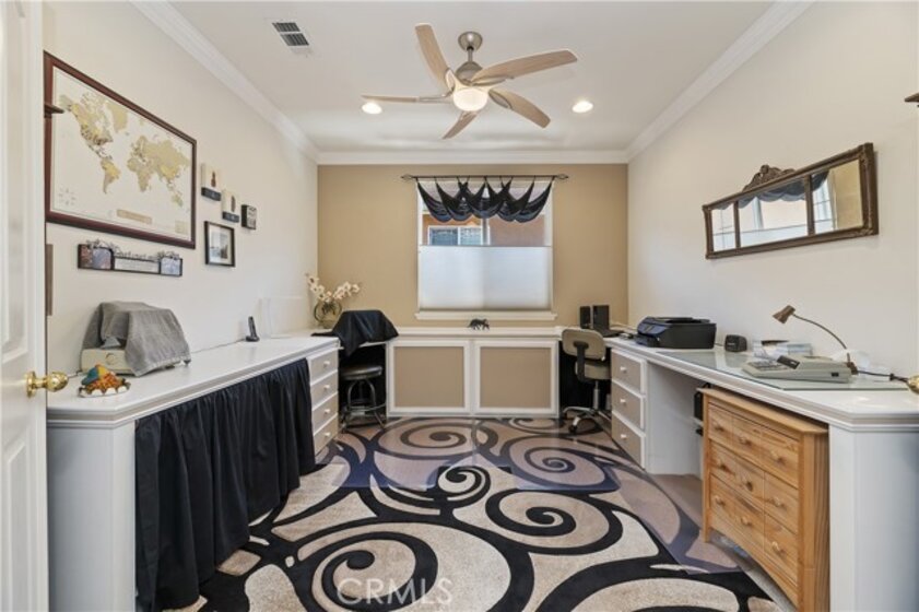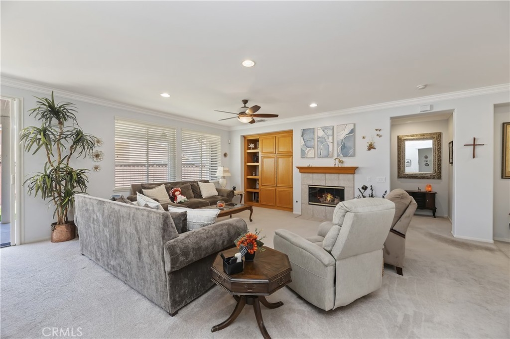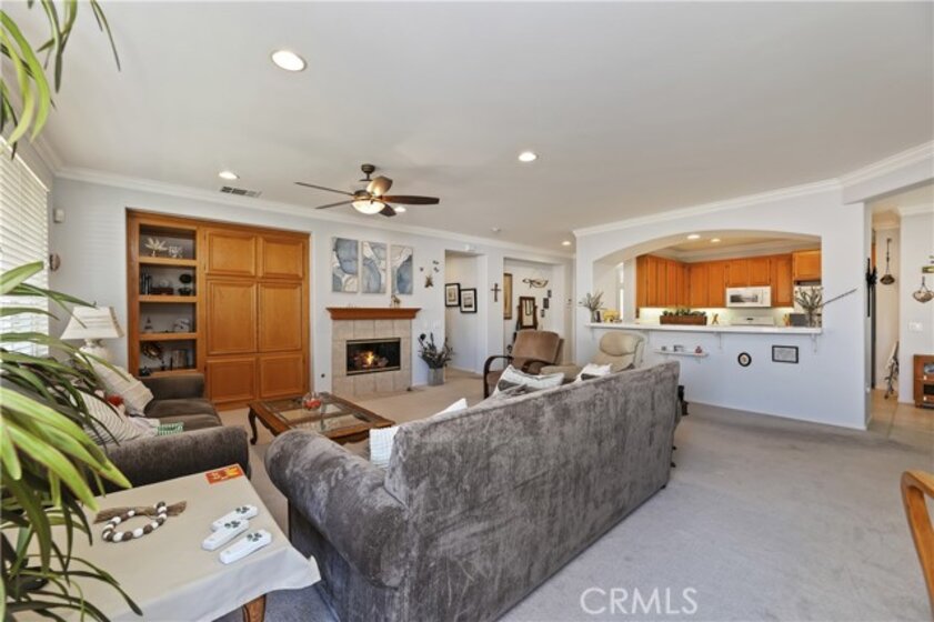 Located in the Four Seasons Murrieta 55+ Community, this is the popular Traditional 2 Floor Plan featuring 2,180 sq ft of living space. This home is turnkey with Lots of upgrades in this home - including crown molding, ceiling fans, and a fireplace in the Great Room. The den has loads of built-ins, but could easily be converted to a 3rd bedroom. The island kitchen overlooks the great room...a design great for entertaining. The primary bath has a separate tub and shower as well as a massive walk in closet. the back yard is neatly landscaped with an aluminum solid cover with 3 fans over the patio. Be sure you stop at the club house (The Lodge). The Club House is a 10 acre facility for the use of Four Seasons residents and their guests only. It houses: ballroom, gym, conference room, library, beauty salon, card and game rooms, heated pool, bocce ball court, paddle tennis and tennis courts, shuffleboard, and more...