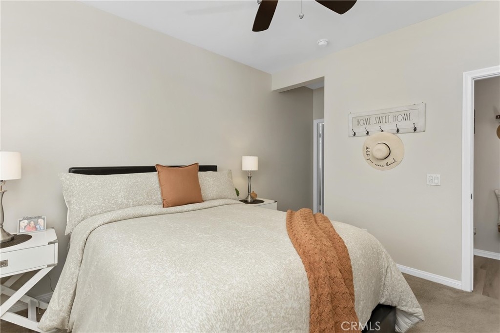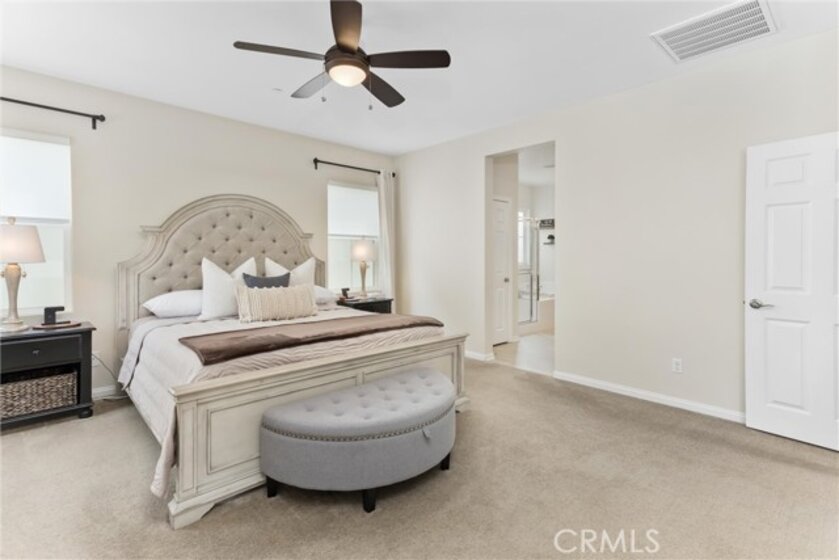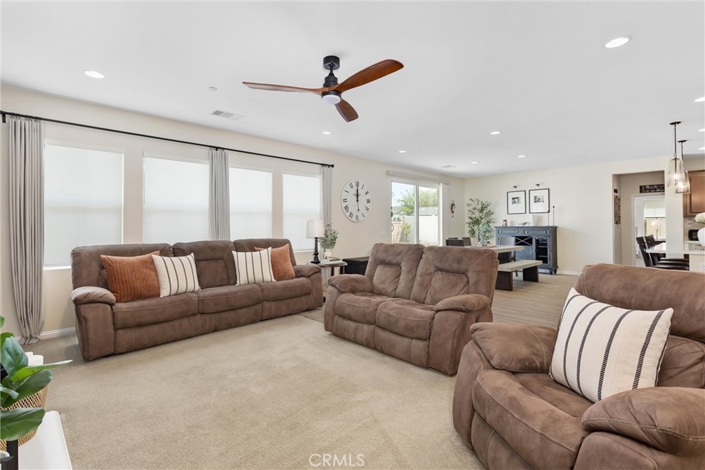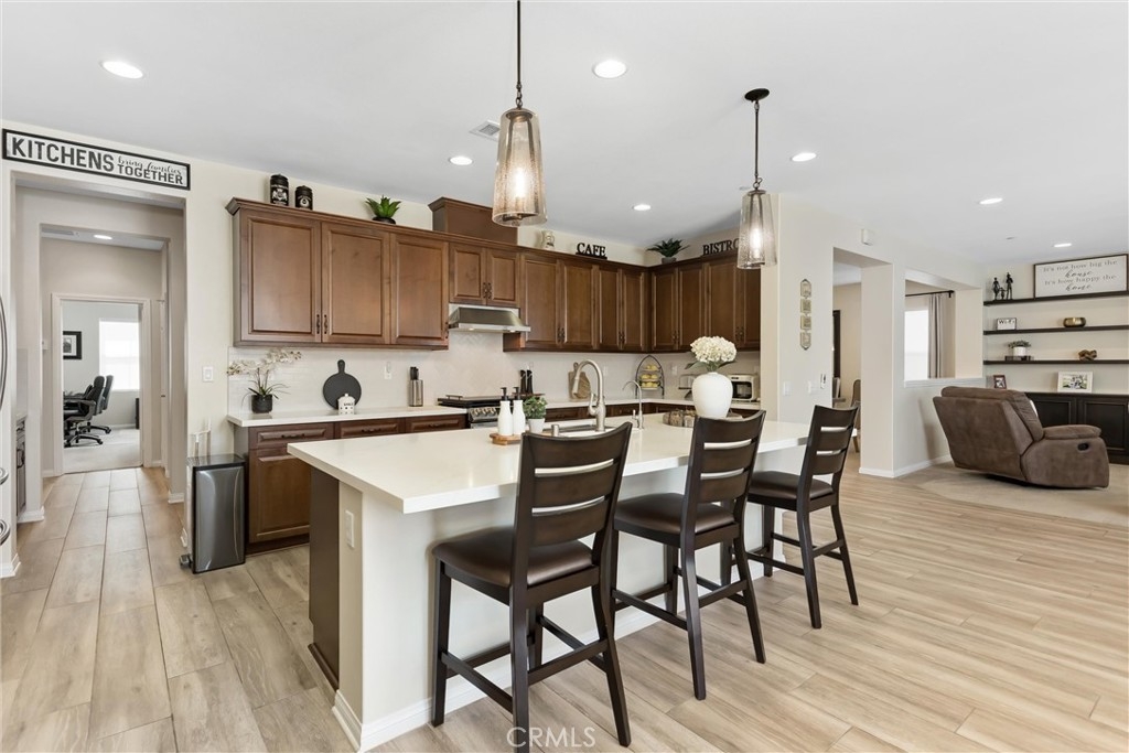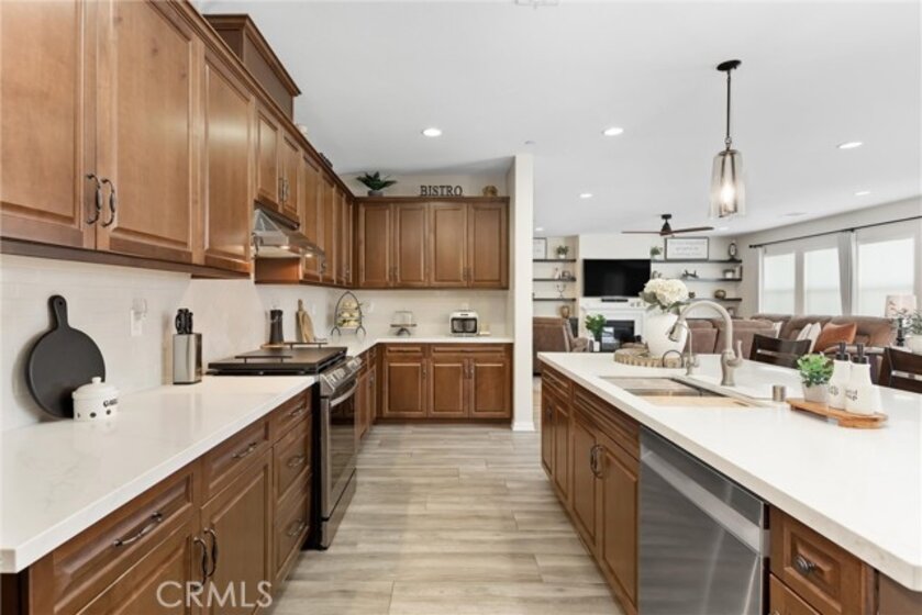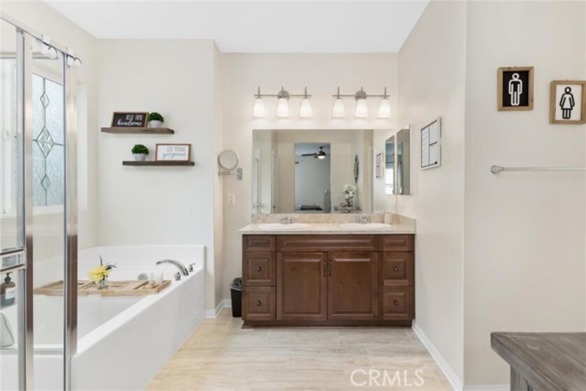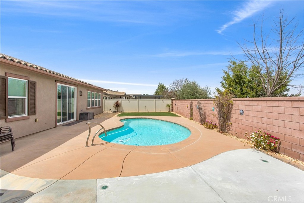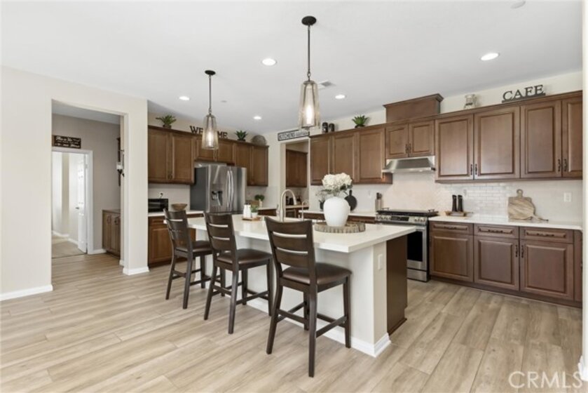 Better than new in Mahogany Hills, this single-story POOL home is the definition of model-perfect living. Immaculate, thoughtfully upgraded, and maintained with exceptional care, it offers a level of quality and presentation rarely found on the market. From the moment you arrive, the elegant front entry and striking custom door set an elevated tone. Inside, an open and airy layout unfolds—enhanced by upgraded tile flooring, 9-foot ceilings, and abundant natural light that accentuates the home’s seamless flow. Just off the foyer, a private en-suite bedroom with custom closet cabinetry provides an ideal retreat for guests or multi-generational living. A formal dining room sits adjacent, perfectly positioned for effortless entertaining. The heart of the home is the expansive family room, anchored by beautifully crafted built-in bookshelves and an entertainment center. This space opens seamlessly to the oversized kitchen and casual dining area, creating a true great-room experience. Designed for both style and function, the kitchen features a generous center island, extensive cabinetry, abundant counter space, a premium appliance package, and a butler’s pantry with wine fridge. A sliding door off the dining area extends the living space outdoors, enhancing the home’s indoor-outdoor lifestyle. Privately tucked away, the primary suite offers a serene escape—featuring a spacious walk-in closet with custom cabinetry and a beautifully finished bath. Three additional bedrooms are thoughtfully separated, providing comfort and flexibility for family or guests. A versatile office includes a custom built-in Murphy bed, ideal for work-from-home living or guest accommodations. Energy-efficient upgrades include leased solar, a tankless water heater, and a Puronics water filtration system. Step outside to the backyard that truly sets this home apart—a private pool, an exceptionally rare find in a single-story home within this community. Designed for relaxation and entertaining, the outdoor space features newly completed landscaping with premium $10K water-saving turf and a layout that encourages effortless indoor-outdoor enjoyment. Additional highlights include a 3-car tandem garage, offering valuable space for storage, a workshop, or extra parking. Located in the highly desirable Mahogany Hills community—known for its beautiful parks, miles of walking trails, mountain views, and low HOA fees—this home is not only move-in ready, it is truly exceptional in every way.