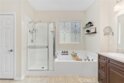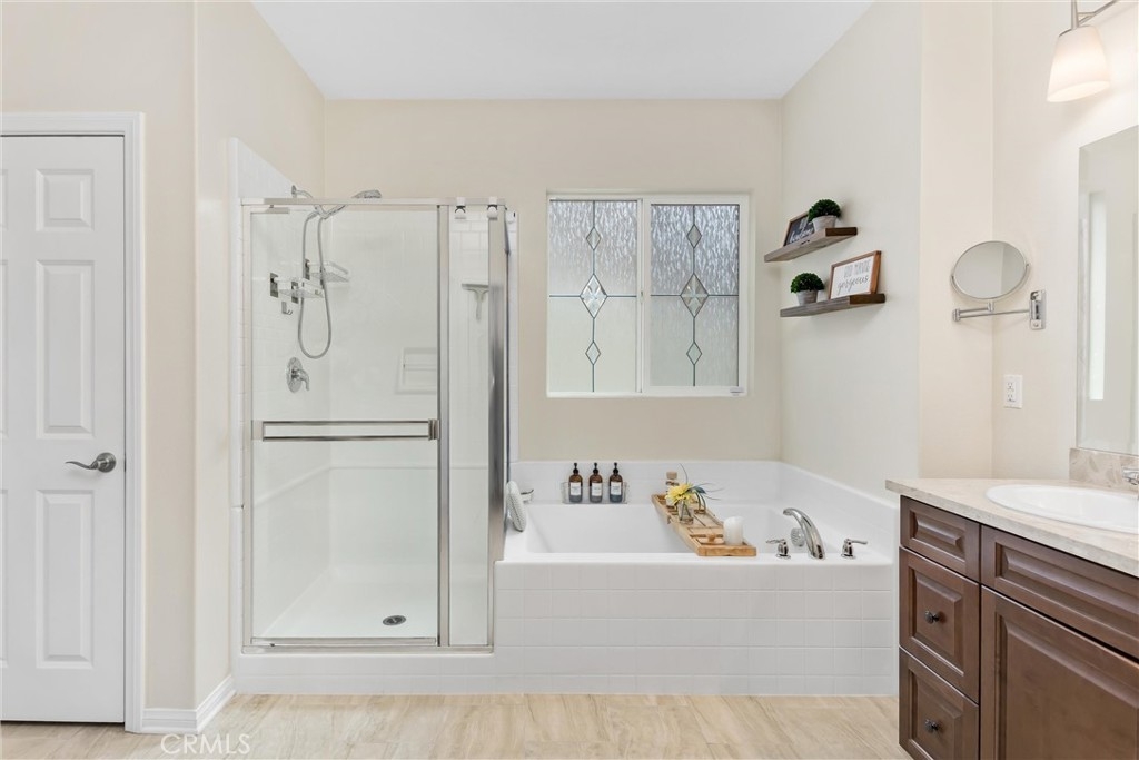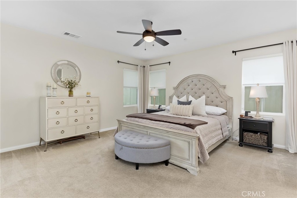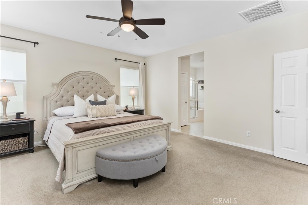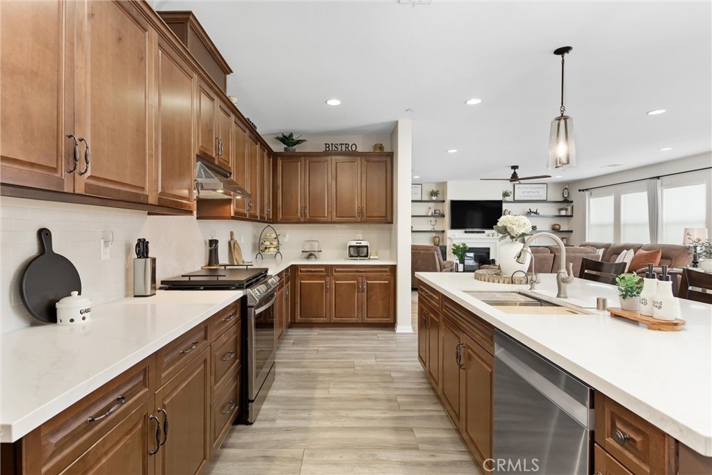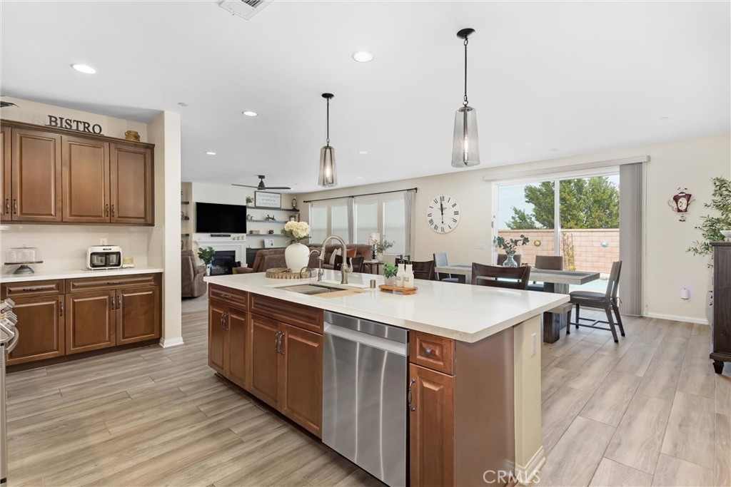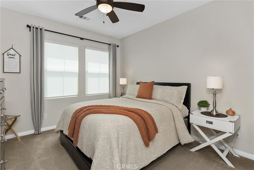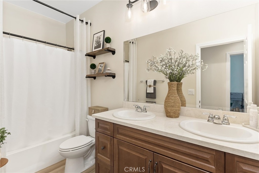 Better than new in Mahogany Hills, this single-story POOL home is the definition of model-perfect living. Immaculate, thoughtfully upgraded, and maintained with exceptional care, it offers a level of quality and presentation rarely found on the market. From the moment you arrive, the elegant front entry and striking custom door set an elevated tone. Inside, an open and airy layout unfolds—enhanced by upgraded tile flooring, 9-foot ceilings, and abundant natural light that accentuates the home’s seamless flow. Just off the foyer, a private en-suite bedroom with custom closet cabinetry provides an ideal retreat for guests or multi-generational living. A formal dining room sits adjacent, perfectly positioned for effortless entertaining. The heart of the home is the expansive family room, anchored by beautifully crafted built-in bookshelves and an entertainment center. This space opens seamlessly to the oversized kitchen and casual dining area, creating a true great-room experience. Designed for both style and function, the kitchen features a generous center island, extensive cabinetry, abundant counter space, a premium appliance package, and a butler’s pantry with wine fridge. A sliding door off the dining area extends the living space outdoors, enhancing the home’s indoor-outdoor lifestyle. Privately tucked away, the primary suite offers a serene escape—featuring a spacious walk-in closet with custom cabinetry and a beautifully finished bath. Three additional bedrooms are thoughtfully separated, providing comfort and flexibility for family or guests. A versatile office includes a custom built-in Murphy bed, ideal for work-from-home living or guest accommodations. Energy-efficient upgrades include leased solar, a tankless water heater, and a Puronics water filtration system. Step outside to the backyard that truly sets this home apart—a private pool, an exceptionally rare find in a single-story home within this community. Designed for relaxation and entertaining, the outdoor space features newly completed landscaping with premium $10K water-saving turf and a layout that encourages effortless indoor-outdoor enjoyment. Additional highlights include a 3-car tandem garage, offering valuable space for storage, a workshop, or extra parking. Located in the highly desirable Mahogany Hills community—known for its beautiful parks, miles of walking trails, mountain views, and low HOA fees—this home is not only move-in ready, it is truly exceptional in every way.