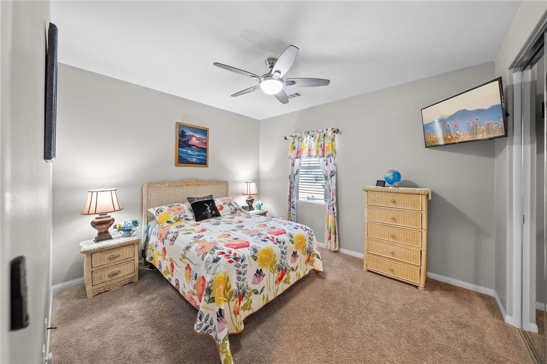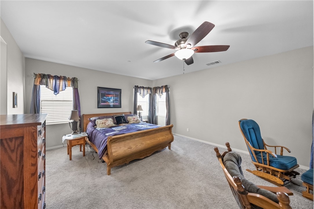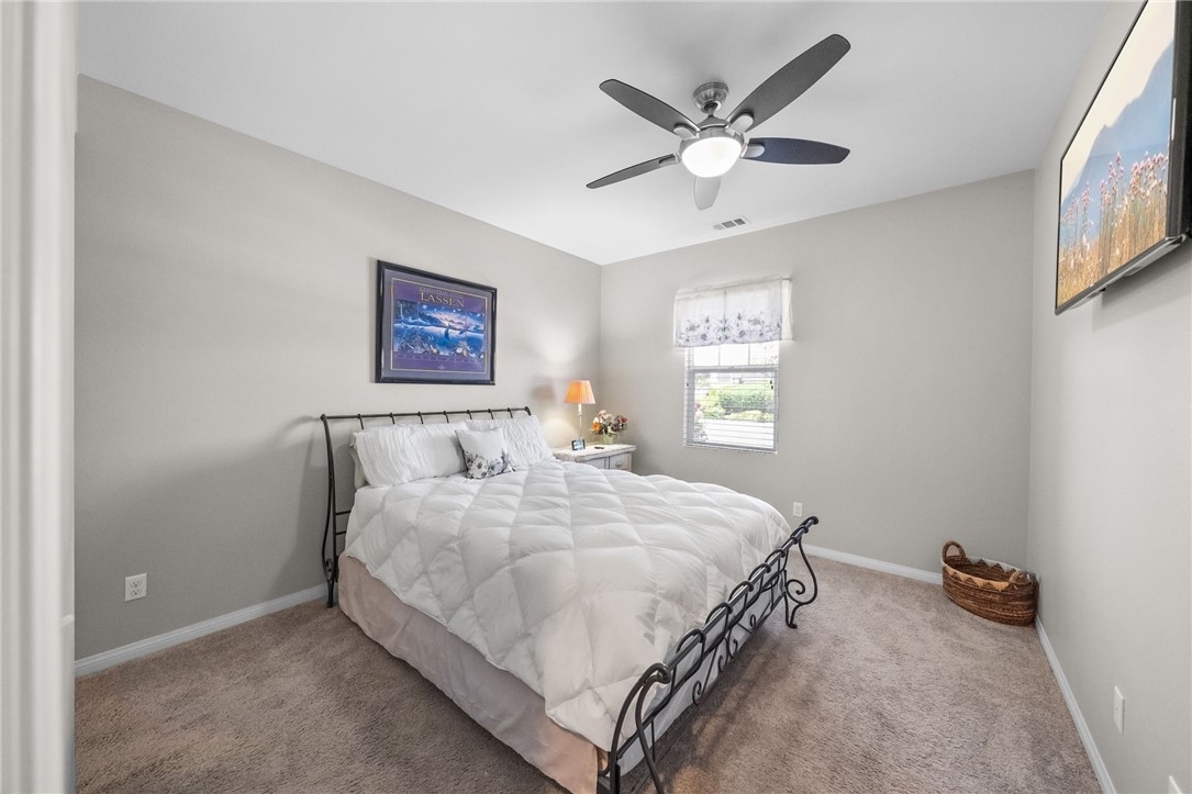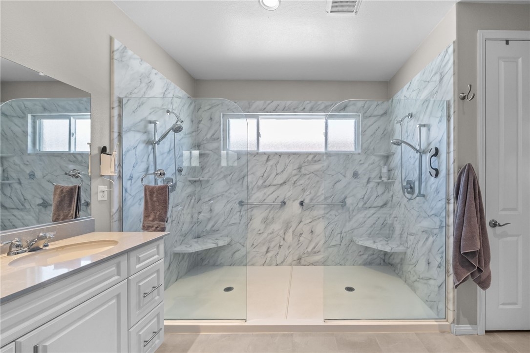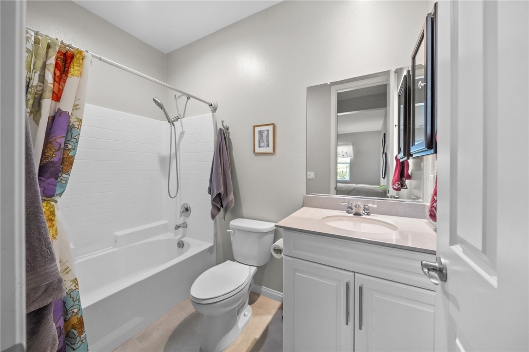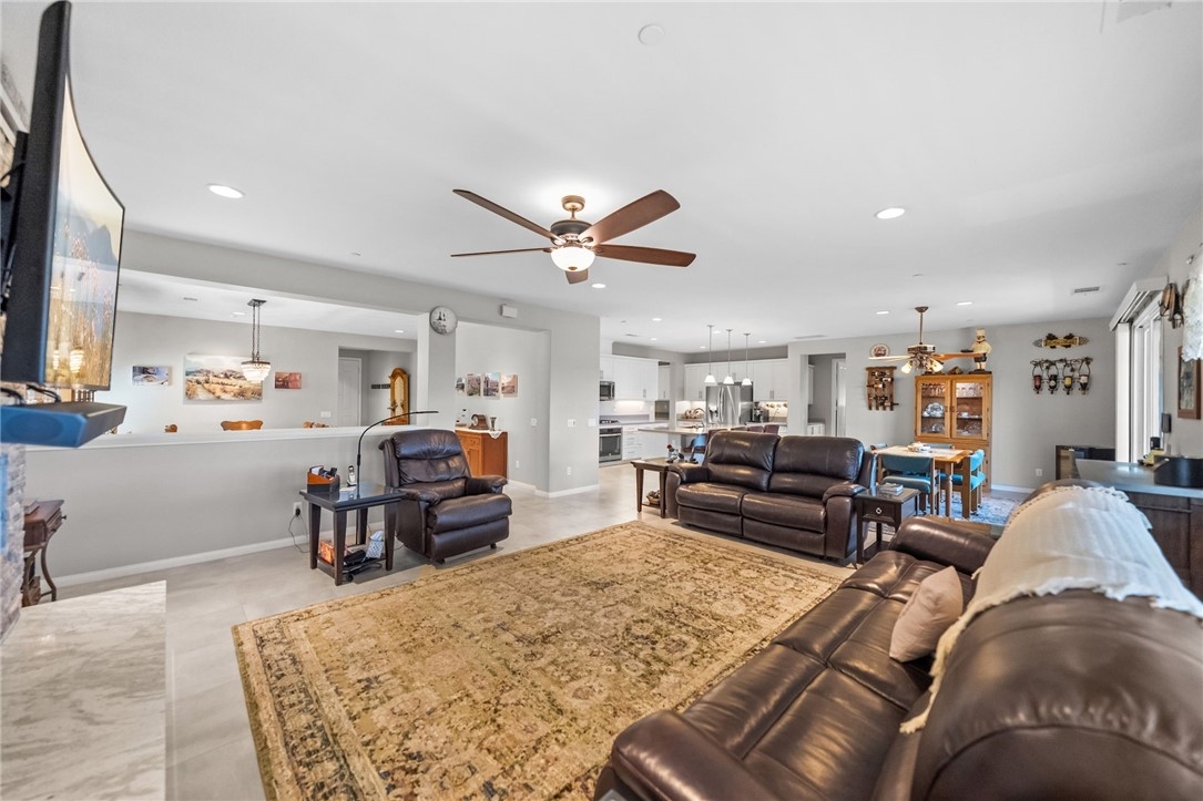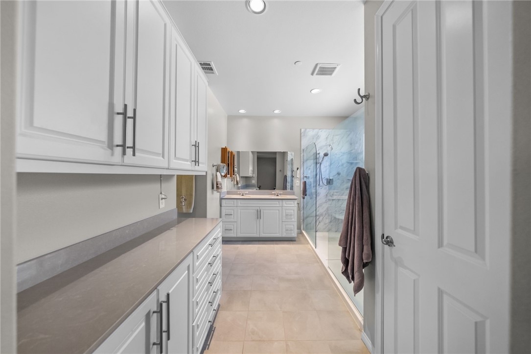 PRICE IMPROVEMENT! Beautifully upgraded Craftsman-style home, offering effortless single-story living with modern touches throughout. PAID SOLAR! The stunning front yard features a wide walkway, low-maintenance artificial turf, ambient lighting, and a spacious front porch complete with a motorized shade—perfect for relaxing outdoors. Step inside to discover elegant 18" neutral porcelain tile flooring and a thoughtful layout that begins with a junior suite upfront, complete with its own private bath—ideal for guests or multigenerational living. The large formal dining room is adorned with a fabulous chandelier, creating the perfect space for entertaining. The spacious family room boasts a custom-designed stacked stone fireplace with a color-changing horizontal gas insert and a cozy hearth you can gather around. The open-concept layout flows seamlessly into the expansive kitchen and additional sitting/dining area. The kitchen is a chef’s dream, featuring upgraded cabinetry, stainless steel appliances, a stainless farmhouse sink, quartz countertops, and an abundance of storage. You'll love the walk-in pantry, butler’s area, and dedicated space for your own coffee bar. Retreat to the luxurious primary suite with a private sitting area. The fully remodeled en-suite bathroom includes dual walk-in dual showers, dual sinks, additional cabinetry, LED lighting, a linen closet, and a spacious walk-in closet. The additional bedrooms are generously sized, one of which is currently being used as a home office. A secondary bathroom offers dual sinks, perfect for sharing. All bedrooms are equipped with ceiling fans, and the family room boasts a massive 72-inch ceiling fan for added comfort. Laundry is a breeze in the dedicated laundry room featuring built-in cabinets, a deep sink, and ample space for sorting and folding. Step outside to your entertainer’s dream backyard, with panoramic views of Big Bear and the Idyllwild Mountains. The backyard includes a built-in BBQ with searing station, a two-burner cooktop, an island, and artificial grass for low-maintenance living. The full-length AlumaWood patio cover is enhanced by remote-controlled custom shades—including side panels for added privacy. The oversized tandem 2-car garage offers additional storage space and features a tankless water heater. Enjoy life in this vibrant and growing community with nearby parks, award-winning schools, easy freeway access, and plenty of shopping and dining options.