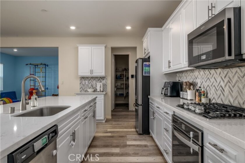Welcome to 30538 Oasis Rd, located in the highly sought-after Spencer’s Crossing community. This beautifully upgraded 5-bedroom, 3-full-bath home offers a flexible and thoughtfully designed floor plan, including a bedroom and full bath on the main level—ideal for guests or multigenerational living. The open-concept layout is highlighted by upgraded flooring, recessed lighting, and an elegant stair railing that adds a modern touch. The kitchen serves as the heart of the home, designed for both everyday living and entertaining, and features quartz countertops, stainless steel appliances, an upgraded backsplash, soft-close cabinetry, and a walk-in pantry. Expansive accordion doors open the entire back wall to a large backyard with an extended patio, creating a seamless indoor-outdoor California living experience. Upstairs, spacious bedrooms with walk-in closets and a versatile loft provide comfort and flexibility. Every room offers upgraded finishes, Including quarts countertops with dual sinks in the bathrooms, tying together the home’s cohesive and elevated design. Located just minutes from Spencer’s Crossing’s resort-style amenities, residents enjoy access to multiple pools, parks, playgrounds, sports courts, scenic walking trails, and year-round community events, all conveniently close to top-rated schools, shopping, and dining. This home truly offers the perfect blend of comfort, style, and community living. Come check it out! Schedule a private showing today!