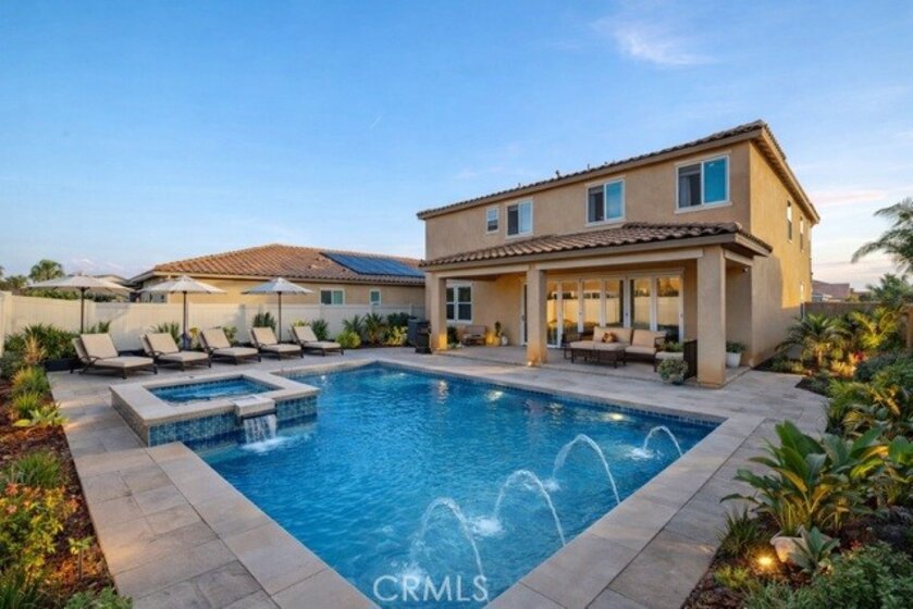 Welcome to 30538 Oasis Rd, located in the highly sought-after Spencer’s Crossing community. This beautifully upgraded 5-bedroom, 3-full-bath home offers a flexible and thoughtfully designed floor plan, including a bedroom and full bath on the main level—ideal for guests or multigenerational living. The open-concept layout is highlighted by upgraded flooring, recessed lighting, and an elegant stair railing that adds a modern touch. The kitchen serves as the heart of the home, designed for both everyday living and entertaining, and features quartz countertops, stainless steel appliances, an upgraded backsplash, soft-close cabinetry, and a walk-in pantry. Expansive accordion doors open the entire back wall to a large pool size backyard with an extended patio, creating a seamless indoor-outdoor California living experience. Upstairs, spacious bedrooms with walk-in closets and a versatile loft provide comfort and flexibility. Every room offers upgraded finishes, Including quarts countertops with dual sinks in the bathrooms, tying together the home’s cohesive and elevated design. Located just minutes from Spencer’s Crossing’s resort-style amenities, residents enjoy access to multiple pools, parks, playgrounds, sports courts, scenic walking trails, and year-round community events, all conveniently close to top-rated schools, shopping, and dining. This home truly offers the perfect blend of comfort, style, and community living. Come check it out! Motivated sellers, open to offers! Schedule a private showing today!