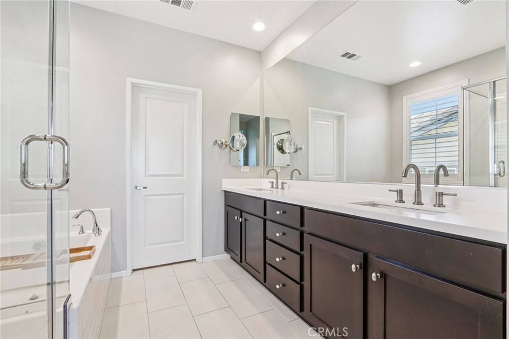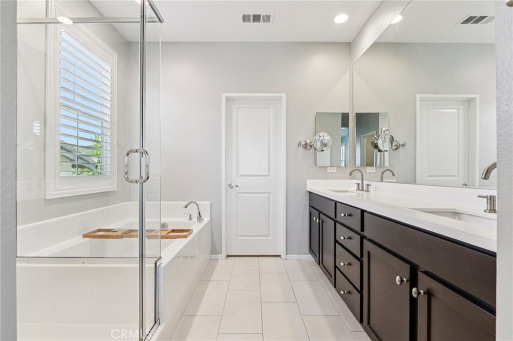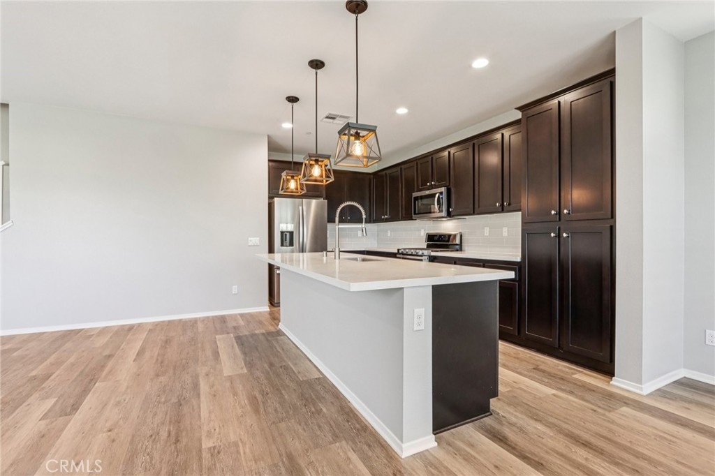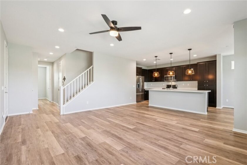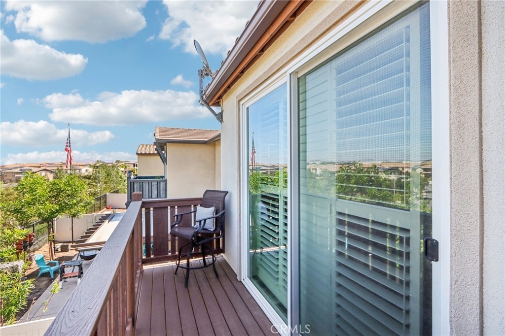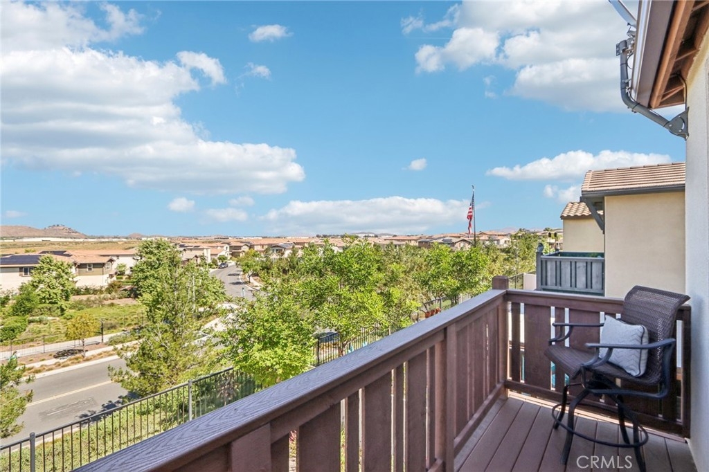 CUL-DE-SAC, TURNKEY, VIEW HOME, IN HIGHLY SOUGHT OUT TVUSD! Stunning view home in the desirable Calistoga community at Promontory in Murrieta. This 3-bedroom, 2.5-bath residence offers over 2,000 sq ft of living space with beautiful valley and sunset views. The home features Spanish-style curb appeal, drought-tolerant landscaping, and a private side entry. Inside, the open layout includes a spacious great room and family room with large windows that capture the scenic views. Interior finishes include luxury vinyl plank flooring, porcelain tile, and custom window treatments throughout. The kitchen offers maple shaker cabinetry, quartz countertops, a large island, subway tile backsplash, Whirlpool appliances, and ample counter space, along with a dining nook overlooking the backyard. The spacious primary suite offers peaceful views and features dual closets for ample storage and a spa-like ensuite bathroom, creating a relaxing private retreat. Exit outside to nearly 1,000 sq ft of outdoor living space with a stamped and stained concrete patio and Alumawood patio cover—perfect for relaxing while enjoying valley views and sunsets. The community offers over 5 acres of private parks and more than 100 acres of surrounding open space with Tucalota Creek, plus nearby hiking and biking trails. Located within the highly rated Temecula Valley school district.
