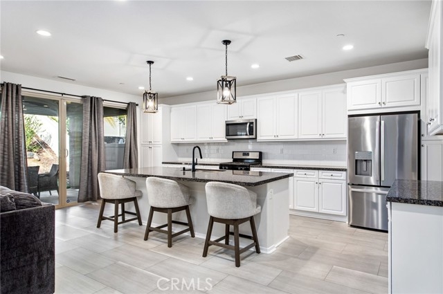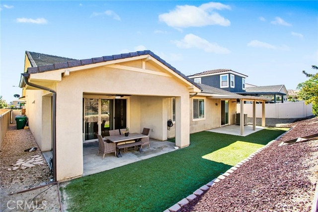 This impressive 4 bedroom Single-Story residence perfectly combines modern comfort, energy efficiency, and timeless style. Featuring PAID SOLAR with 17 panels, this home offers lasting savings and sustainability for years to come. Step inside and experience the ideal open-concept layout, designed for both relaxation and entertaining. The spacious kitchen is a chef’s delight with an oversized island, granite countertops, abundant cabinetry, and a walk-in pantry. Enjoy seamless flow into the inviting great room featuring a cozy gas fireplace and elegant vinyl wood plank flooring throughout. Additional highlights include a tankless water heater, dual thermostats, ceiling fans, recessed lighting, and an extra-large laundry room—all designed for effortless living. The three-car tandem garage provides plenty of storage and flexibility for your lifestyle. Step outside to a private oasis showcasing a California room with a ceiling fan and low-maintenance turf. A second covered patio off the primary suite offers a tranquil retreat to enjoy morning coffee or peaceful evenings outdoors. Living in Spencer’s Crossing means access to an incredible array of resort-style amenities—three sparkling pools, children’s splash zones, BBQ areas, playgrounds, sports fields, dog parks, scenic trails, and more. This home has been meticulously maintained and truly checks every box—beautiful design, functional space, and a vibrant community. Don’t miss your opportunity to make this one yours!