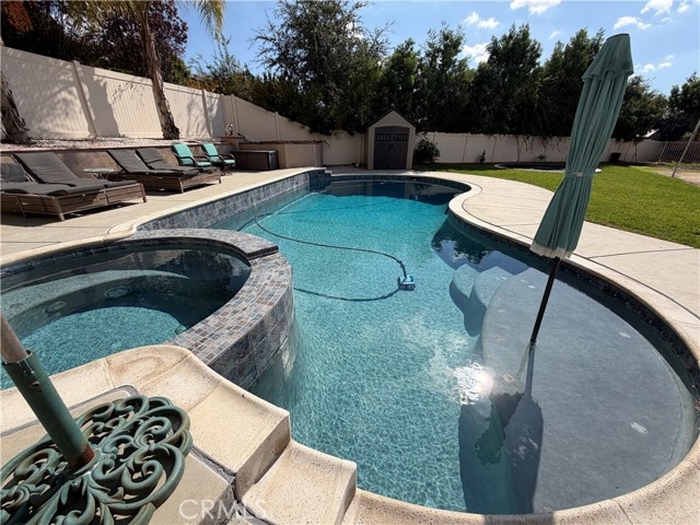 Entertainers Dream Home in the desirable Spencer's Crossing Community and sitting on a 14,375sqft lot, this wonderful 2,798-square-foot home offers the perfect blend for family fun and leisure. With four spacious bedrooms and three full bathrooms, the home is designed for comfort and entertaining. The expansive lot is a private paradise, featuring a sparkling pool and bubbling jacuzzi for ultimate relaxation. Outdoor enthusiasts will love the volleyball court, in ground trampoline, tetherball and sand lot, ideal for sun-soaked afternoons with friends and family. As the sun sets, gather around the cozy fire pit or whip up a gourmet meal in the outdoor kitchen—an entertainer’s dream. This spacious, single story home offers an open floor plan, with a large family kitchen, large island with seating area, and a large pantry. The Master Bedroom has private backyard access, ensuite master bathroom, and a large walk in closet. The three additional bedrooms all have walk in closets. In addition this home offers a large laundry room, tons of storage space, 3 car garage, enclosed dog area, and more!! In close proximity to vineyards and golden hills, shopping and dining, casinos and more, this property is a serene escape with every amenity imaginable.