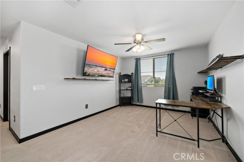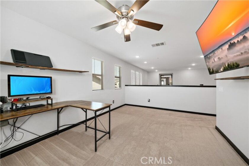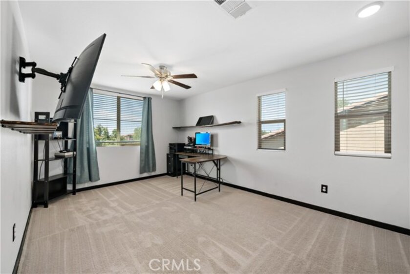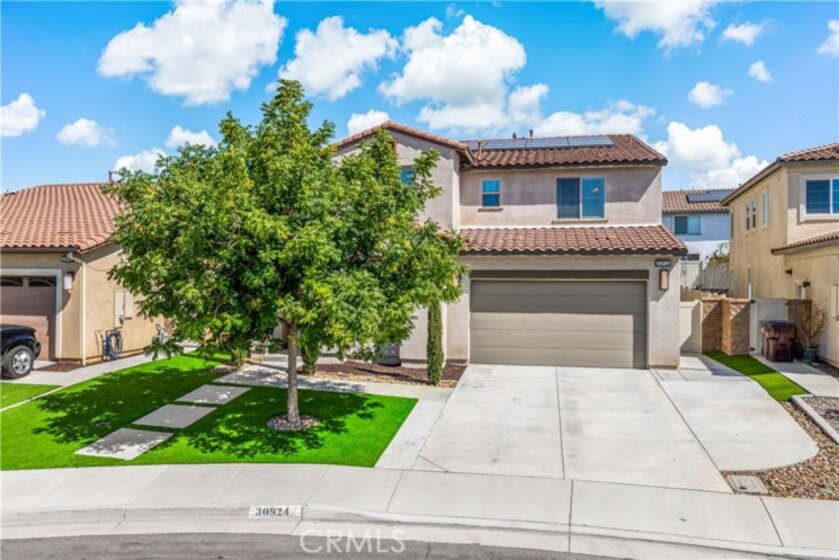 Welcome Home to 30924 Falling Star Place, featuring 4 bedrooms, 3 full bathrooms and a floorplan with approx. 2884 sq. ft! As you enter up the concrete steps and walkway, you’ll enjoy the pristine landscaping and cozy front porch. Upon entering you'll be WOWED with the STUNNING staircase. To the right is the downstairs bedroom and full bath perfect for an in-law or guest. This Great Room is fit to impress! Dreamy Kitchen with Espresso cabinets and Quartz countertops. Large Kitchen Island offers plenty of room for seating. Sparkling SS appliances and sink make this kitchen a great space to cook and entertain with all the finishes you want. The transitional area to the family room offers a large enough space for a good-sized dining table and opens up to the Family Room w/ ceiling fan and plenty of space and options to configure your furnishings the way you choose! Cozy up to the inviting fireplace. Let's head up to the 2nd floor where you will find a spacious Primary Suite w/ 2 walk-in closets. Primary Bathroom offers dual vanities, deep soaking tub and walk-in shower. Down the hall you'll find 2 more bedrooms, a full bathroom, laundry room w/ built-in storage and a LARGE LOFT!! Head back downstairs and out your sliding glass door to a lovely "California Room" covered patio w/ recessed lighting. A great space for outdoor dining! Enjoy a drought tolerant and low maintenance backyard with turf, planter and concrete walkways! Some notable features are ceiling fans throughout, tankless water heater, water softener and reverse osmosis system, Quietcool Whole House Fan and SOLAR! Zoned for the top-rated Liberty High School and the K-8th Harvest Hill Steam Academy. Spencer's Crossing is an amenity rich community w/ 3 pools, a tot pool, and tons of resort style amenities. Walking distance to the Oasis Pools and community trails and Victory Park. Minutes from Temecula Wine Country!!