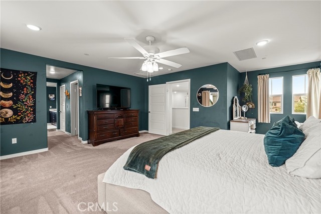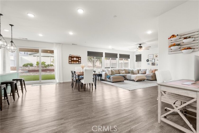 Stunning upgraded home in the highly sought-after Spencer’s Crossing community! This beautifully maintained residence features a downstairs bedroom and full bath, perfect for guests, in-laws, or a private home office. Inside, you’ll find upgraded flooring, designer blackout curtains, and a bright open-concept layout ideal for everyday living. The home also includes a whole-house water softener and two whole-house fans for improved comfort and energy efficiency. The backyard is your own private retreat with premium turf in front and back and a luxurious oversized spa—perfect for relaxing or entertaining. Located in Spencer’s Crossing, you’ll enjoy access to incredible community amenities including multiple pools, clubhouse, sports parks, playgrounds, walking trails, and year-round community events. Move-in ready, highly upgraded, and located in one of Murrieta’s top master-planned communities—this is a must-see!