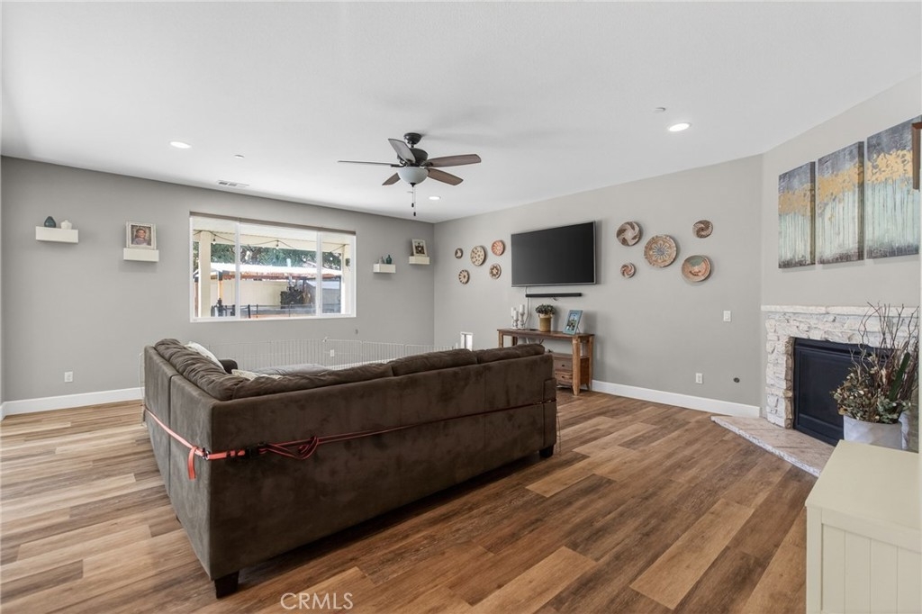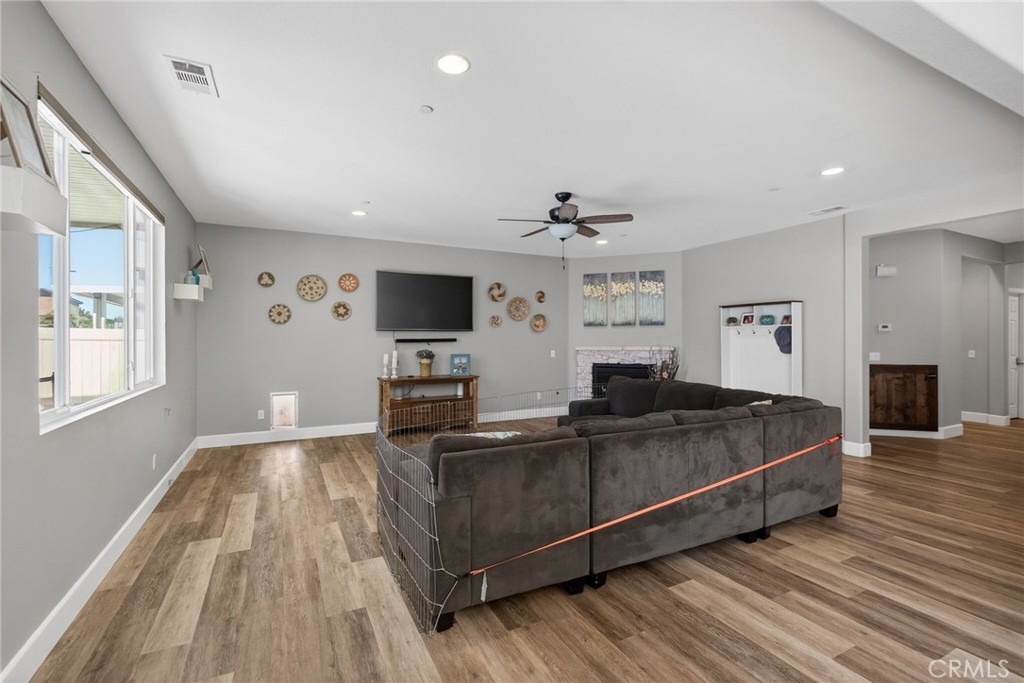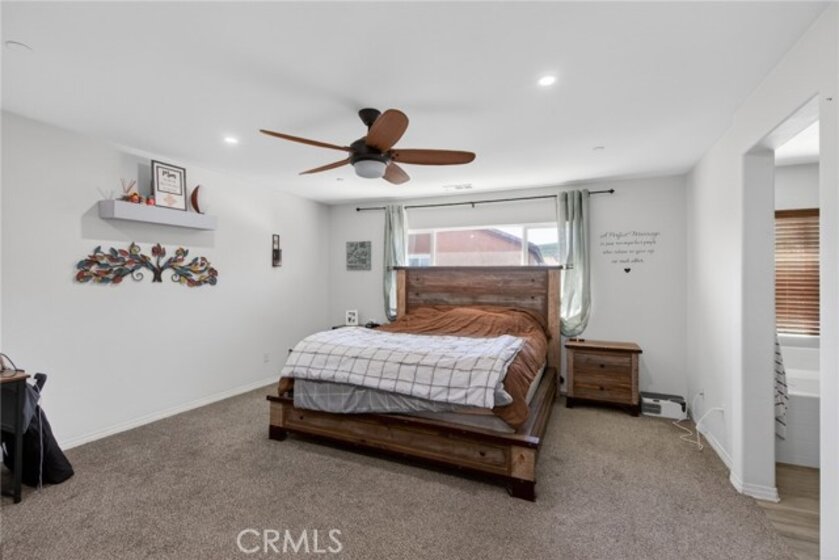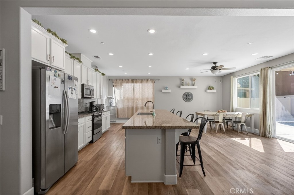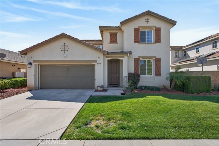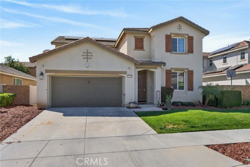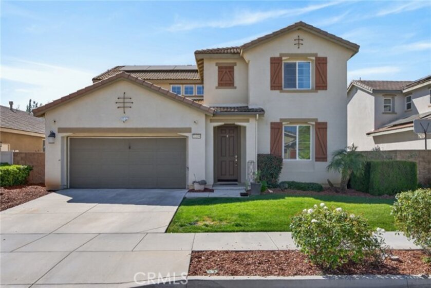 Beautiful turnkey 5-bedroom, 3-bath home with an ideal floor plan including a full bedroom and bathroom downstairs—perfect for guests, multi-generational living, or a home office. The heart of the home is the spacious open kitchen that flows seamlessly into the living and dining areas, creating a bright and welcoming space for everyday living and entertaining. Pride of ownership shows throughout this well-cared-for home. Step outside to your private backyard oasis featuring a newer pool and spa, along with a built-in BBQ island and smoker—an ideal setup for relaxing weekends and hosting friends and family. Additional highlights include an oversized 2-car garage, solar system to be paid off in escrow, and a low HOA. Move-in ready and thoughtfully maintained, this home offers comfort, functionality, and great mojo all in one. A rare opportunity to own a home that truly has it all.