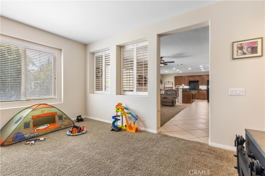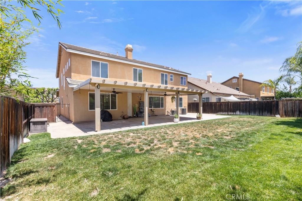 Welcome to Your Dream Home! This stunning two-story ranch-style home boasts a dramatic façade, oversized driveway, and charming front porch that immediately says “welcome home.” With 5 potential bedrooms, 2.5 bathrooms, and over 3,400 square feet of beautifully maintained living space, this property checks all the boxes. Step into a grand formal living and dining room with updated lighting and plenty of natural light. The rear of the home opens into a spacious family room with a cozy fireplace, adjacent to a gourmet kitchen featuring granite counters, a large breakfast bar, quality appliances, walk-in pantry, and rich wood cabinetry—perfect for the home chef or entertainer. Downstairs includes a half bath, indoor laundry room with sink and storage, and a versatile den (currently used as a dining room) that can easily be enclosed as a 5th bedroom or home office. Upstairs, you’ll find a wide-open loft ready to become a game room, media space, or even another bedroom. The expansive primary suite includes a luxurious bath with dual sinks, soaking tub, separate shower, and a huge walk-in closet. Three more generously sized bedrooms and a double-sink bathroom complete the upper level. Step outside to your private backyard retreat—featuring a massive Alumawood patio cover with fans and lighting, lush landscaping, and plenty of room for a pool or outdoor entertaining. Located in a beautifully maintained neighborhood within the top-rated Temecula School District and just minutes from French Valley amenities, shopping, parks, and freeway access. This is one of the best opportunities in the area—don’t miss it!