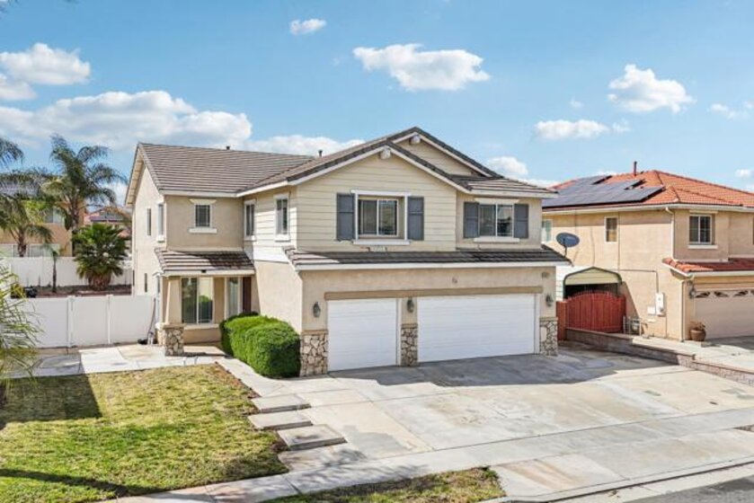 Welcome to Mapleton—where comfort, space, and everyday living come together beautifully. Tucked away on a quiet cul-de-sac, this expansive 5-bedroom, 3-bath residence invites you in with soaring ceilings, natural light, and a sense of warmth that immediately feels like home. Thoughtfully designed for both connection and privacy, the open-concept layout offers generous living spaces perfect for gathering, entertaining, and creating lasting memories. On the main level, a full bedroom and bath provide flexibility for guests or multi-generational living—an ideal blend of convenience and comfort. Upstairs, the home truly unfolds. A grand loft becomes the heart of the second level—perfect as a media room, play space, or private retreat. Surrounded by spacious secondary bedrooms, the layout leads you to a serene primary suite behind double doors. Here, you’ll find your own personal sanctuary, complete with a spa-inspired bath featuring a soaking tub, separate shower, dual vanities, and dual walk-in closets designed for effortless living. Step outside and imagine evenings under the expansive 40-foot Alumiwood patio cover, where indoor-outdoor living comes to life. The thoughtfully designed, low-maintenance yard offers both beauty and functionality, while the oversized side yard presents exciting possibilities—whether for RV parking, additional storage, or your own custom vision. Additional highlights include a 3-car garage and dual A/C systems for year-round comfort. More than just a home—this is where your next chapter begins. Welcome to Mapleton Living From soaring ceilings to expansive living spaces, this 5-bedroom home was designed for both everyday comfort and unforgettable gatherings. Relax in your private primary suite, entertain under your covered patio, and enjoy the peaceful charm of cul-de-sac living—all with no HOA. This is the lifestyle you’ve been waiting for.