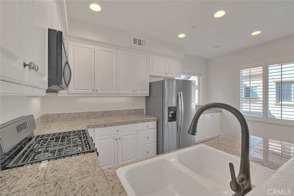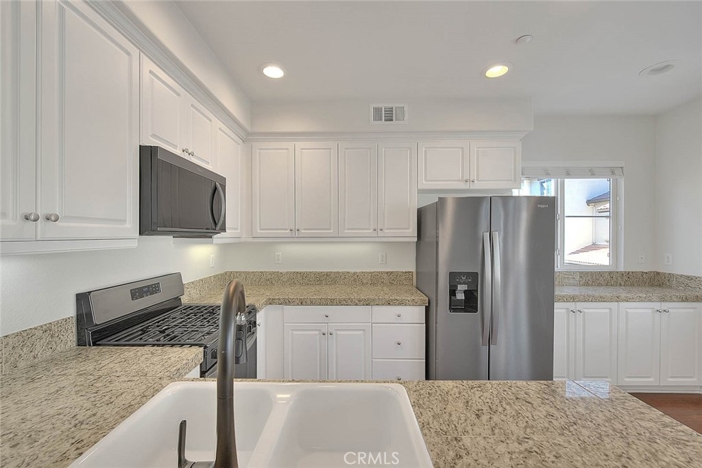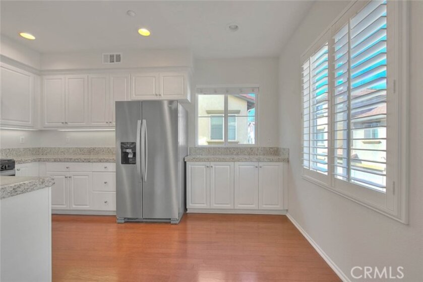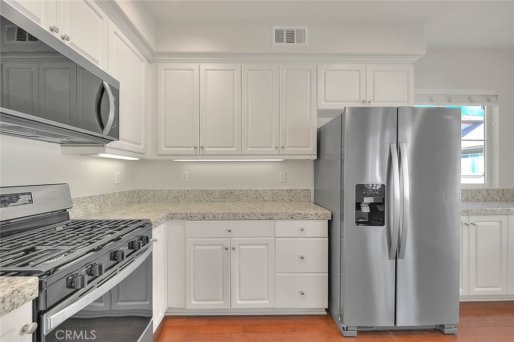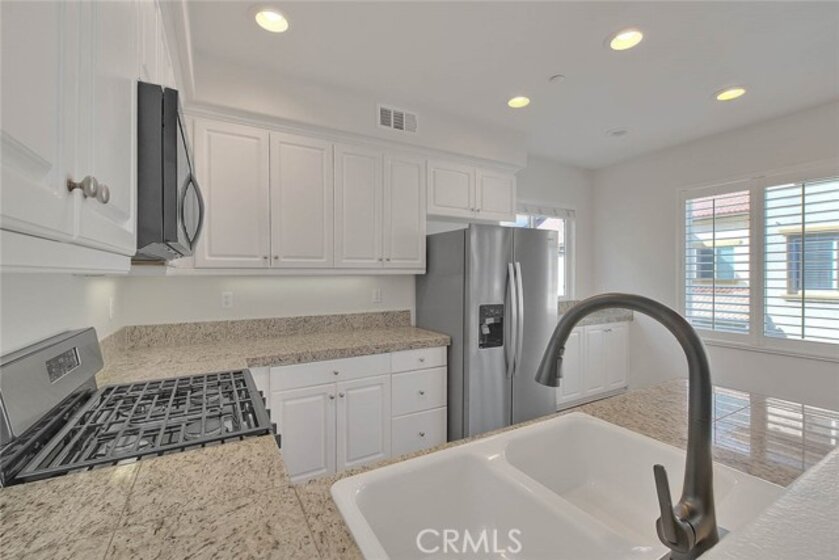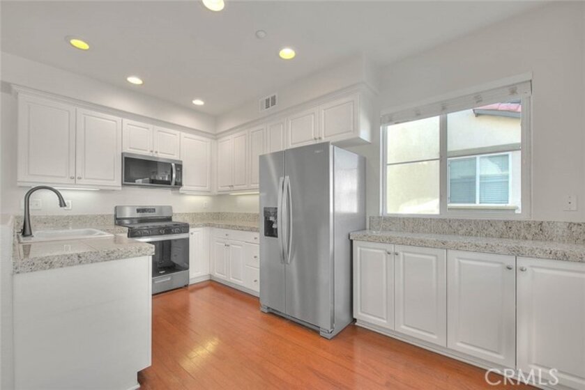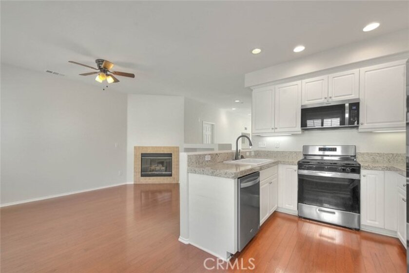 Welcome to this beautiful 3 bedrooms and 2.5 baths end unit tri-level townhouse in the Willow Haven Gated Community. Murrieta East area. Open and spacious floorplan with 1814 sq feet living space. Formal Living and Dining Rooms. Natural light floods the living room with 18-foot ceilings. The family Room with a fireplace and wood flooring opens to the Kitchen with granite counters. Enjoy the gas range, built-in microwave oven, dishwasher and stainless-steel refrigerator. Recessed lights and a small nook area with wood shutters. The upstairs hallway and bedrooms have brand new carpet and/or luxury vinyl wood-look flooring, installed July of 2024. The spacious primary bedroom has a ceiling fan and a luxury bathroom boasting a walk-in closet and twin vanities along with a separate tub and shower. Laundry upstairs with energy efficient WASHER/DRYER included. 2 Car Attached Garage with a direct interior access and automatic opener. Peek a boo mountain views. Brand new interior paint in 2026. There is a gated front courtyard, suitable for a small dog, barbecue, and table and chairs. Full home fire sprinkler system. Close to schools, shopping, and the 15 and 215 freeways - perfect for commuters. Water and trash, along with fire insurance is included! Community pool/spa and a playground for the little ones.