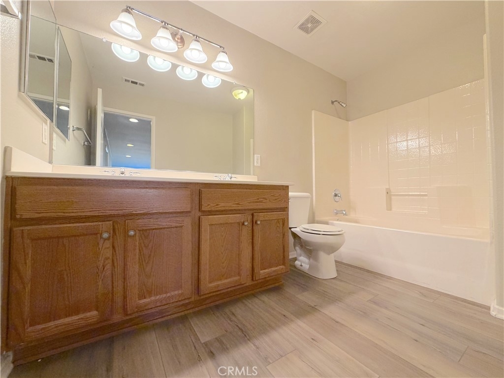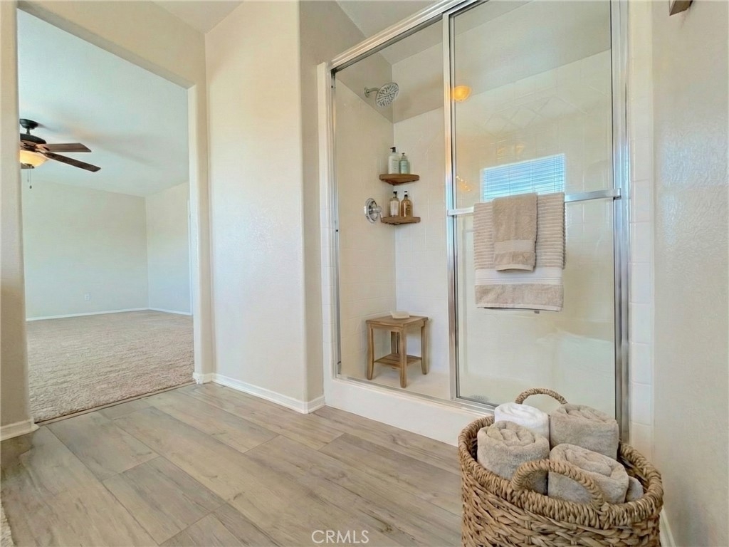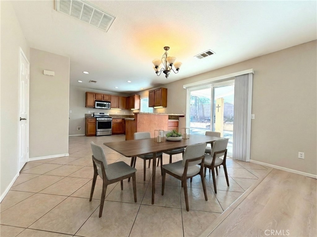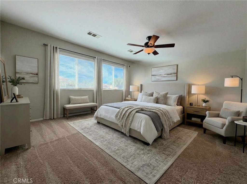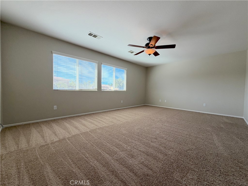 Welcome to this spacious and well-maintained two-story home offering 2,375 square feet of living space on a 6,089 square foot lot, with a bright, open floor plan and comfortable living areas throughout. The main living area features luxury vinyl plank flooring, neutral paint tones, and abundant natural light, creating a warm and inviting atmosphere. The open layout flows seamlessly into the dining area and gorgeous kitchen, making it ideal for both everyday living and entertaining. The kitchen is open to the great room and showcases granite countertops, stainless steel appliances, under-cabinet lighting, ample cabinetry, recessed lighting, and an extended countertop with bar seating. An indoor laundry room with a gas dryer hookup adds everyday convenience. Sliding glass doors lead to the backyard, enhancing indoor-outdoor living. Upstairs, you’ll find brand new carpet throughout, including generously sized bedrooms and a spacious loft, perfect for a second living area, home office, or playroom. The primary suite features plush new carpet, a ceiling fan, dual sinks, a large vanity, and a separate shower. Additional bedrooms are well-proportioned and filled with natural light. The backyard offers a custom Alumawood covered patio and concrete hardscape, creating a great space for outdoor dining, entertaining, or relaxing. Additional highlights include an attached two-car garage, central heating and air, and a functional layout designed for modern living. Conveniently located near schools, shopping, and commuter access, this move-in-ready home combines space, comfort, and value.