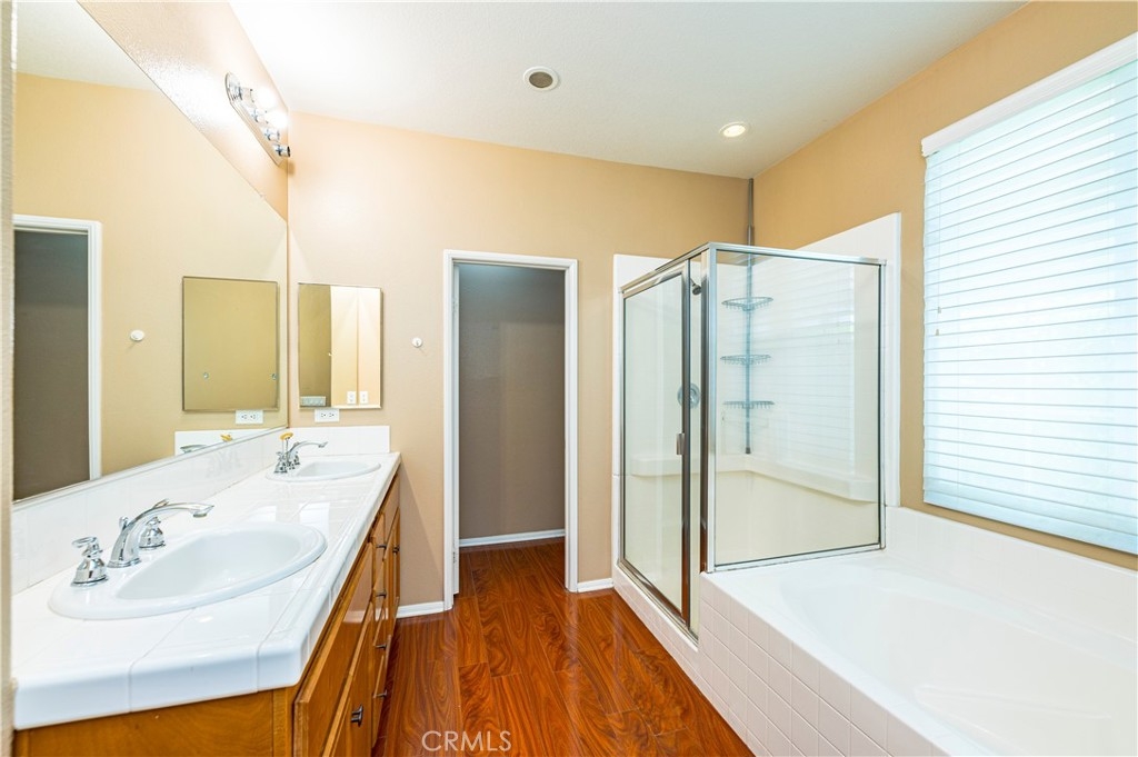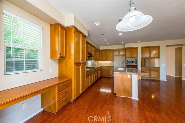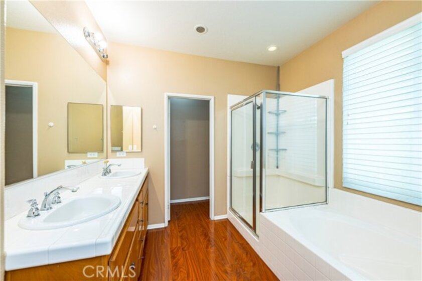 NEW PRICE!!!This home has 4 bedrooms and 3.5 bath rooms. Over 2600 Sq ft of living space. Walk in to the newer custom flooring. There is a guest bedroom and a full bath as soon as you enter to the right. There are really 2 master bedrooms or a master and a master jr. Both have attached full bathrooms. Walk down the hallway to the extra large formal living room and dining room. The next room is the huge kitchen with tons of cabinets and storage. It also has a built in desk. From the center island you will over look the family room. This home has enough room for the whole family. 3 car tandem garage. Very private backyard with no neighbors behind.