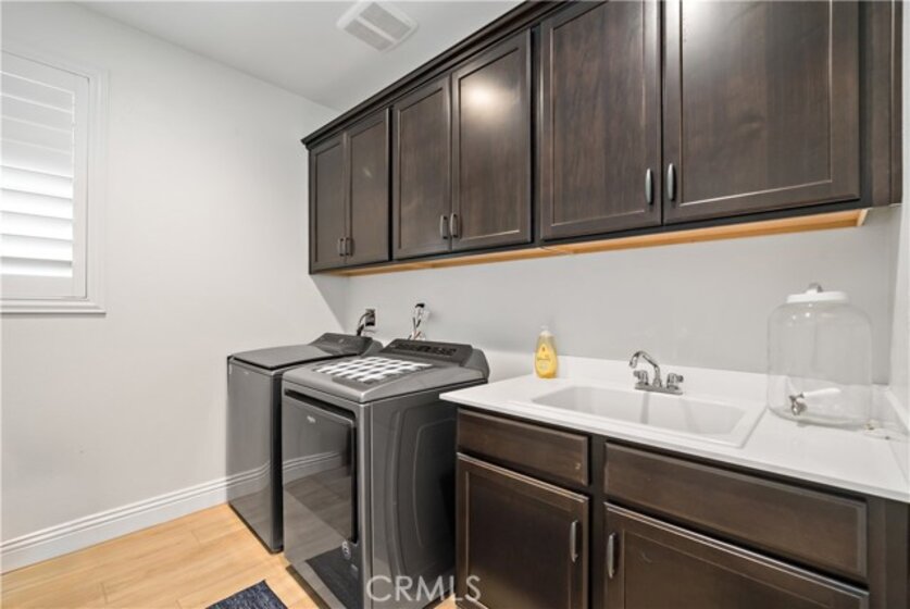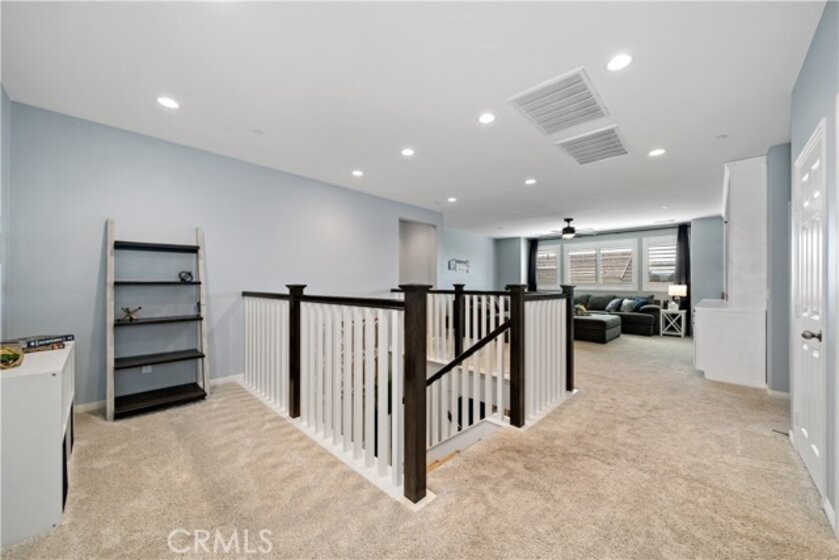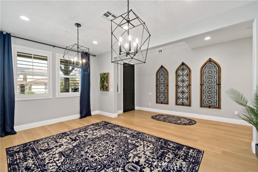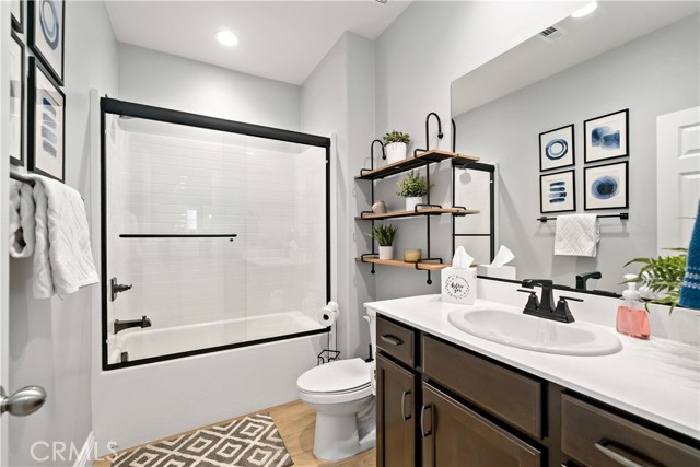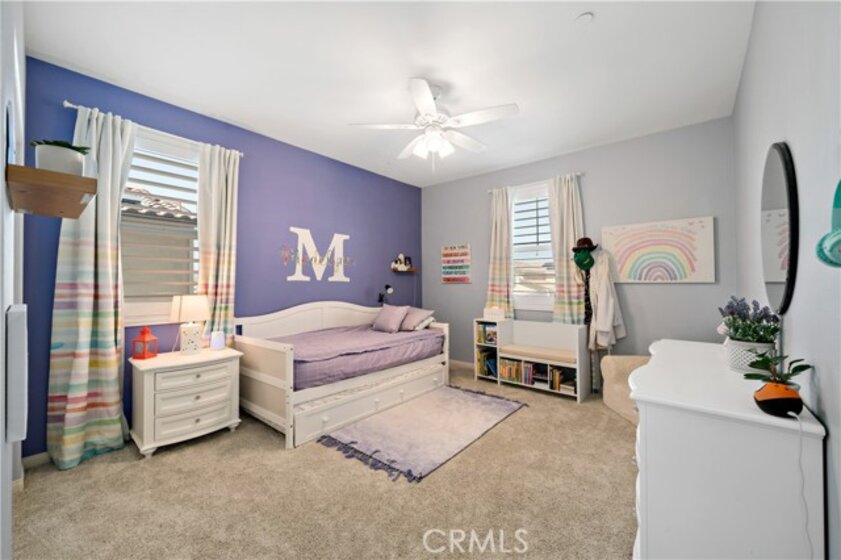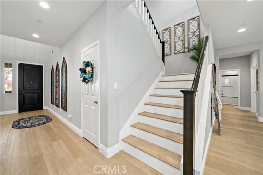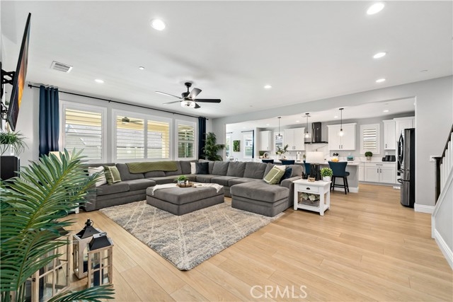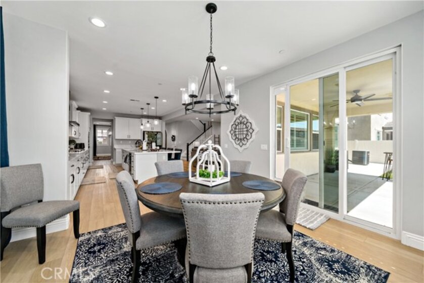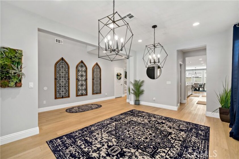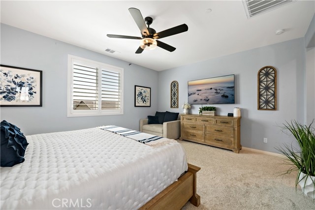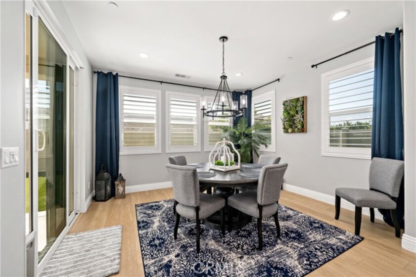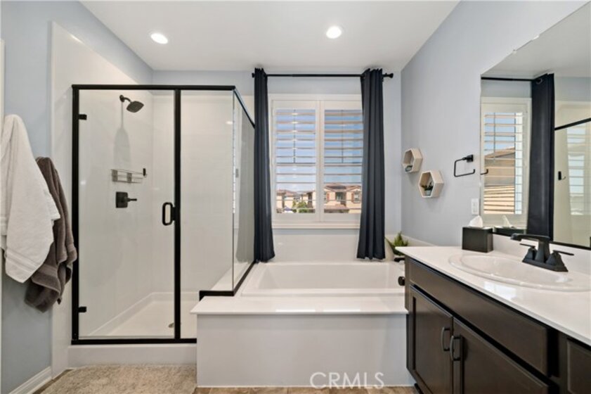 This MODEL Home is absolutely EXQUISTE!! Located in Murrieta's highly sought after and amenity rich Spencer's Crossing Community. This Richmond American Home features over 150K+ in modern, high-end upgrades! Offering 3688 sqft, 5 Bedrooms, 4 Full Bathrooms, a Loft, Owned Solar, Downstairs Bedroom and Full Bathroom and an upstairs Junior Suite! As you enter, you are lovingly greeted with inviting high-end LVP flooring, cool modern custom paint and all the designer features you desire. Off the entry is a Formal Dining Room large enough for all your favorite dining room furnishings. There is a walk-thru doorway to a Butler’s Pantry and MASSIVE walk-in pantry. Stunning Quartz countertops in this BEAUTIFUL Kitchen w/ Cafe Elite appliances, SS range hood, Shaker style cabinets w/ soft close features and pull-out shelving, and a 10-foot island with pendant lighting. Upgraded with the "Morning Room" which offers a lovely kitchen dining space. Off the morning room is a sliding glass door that leads to the outdoor California room complete w/ ceiling fan and recessed lighting. Notable water saving features in both the front and backyards are the high-end pet and kid friendly "cool" turf that won't get too hot on those toes and paws! Off the kitchen "Great Room" area is a very ROOMY and COZY Family Room w/ Fireplace! You will love all the natural light that filters in through the large windows and Plantation Shutters throughout. Stay cool inside w/ the energy saving costs you will receive with the owned Solar panels and ceiling fans all throughout! Downstairs is bedroom w/ built-in Murphy Bed and storage. A full bathroom sits adjacent to this 1st level bedroom along with a LARGE Laundry Room with a sink and built-in storage cabinets. You can access your 3-car garage here with epoxy flooring! Let's head upstairs where you will find upgraded carpet, a HUGE loft with built-in Entertainment Center complete w/ refrigerator! Behind that wall is the Junior Suite w/ its own private en-suite bathroom and walk-in closet. Down the hall are 2 more generously sized bedrooms and full bathroom! You will just love to unwind in the Primary Suite! What a great space for all your favorite furnishings! Walk-in Marble slab shower and tub surround. All the bathrooms are upgraded w/ matte black hardware and faucets that give it that luxe look we have come to LOVE! This Home is zoned for the Harvest Hill Steam Academy K-8 and the new Liberty High School. Minutes from Temecula Wine Country!!