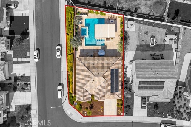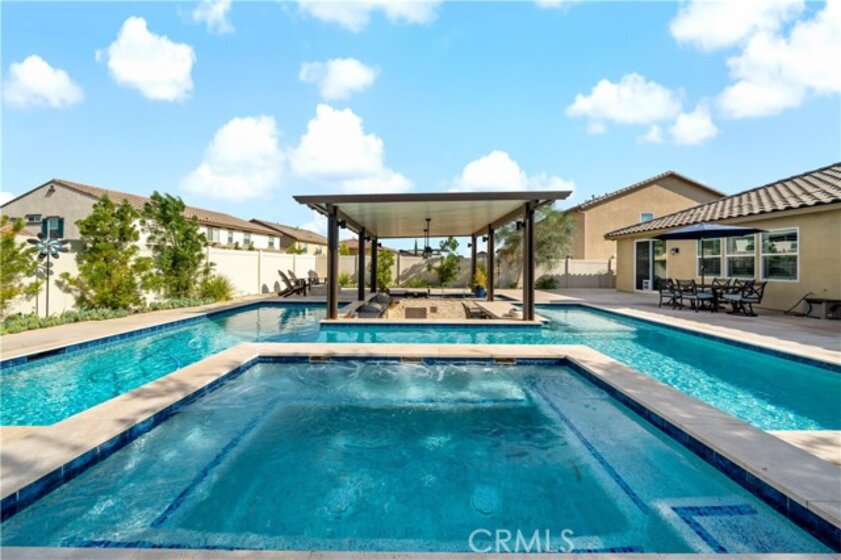 Stunning single story pool home in the popular Mahogany Hills community. You will know the moment you walk in that this is "The One" situated on a private corner lot on a cul-de-sac opening up to manicured trails. The floor plan is very open with a gourmet kitchen, great room. There is even an office/den that can easily be converted in a 4th bedroom. This meticulous home has lots of upgrades such as wood style tile plank floors, quartz counters, plantation shutters, oversized baseboards, and leased solar to help reduce your monthly energy bills. The kitchen is a "10" with a huge island with sit up bar, modern white cabinets with brushed nickel hardware, stainless steel appliances with new refrigerator it opens up into a great room where you will spend all your time enjoying this modern home until you step outside. The backyard speaks for itself, an entertainer's dream! Flawless pool with Pebbletec abalone shell/sea glass bottom for a smooth finish and easy on the feet, an extra large spa with stacked stone, water features, swim up bar with seating. You'll love to host and cook for friends and family in your amazing sunken outdoor kitchen complete with built in Bull BBQ, Griddle, Smoker, Santa Maria Spit BBQ, Burner Stove and Refrigerator the outdoor space includes granite countertops, additional seating, ceiling fans and is entirely covered with an Alumawood Pergola. End the evening around your gas fire pit. Located close proximity to park, elementary school, interstates, local wineries, shopping and dining. Do not miss the opportunity to see this Spectacular home!
