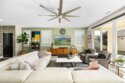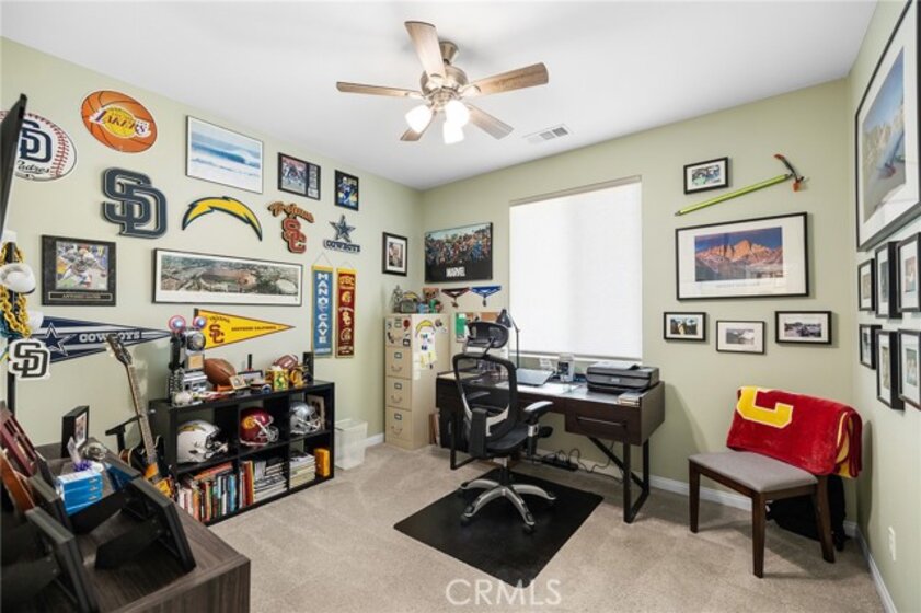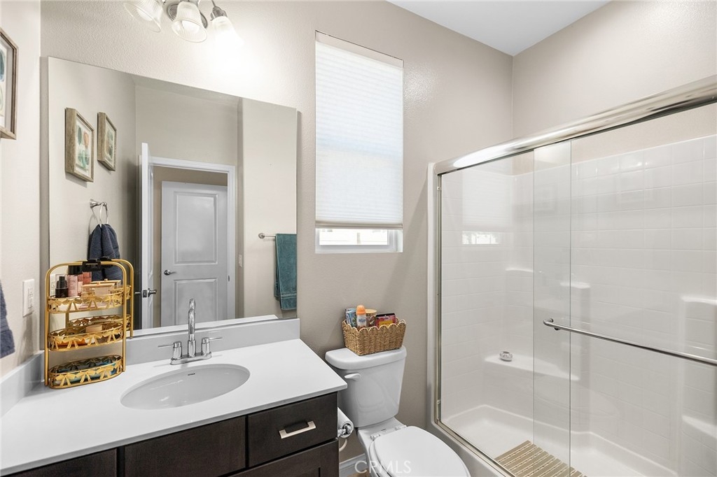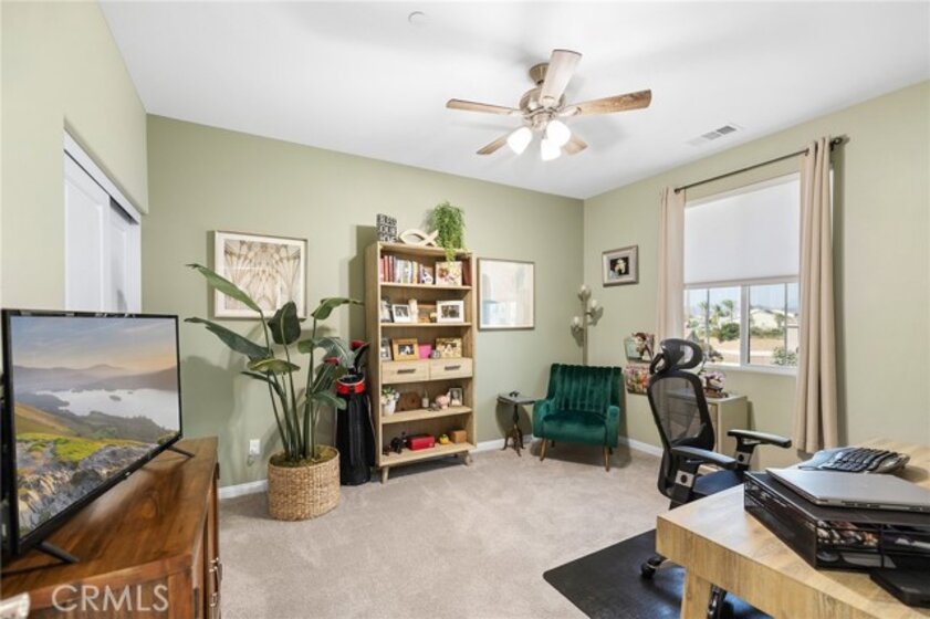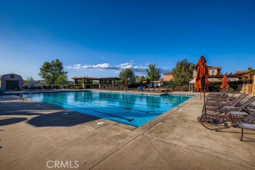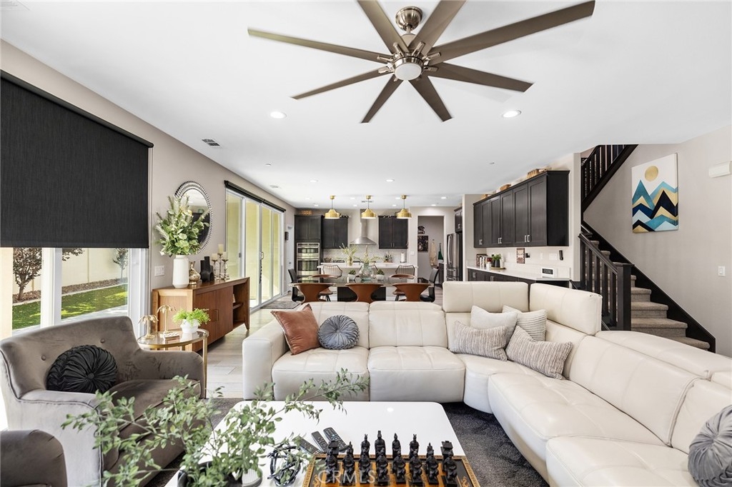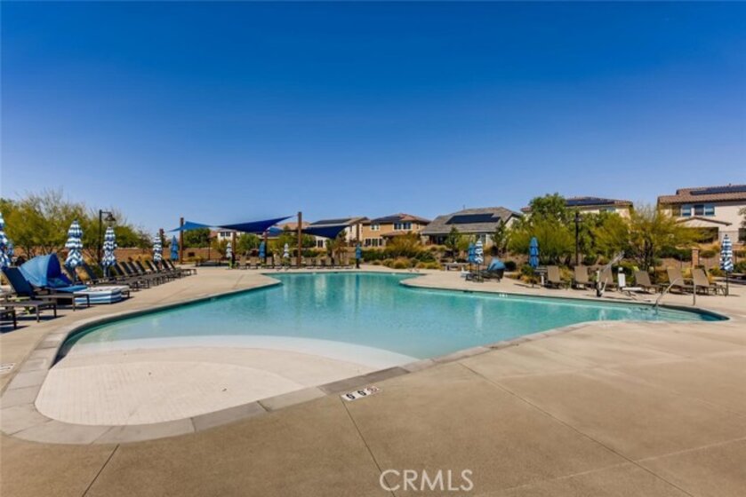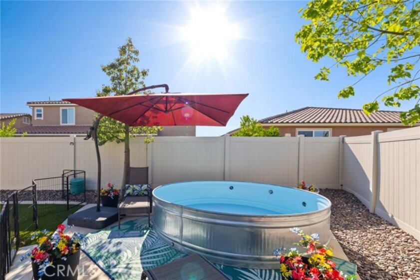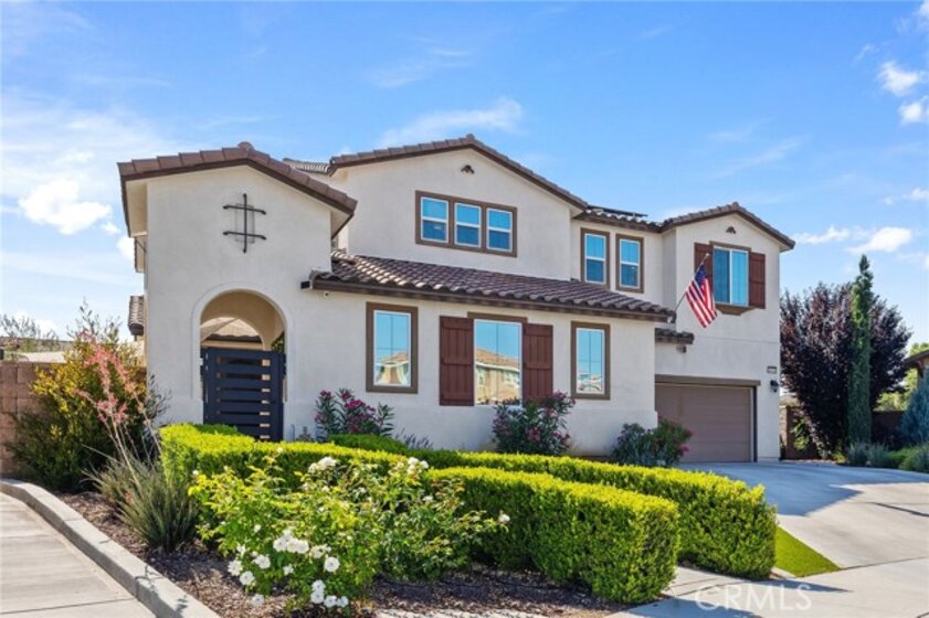 Beautifully upgraded 5-bedroom, 3.5-bath executive home located on a quiet cul-de-sac in highly sought-after Spencer’s Crossing, just minutes from the Oasis Pool. This spacious 3,411 sq ft home features an open-concept kitchen with quartz counters, ceramic stone backsplash, pendant lighting, soft-close drawers, stainless steel appliances, and a vented pyramid cooktop. The great room offers dual 12-foot sliding glass doors and upgraded finishes throughout. Downstairs includes a private bedroom, with glass French doors. Additional upgrades: luxury vinyl plank flooring on the first floor, plantation shutters throughout, upgraded stair railing, and paneled interior doors. The oversized primary suite boasts a walk-in closet, en-suite bath with walk-in tiled shower, dual vanities, and added privacy door. Upstairs includes a spacious loft, 3 secondary bedrooms, and a laundry room with sink and added shelving. Low-maintenance backyard with extended patio cover and a stock tank pool—perfect for summer. Home includes PAID solar, whole-home water softener, and a 3-car garage. Spencer’s Crossing offers pools, parks, walking trails, and top-rated schools. Move-in ready!