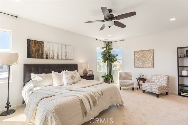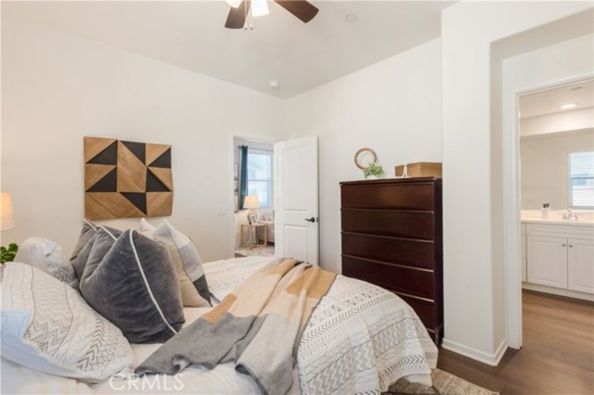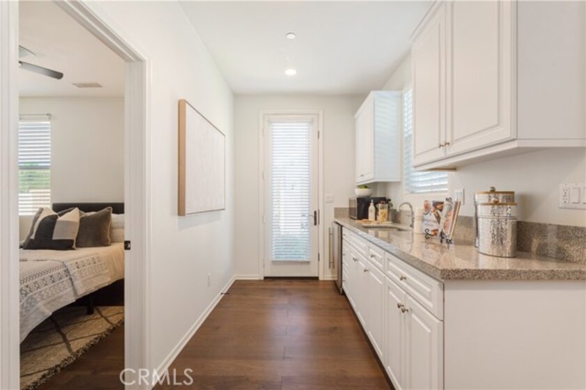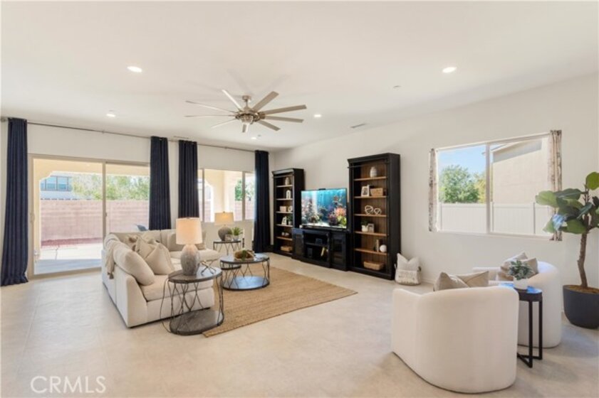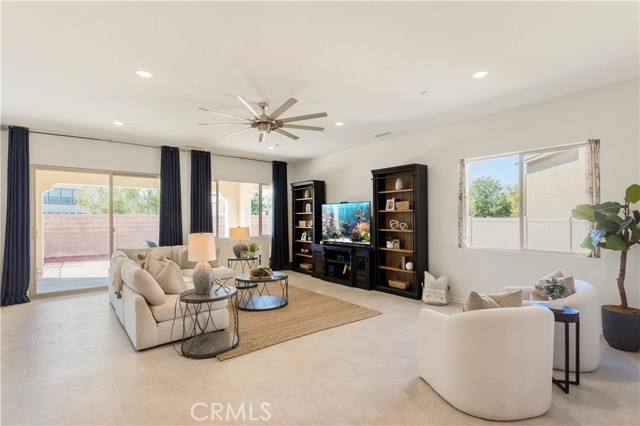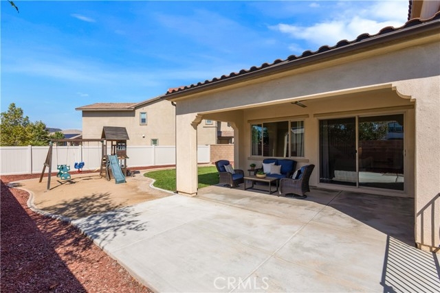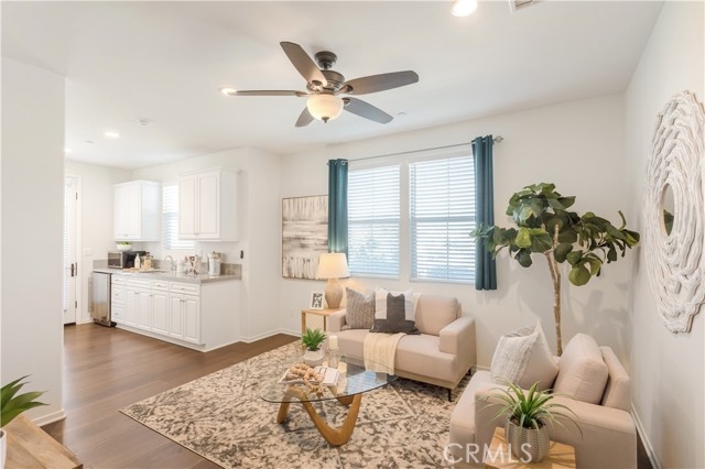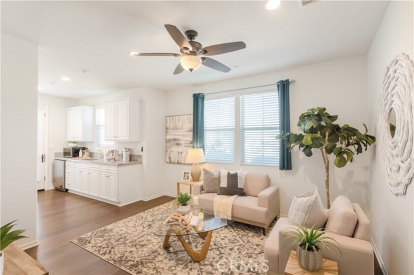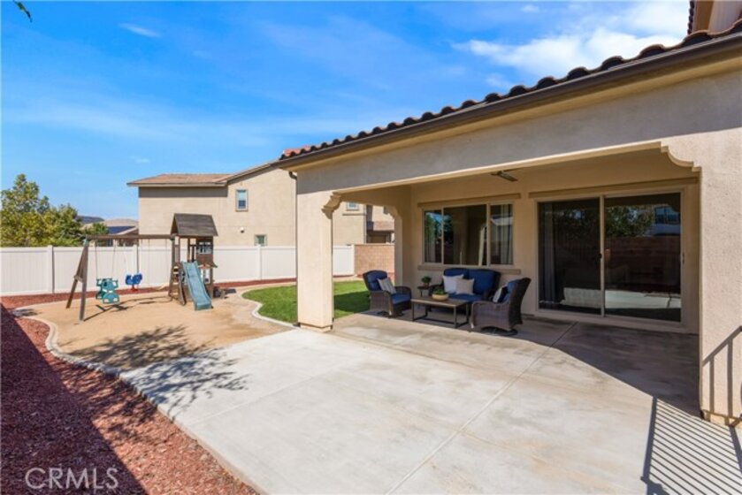 This stunning multigenerational home offers 5 bedrooms, 3.5 bathrooms, and a spacious bonus room, including an attached Multi-Gen suite with its own private entrance. The Multi-Gen suite is thoughtfully designed with a living room, spacious bedroom, kitchenette, large walk-in closet, and stackable washer and dryer—ideal for extended family, guests, or rental potential. The heart of the main home is an upgraded kitchen featuring stainless steel appliances, double ovens, a large granite island, walk-in pantry, and multiple built-ins, all seamlessly connected to the open floorplan and spacious family room. Expansive patio doors lead to a California room overlooking the large backyard, complete with a kids’ play structure and plenty of room to entertain. Energy efficiency is built in with paid solar, while a tandem 3-car garage provides ample parking and storage. Residents also enjoy access to outstanding community amenities including multiple pools, spas, picnic areas, and sports parks. Conveniently located near shopping, freeways, and top-rated schools, this home blends comfort, functionality, and resort-style living.