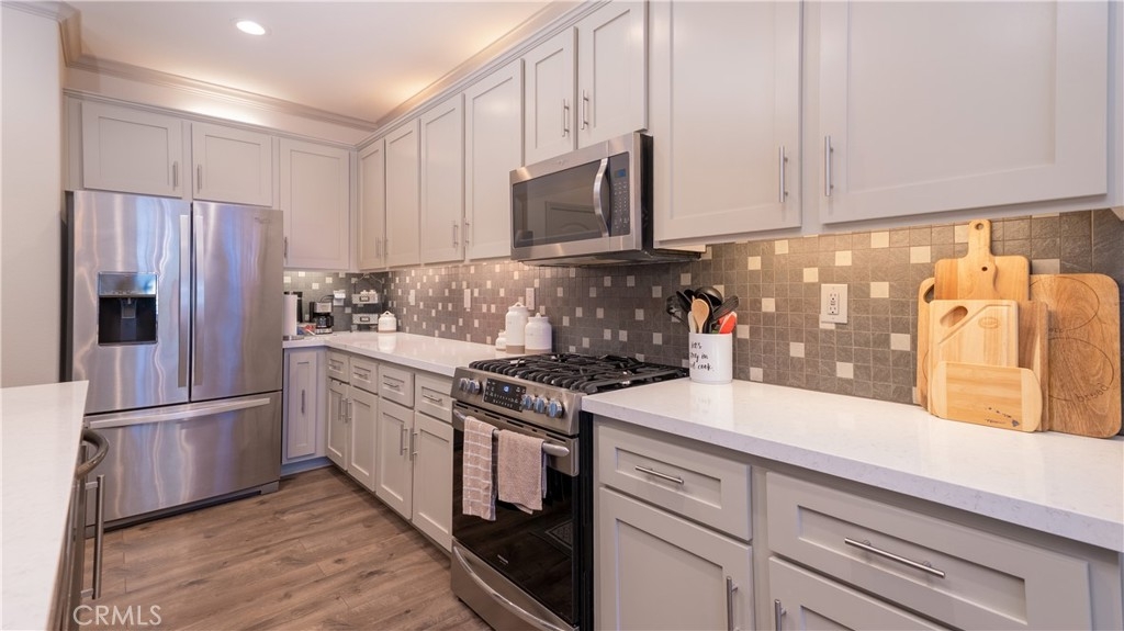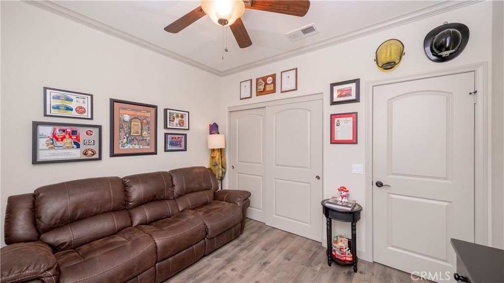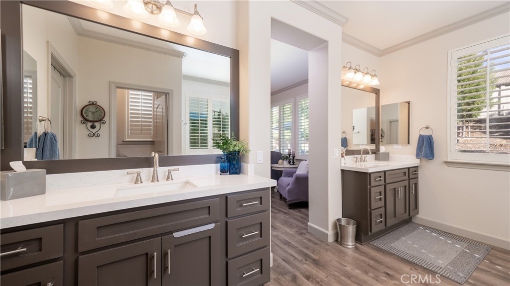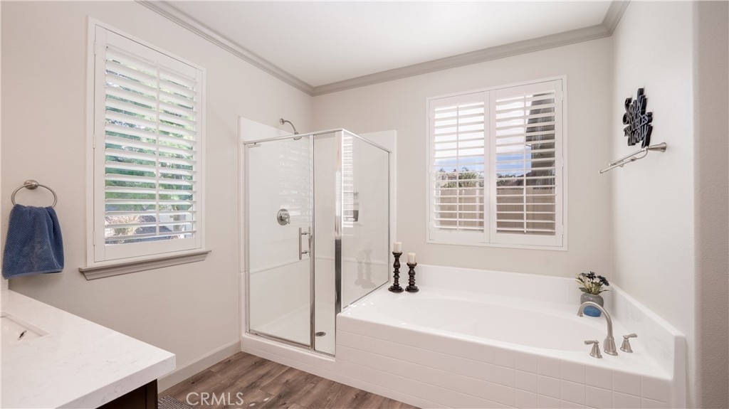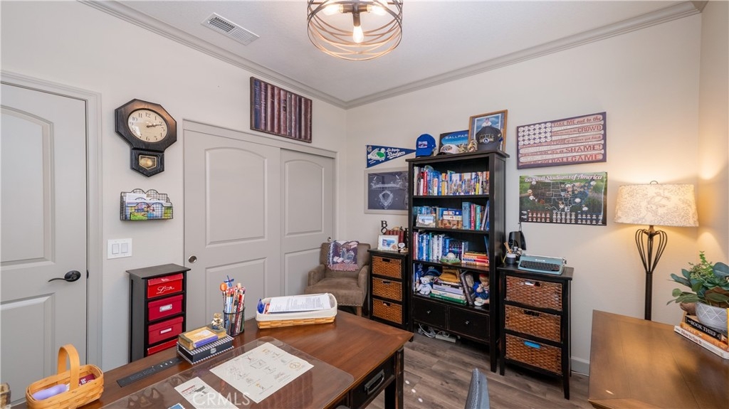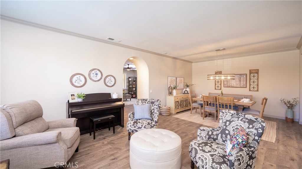 Welcome to this beautifully upgraded single-story home in the highly sought-after Spencer’s Crossing community, offering 4 bedrooms, 3 bathrooms, and a spacious 3-car garage on a premium corner lot in a peaceful neighborhood. Single-story homes of this size, condition, and layout are rare — and this one truly delivers. Lush, manicured landscaping with front and back drip systems immediately showcases pride of ownership, while the freshly painted front door and Ring doorbell create warm, welcoming curb appeal. Inside, Luxury Vinyl Plank flooring extends seamlessly throughout, complemented by crown molding, custom paint, recessed lighting, ceiling fans in every room, plantation shutters, and custom paneled interior doors — a true model-home feel from the moment you step in. The formal living and dining areas are bright and refined, enhanced by modern lighting and a built-in bar that’s ready for entertaining. At the center of the home, the remodeled kitchen shines with quartz countertops, a full custom backsplash, shaker-style cabinetry, stainless steel appliances, a large center island with pendant lighting, walk-in pantry, and built-in wine chiller. It opens effortlessly to the inviting family room featuring a ceiling fan, custom-tiled fireplace with mantle, and built-ins that create warmth and functionality. The private primary suite offers a luxurious retreat with custom wood wall detailing and a spa-inspired bath complete with dual vanities, soaking tub, walk-in shower, and generous walk-in closet. The insulated 3-car garage includes built-in cabinetry and shelving for organized storage. Outdoors, enjoy wide side yards, vinyl fencing, rain gutters, exterior security cameras, solar lighting, mature trees, custom retaining walls, planter beds with drip system, and a charming potting table. Residents of Spencer’s Crossing enjoy resort-style amenities including multiple pools (the Oasis pool and kiddie pool), a 3,500 sq. ft. clubhouse, lighted sports park with baseball and soccer fields, basketball courts, scenic walking trails, BBQ areas, and playgrounds. Single-story homes here with this level of upgrades and care rarely come available. This isn’t just move-in ready — it’s lifestyle ready. If you’ve been waiting for the one that truly checks every box, this is it.